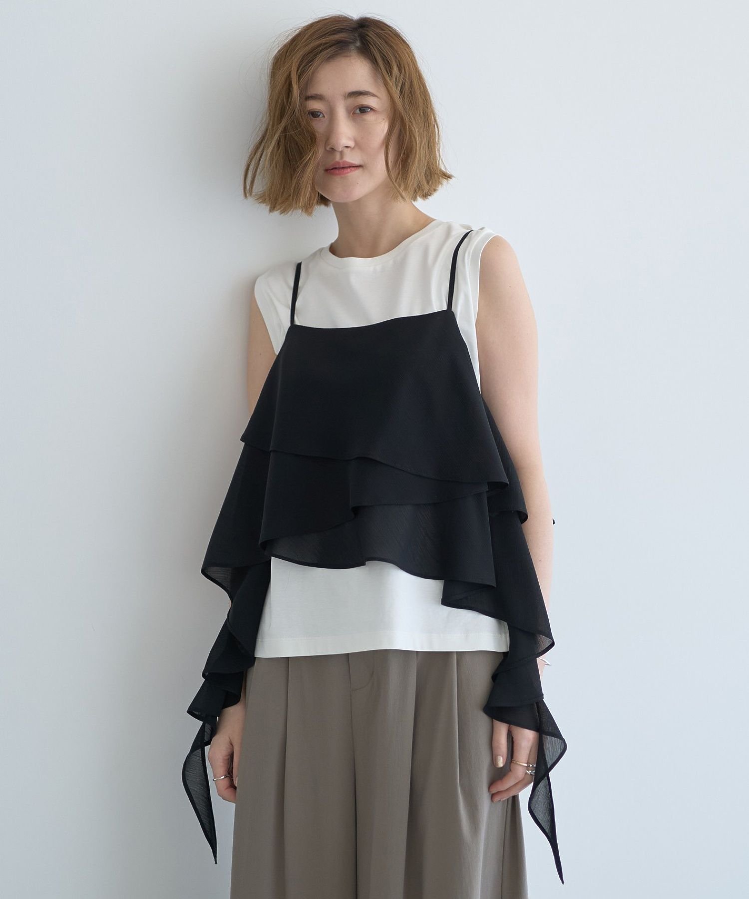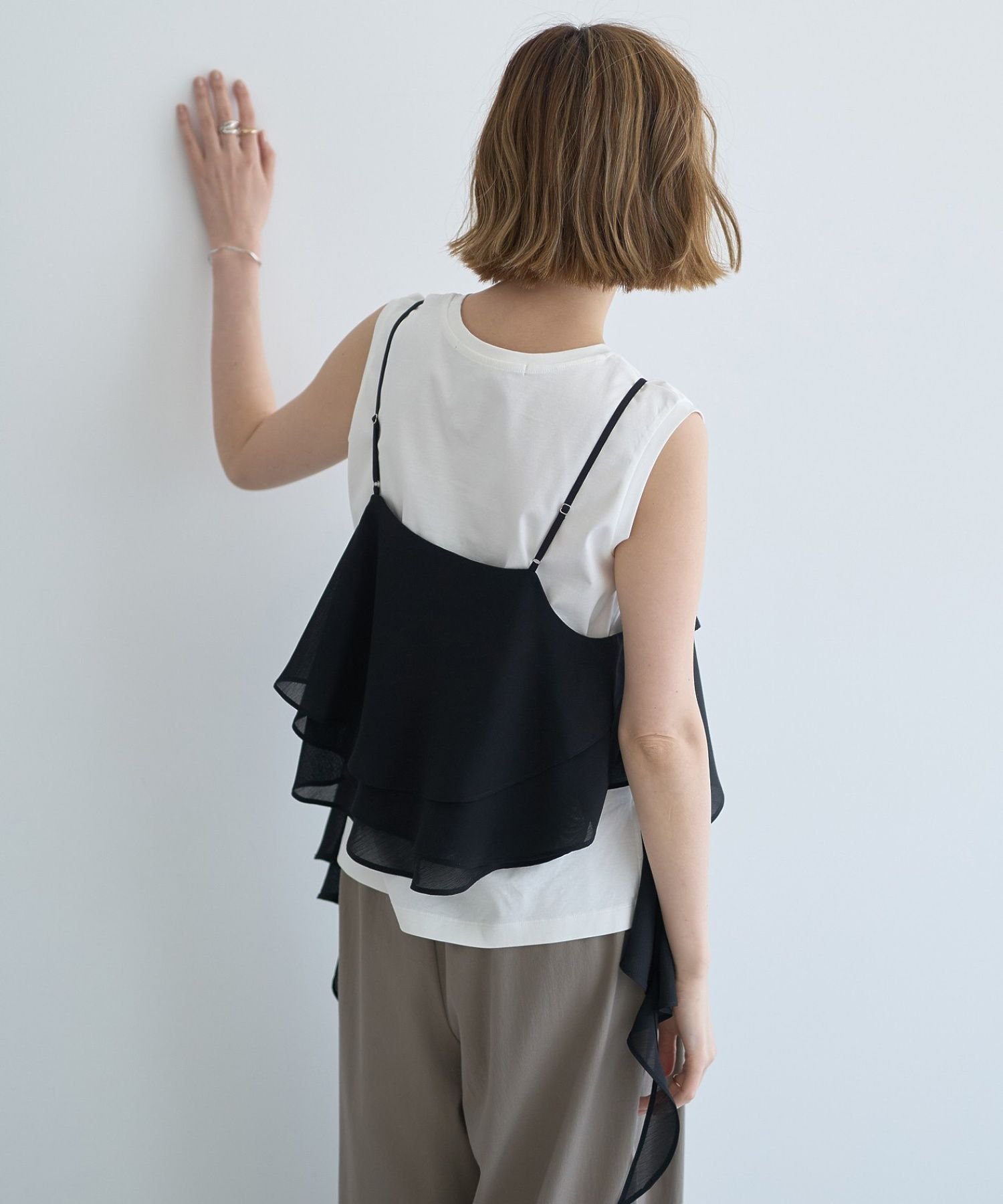 YECCA VECCA アシメラッフルオーバーキャミ イェッカヴェッカ トップス キャミソール ブラック ホワイト【送料無料】