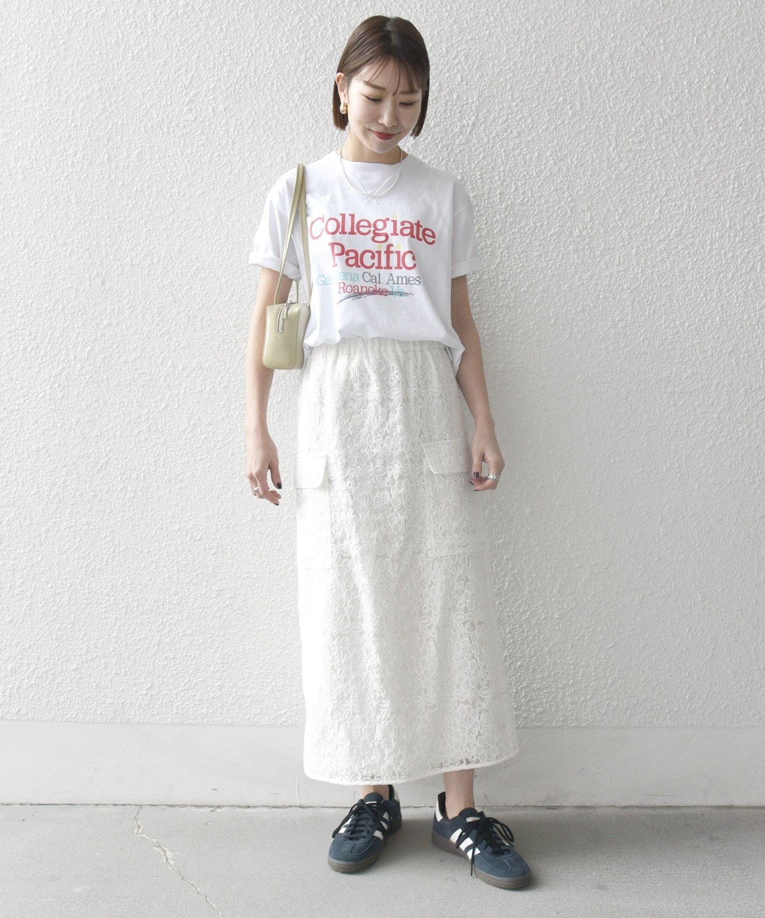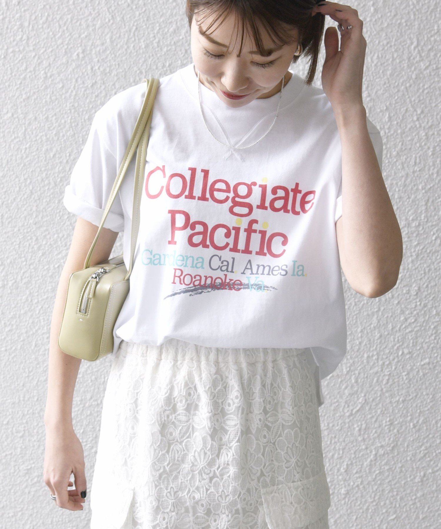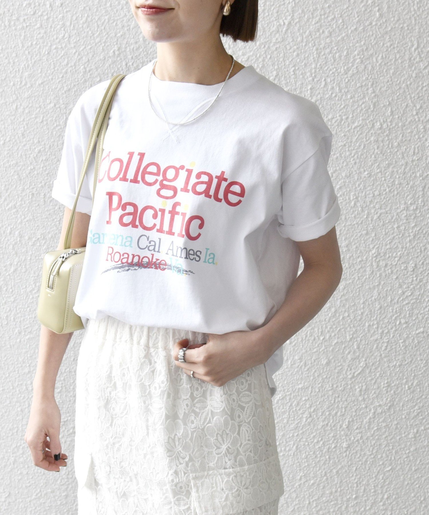 SHIPS any 《予約》【SHIPS any別注】Collegiate Pacific:<洗濯機可能>V ガゼット プリント & 刺繍 Tシャツ 25SS シップス トップス カットソー・Tシャツ ホワイト【送料無料】