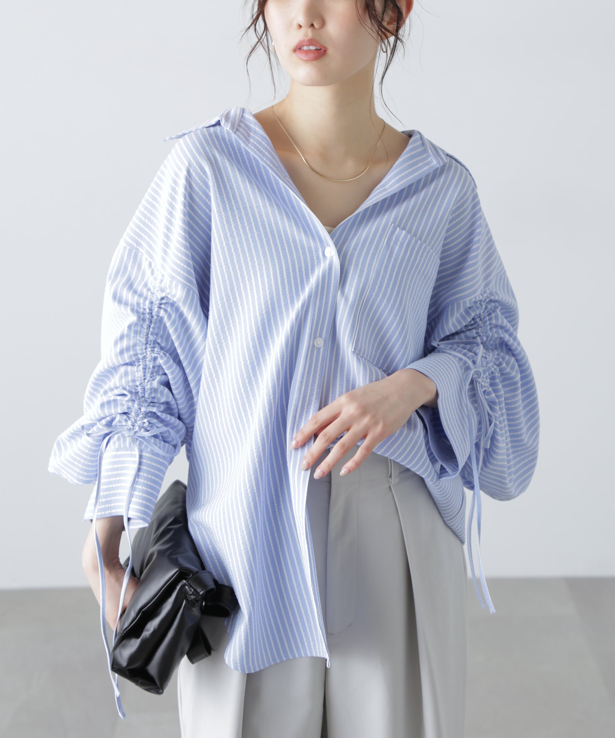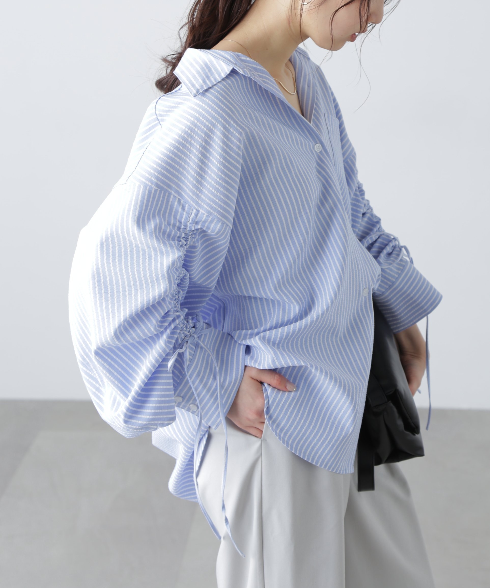 FREE'S MART 袖シャーリングオーバーシャツ フリーズ マート トップス シャツ・ブラウス ホワイト ピンク ブルー【送料無料】