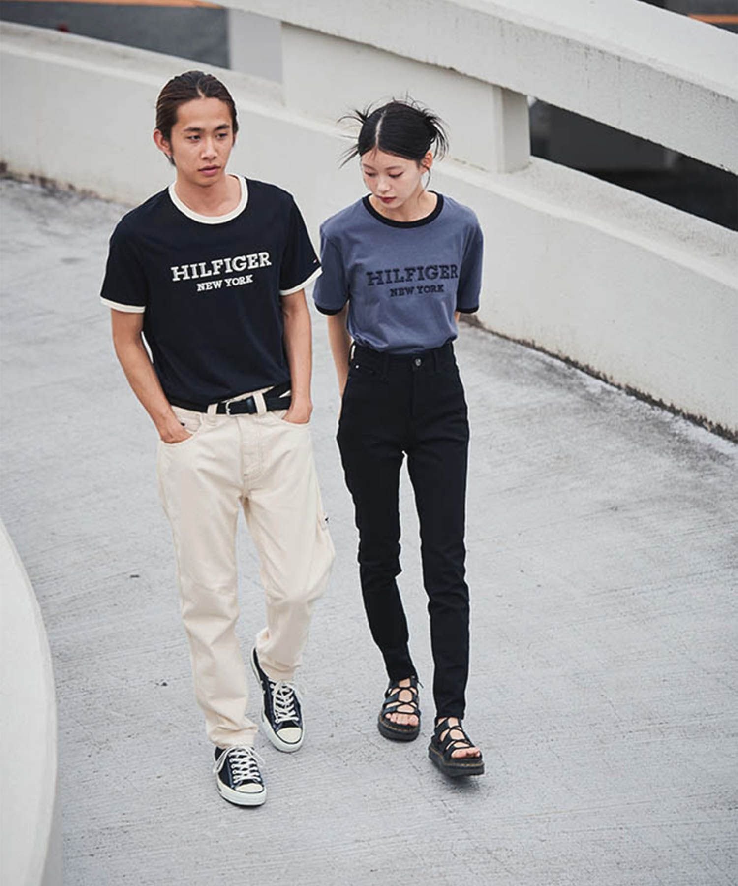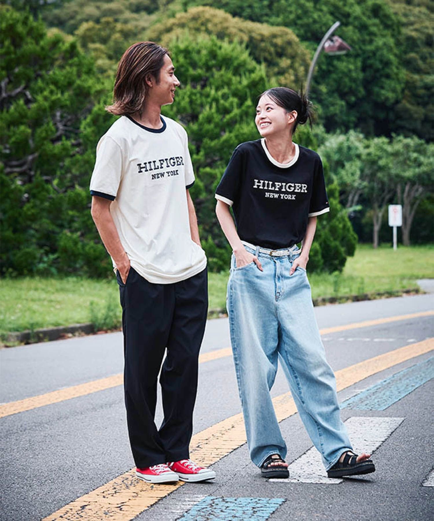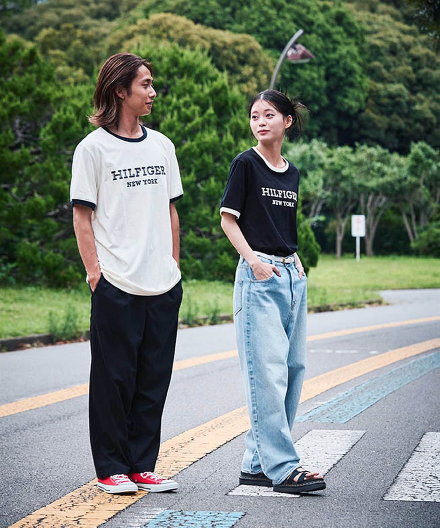 TOMMY HILFIGER 【オンライン限定】【ユニセックス】トミーヒルフィガー モノタイプリンガーTシャツ トミーヒルフィガー トップス カットソー・Tシャツ ブルー ベージュ ネイビー ホワイト【送料無料】