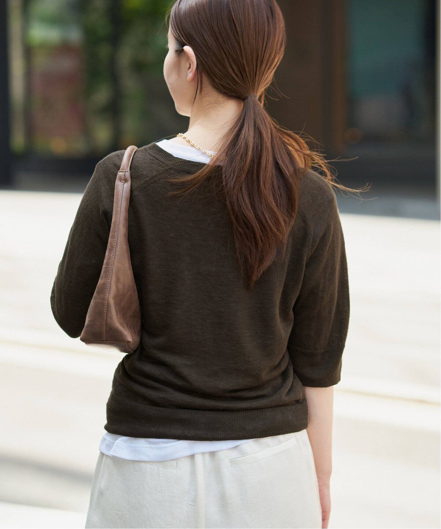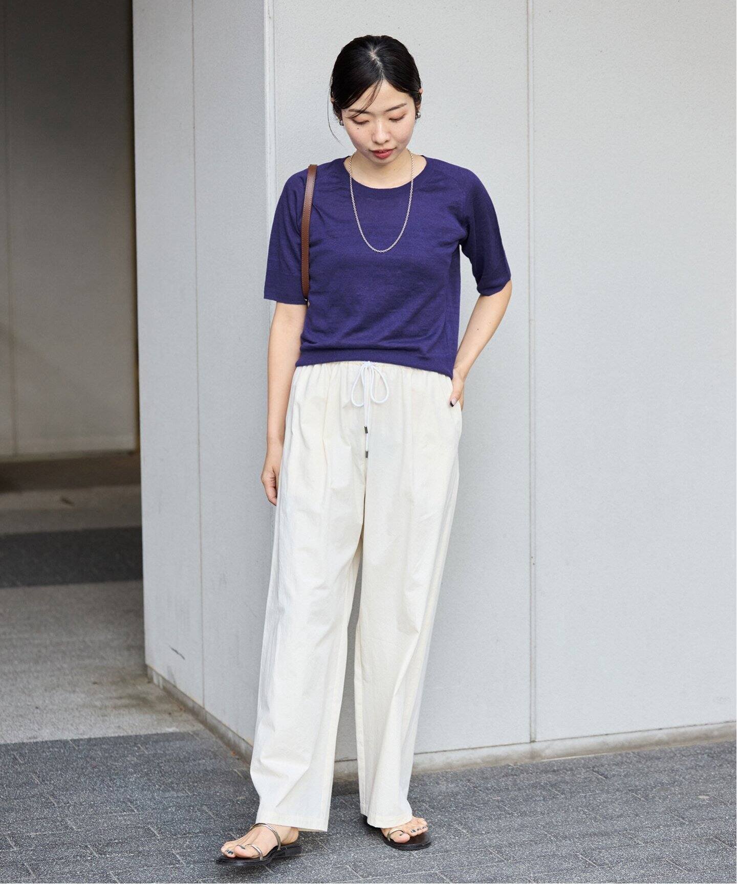 IENA フレンチリネンハーフスリーブプルオーバー イエナ トップス ニット パープル ベージュ ブラウン【送料無料】