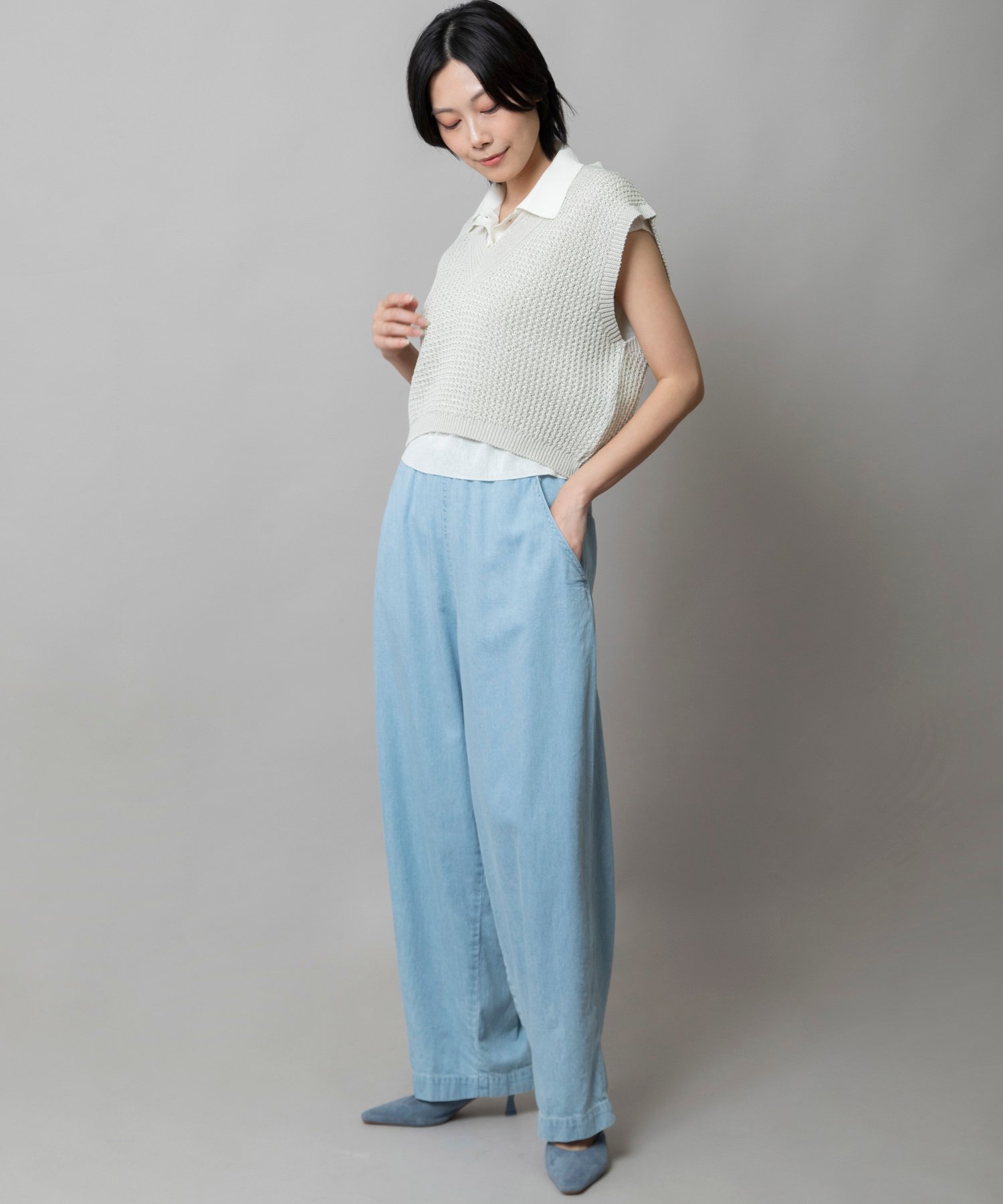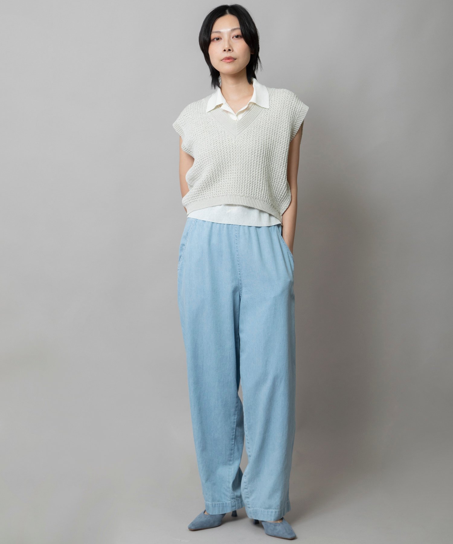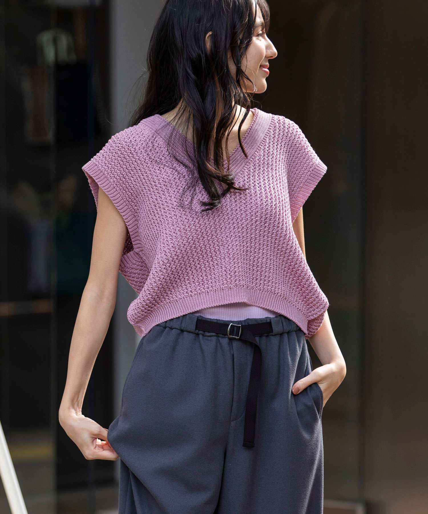 Munich コットンニットVネックジレ ミューニック トップス ベスト・ジレ ブラック ホワイト ピンク【送料無料】