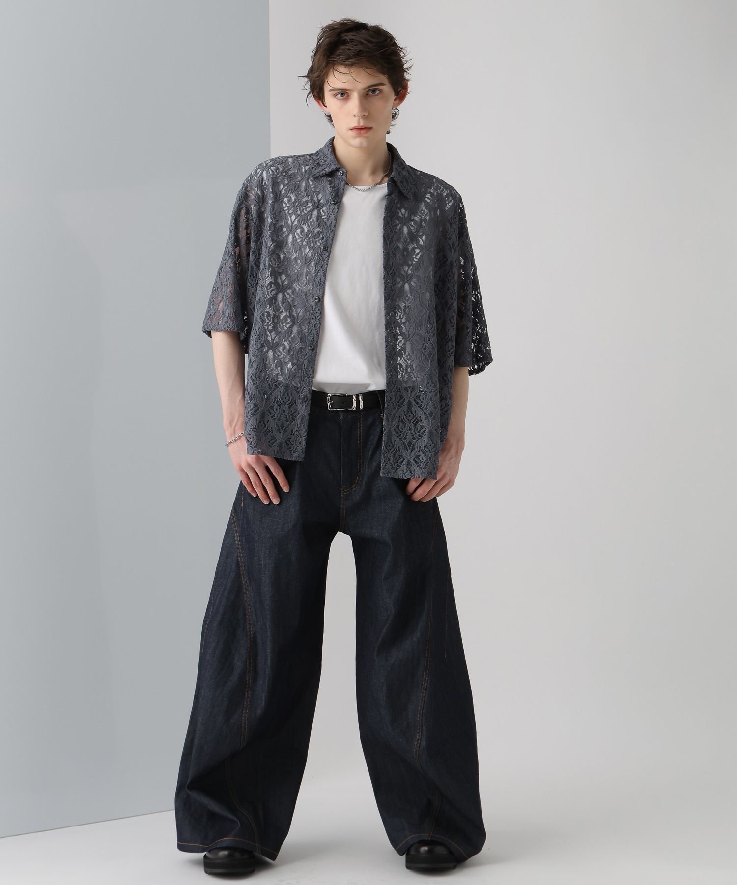 HARE ダマスクレースシャツSS ハレ トップス シャツ・ブラウス ブルー グレー ブラウン ブラック【送料無料】