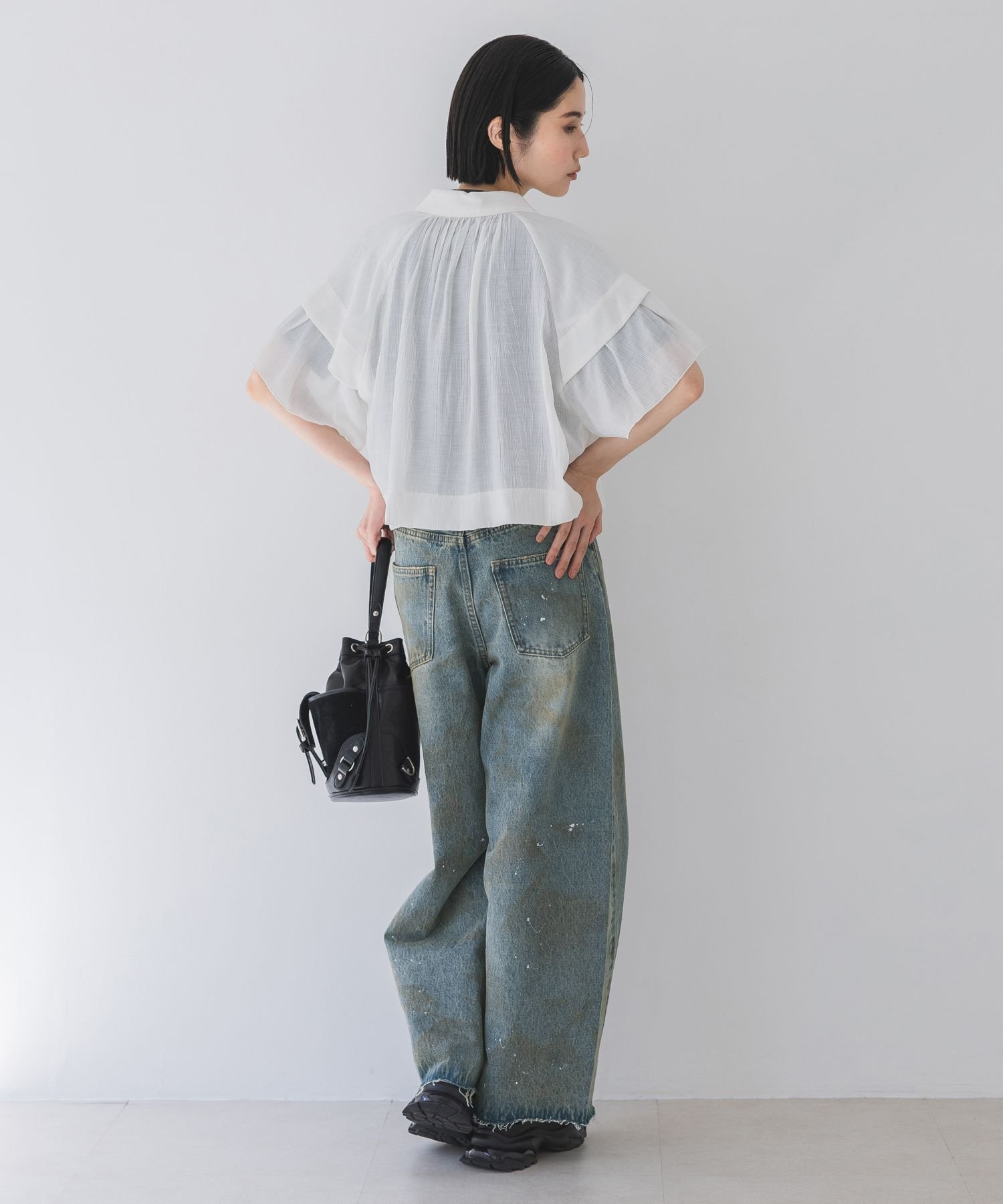 JEANASIS レイヤーフリルショートシャツ SS ジーナシス トップス シャツ・ブラウス ホワイト ブラック【送料無料】