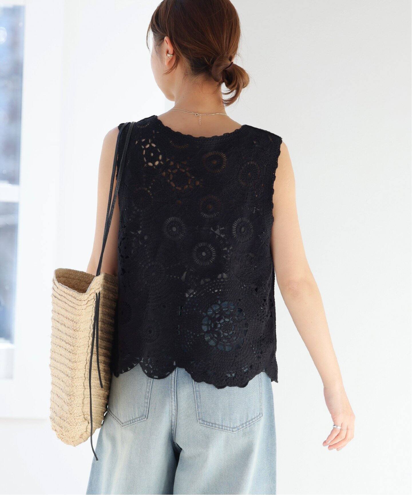 JOURNAL STANDARD relume 《追加》エンブロイダリークロシェノースリーブ ジャーナル スタンダード レリューム トップス ニット ホワイト ブラック【送料無料】