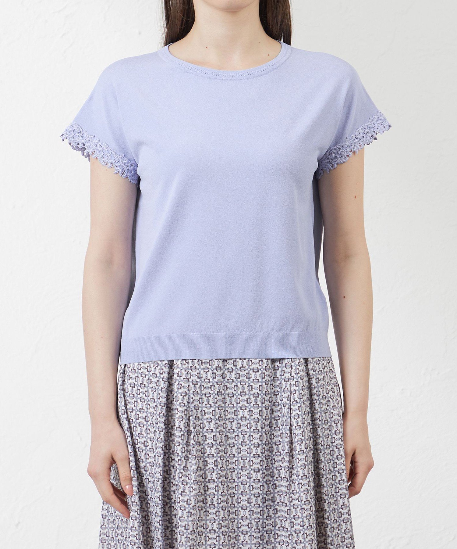 AMACA ライトレーヨンストレッチレース付プルオーバー アマカ トップス ニット ベージュ ブラック ブルー【送料無料】
