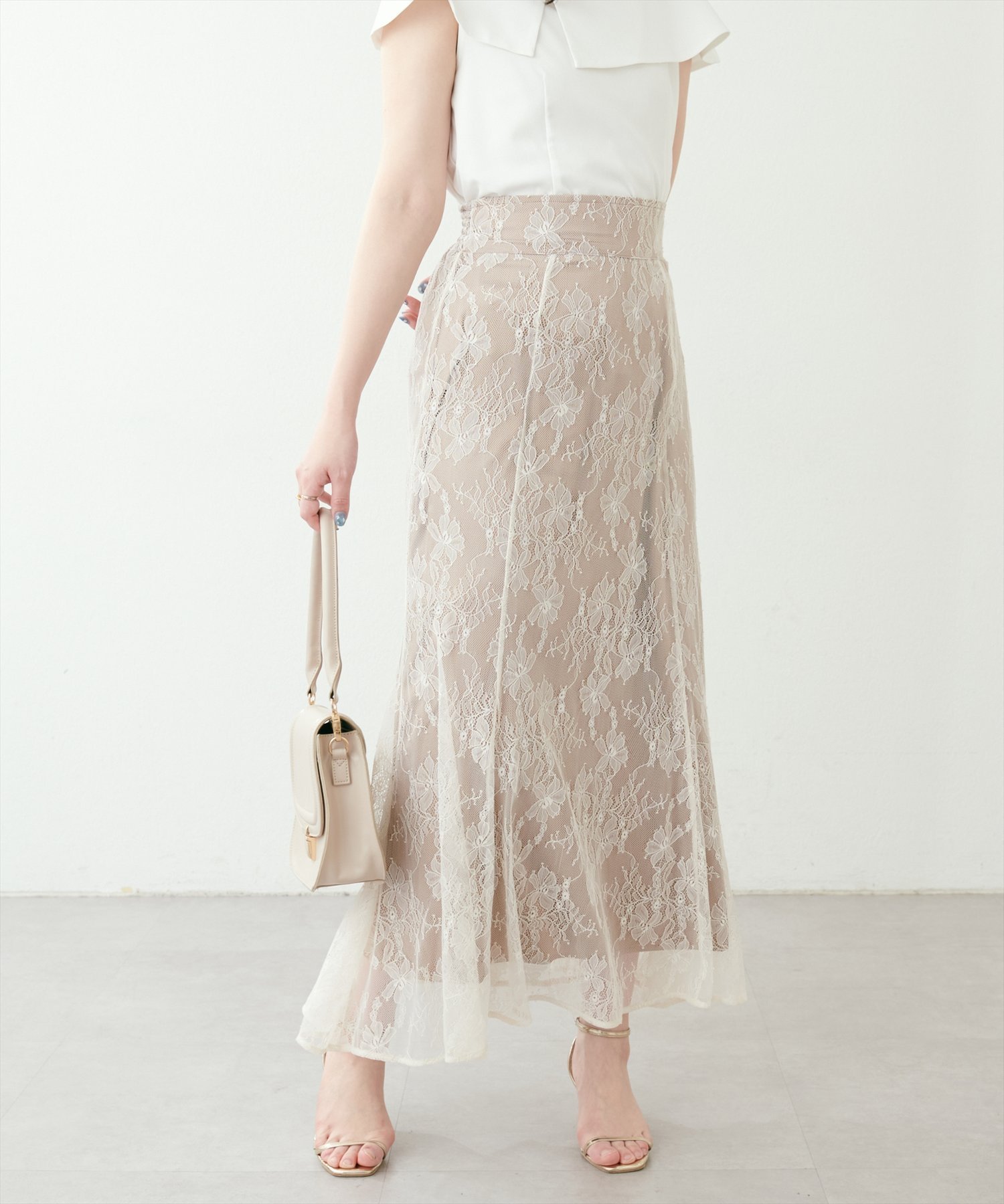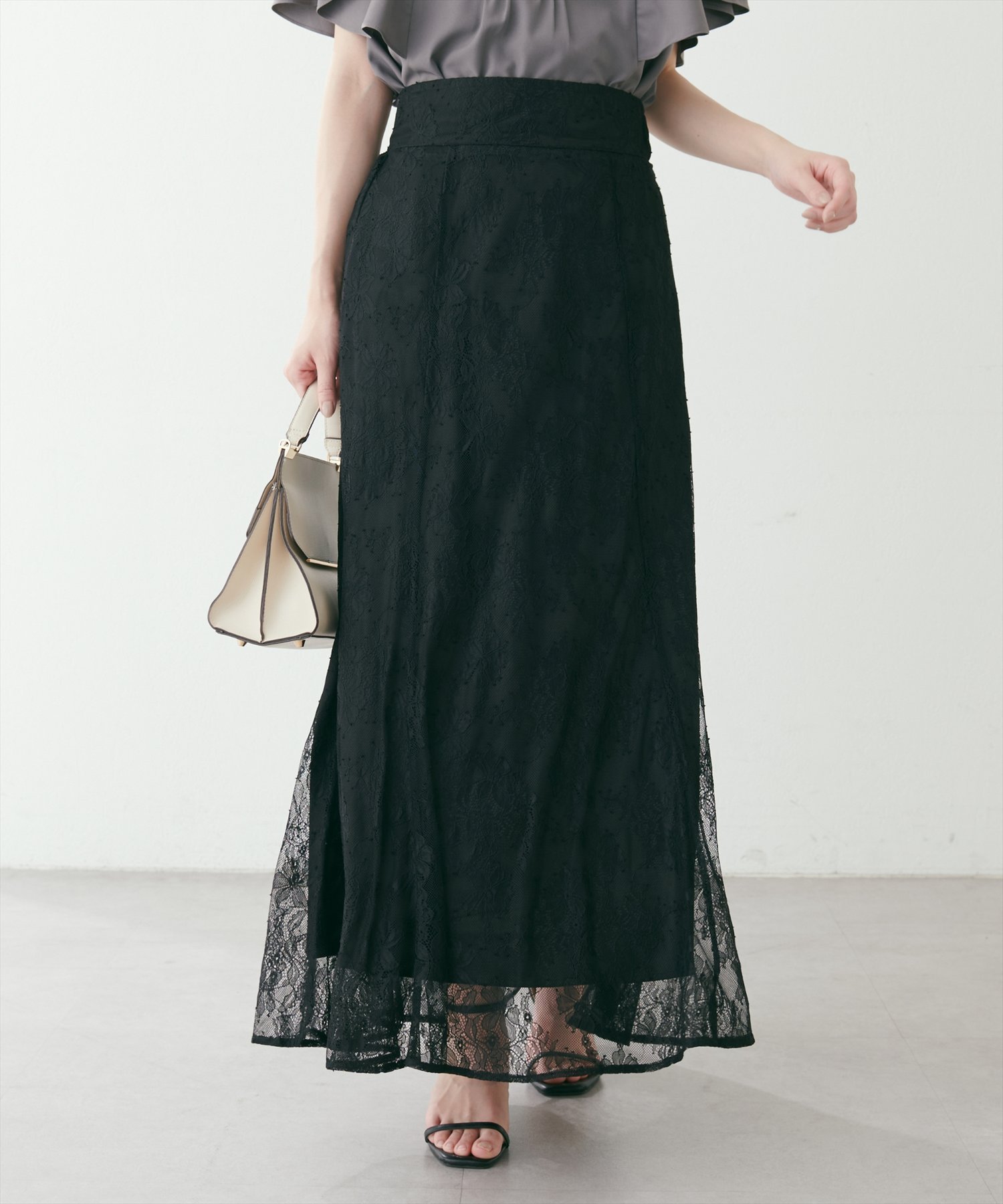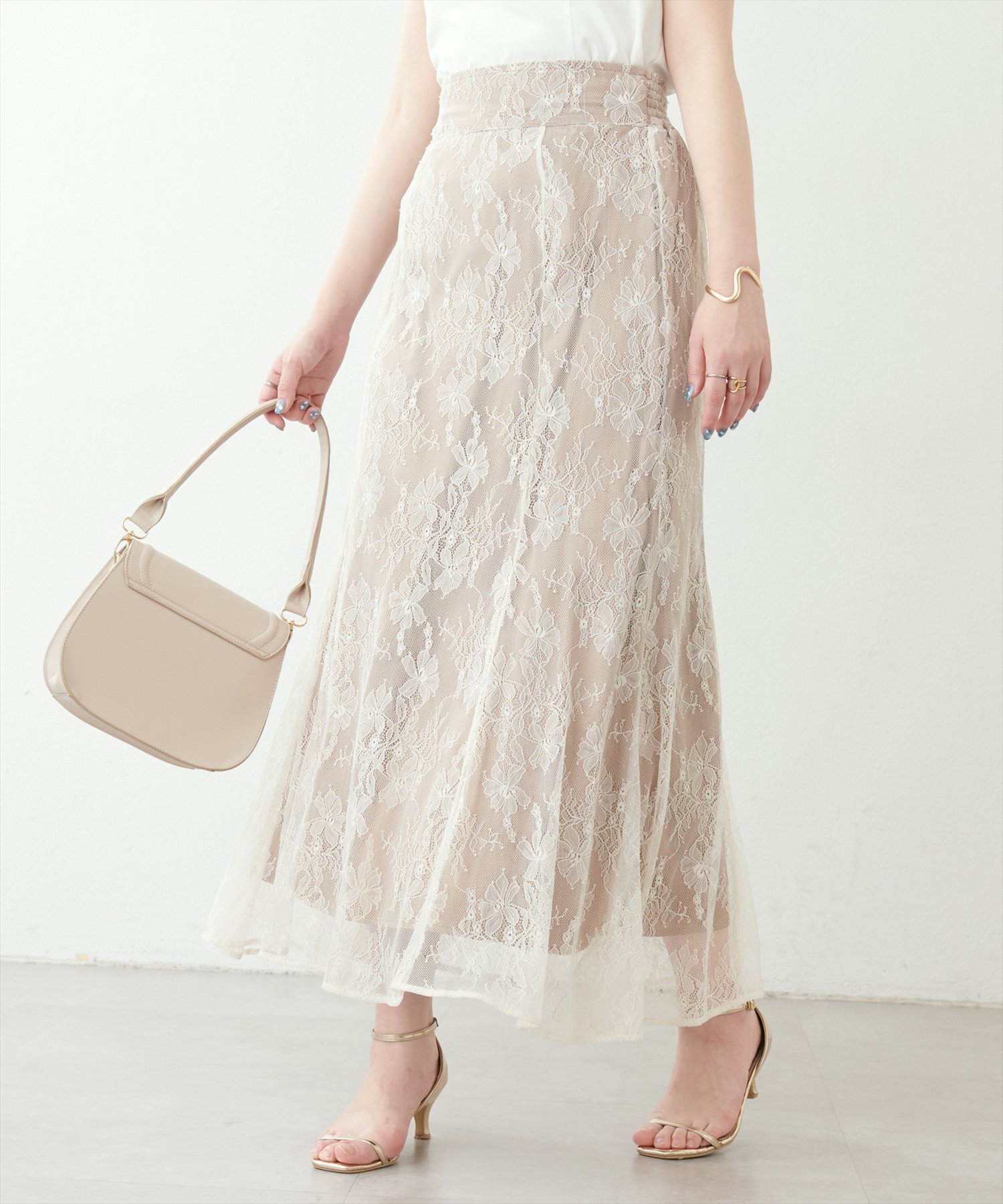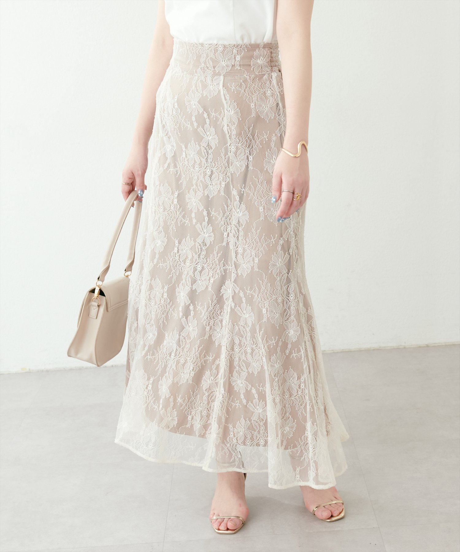 natural couture osono長さ変えれる配色レーススカート ナチュラルクチュール スカート その他のスカート パープル ブルー ホワイト ブラック ベージュ【送料無料】