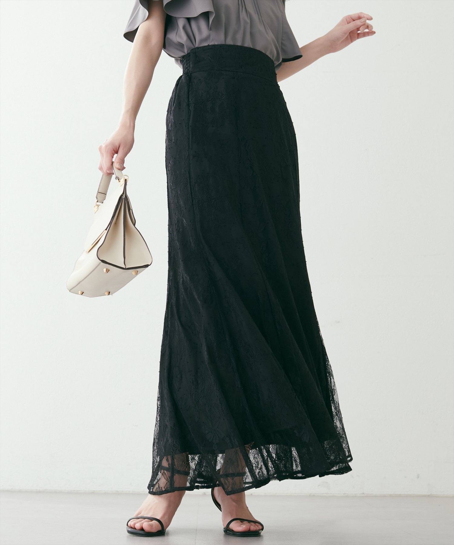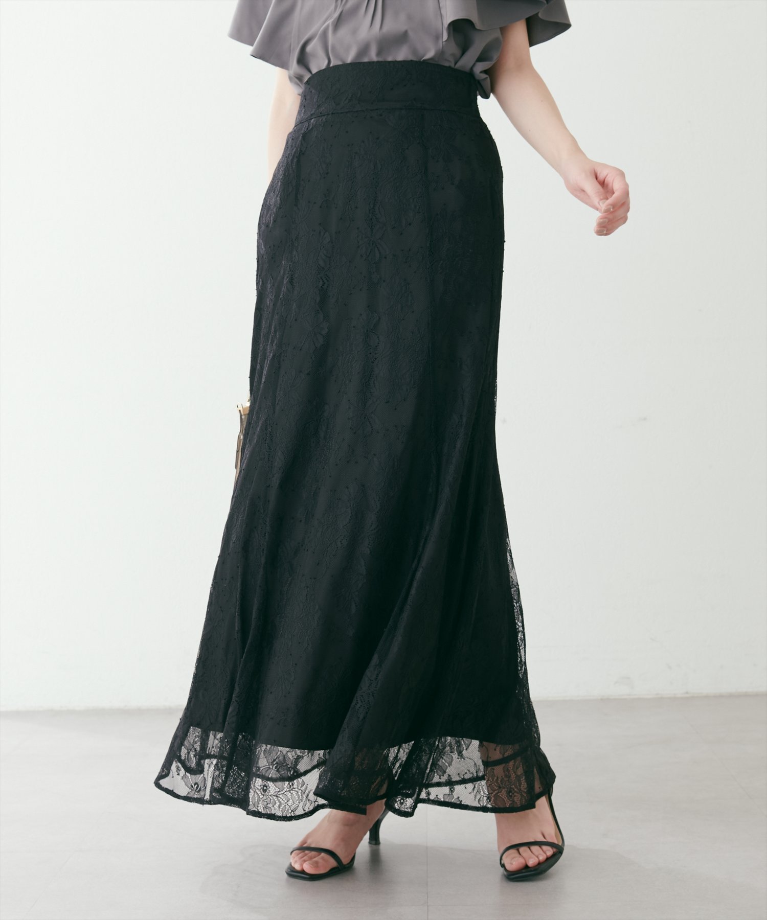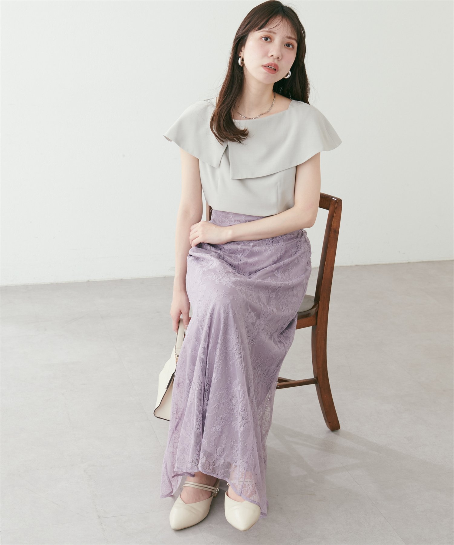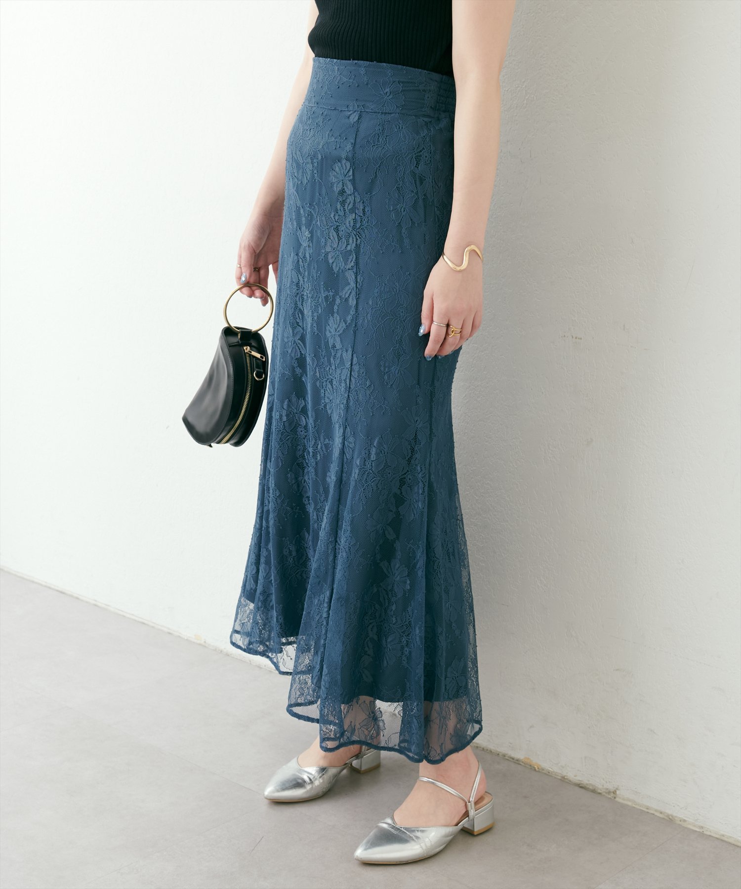 natural couture osono長さ変えれる配色レーススカート ナチュラルクチュール スカート その他のスカート パープル ブルー ホワイト ブラック ベージュ【送料無料】