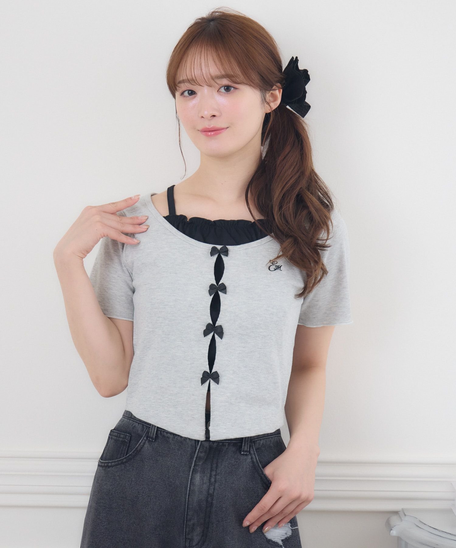 ems excite レイヤード風テレコCT レトロガール トップス その他のトップス ブラック ピンク