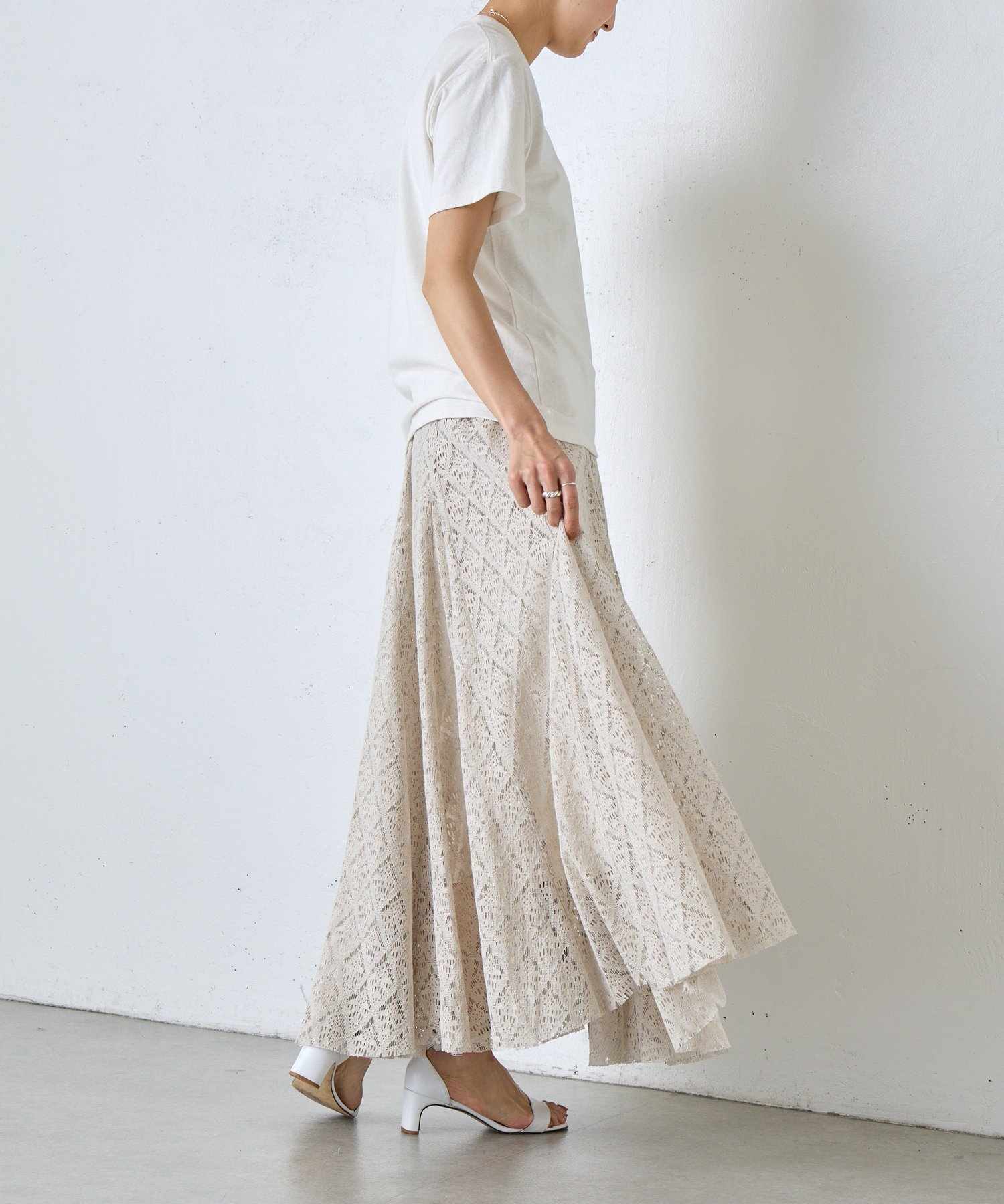 BEARDSLEY 《15 quinze》リネンレースボリュームスカート ビアズリー スカート ロング・マキシスカート ベージュ【送料無料】