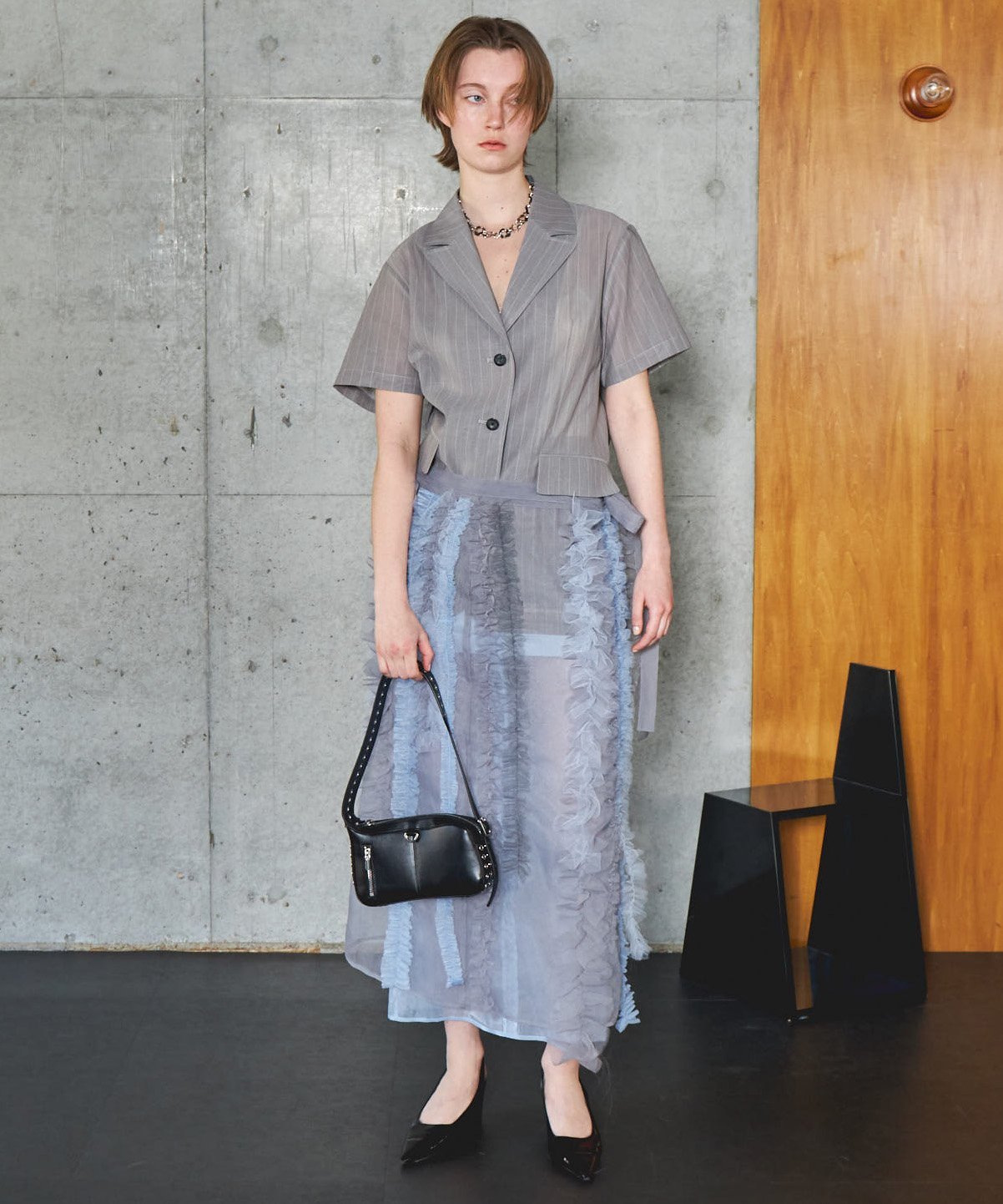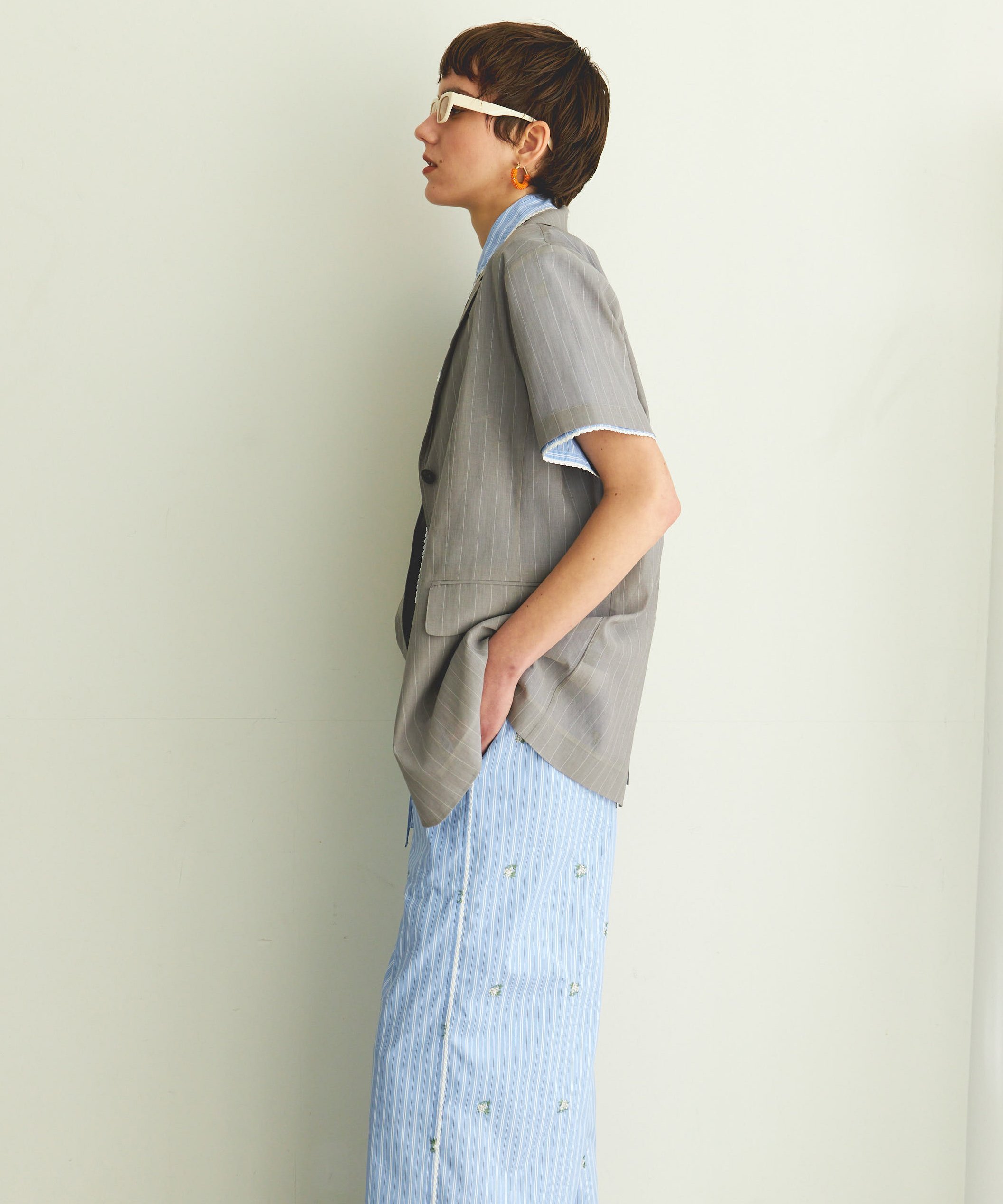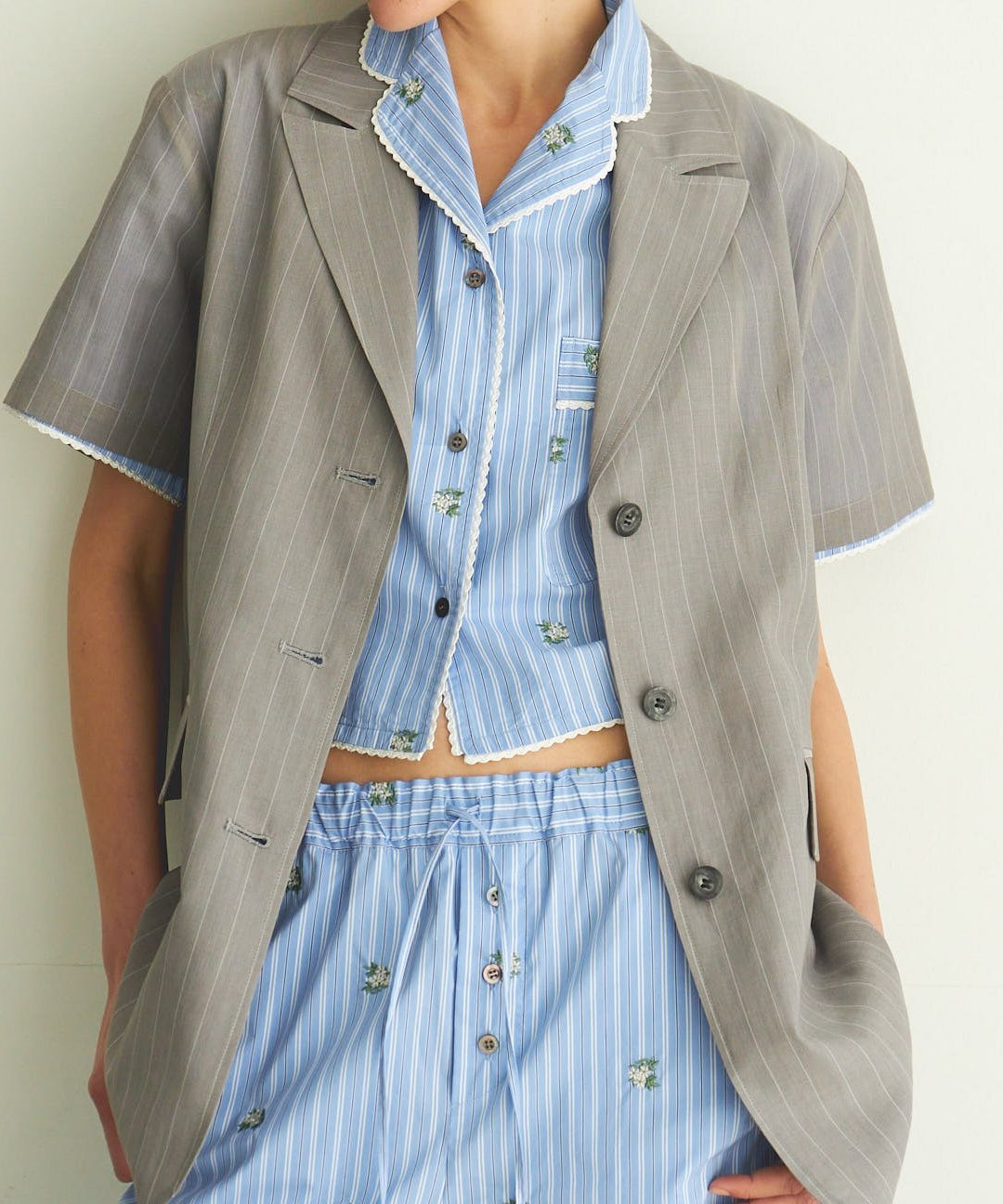 MAISON SPECIAL Sheer Half Sleeve Jacket メゾンスペシャル ジャケット・アウター テーラードジャケット・ブレザー ブラック グレー【送料無料】