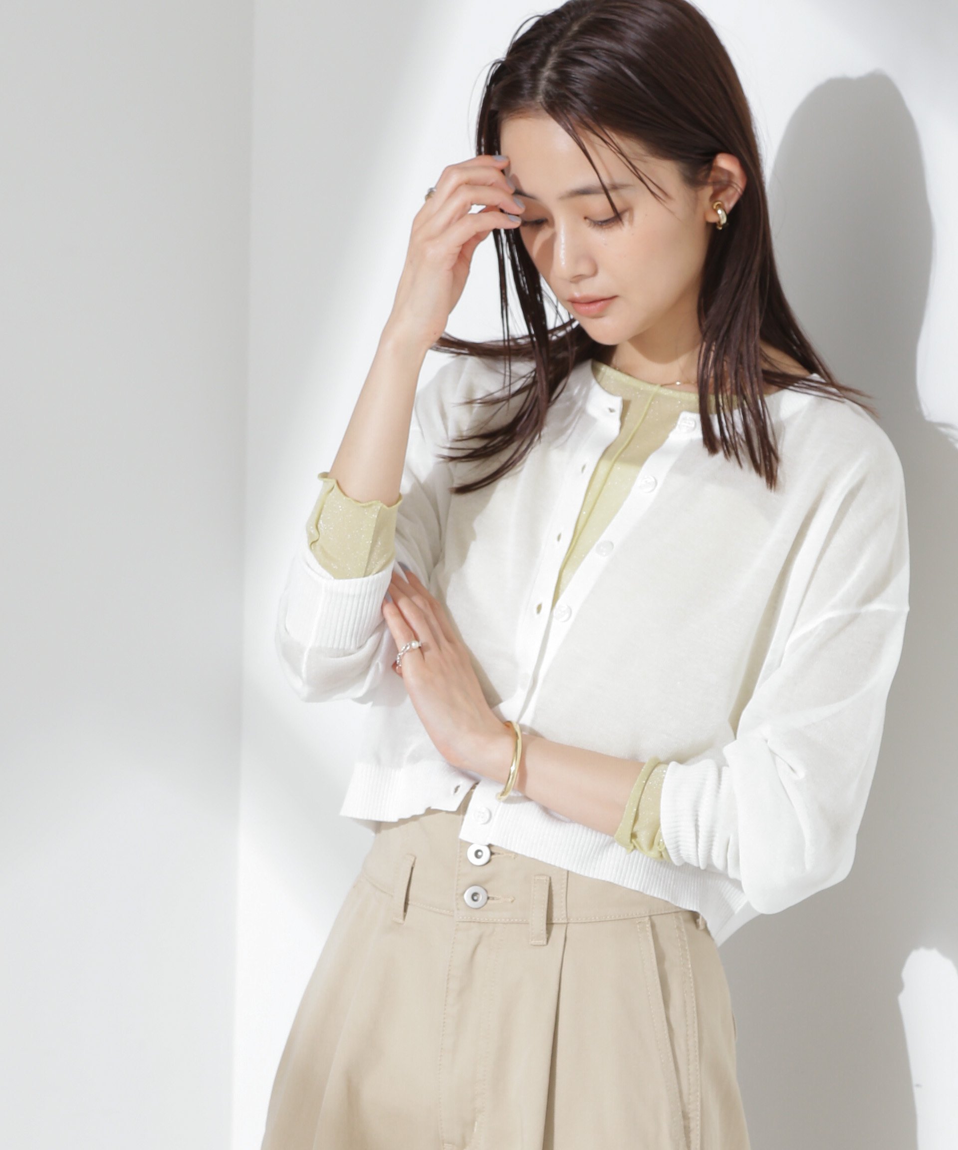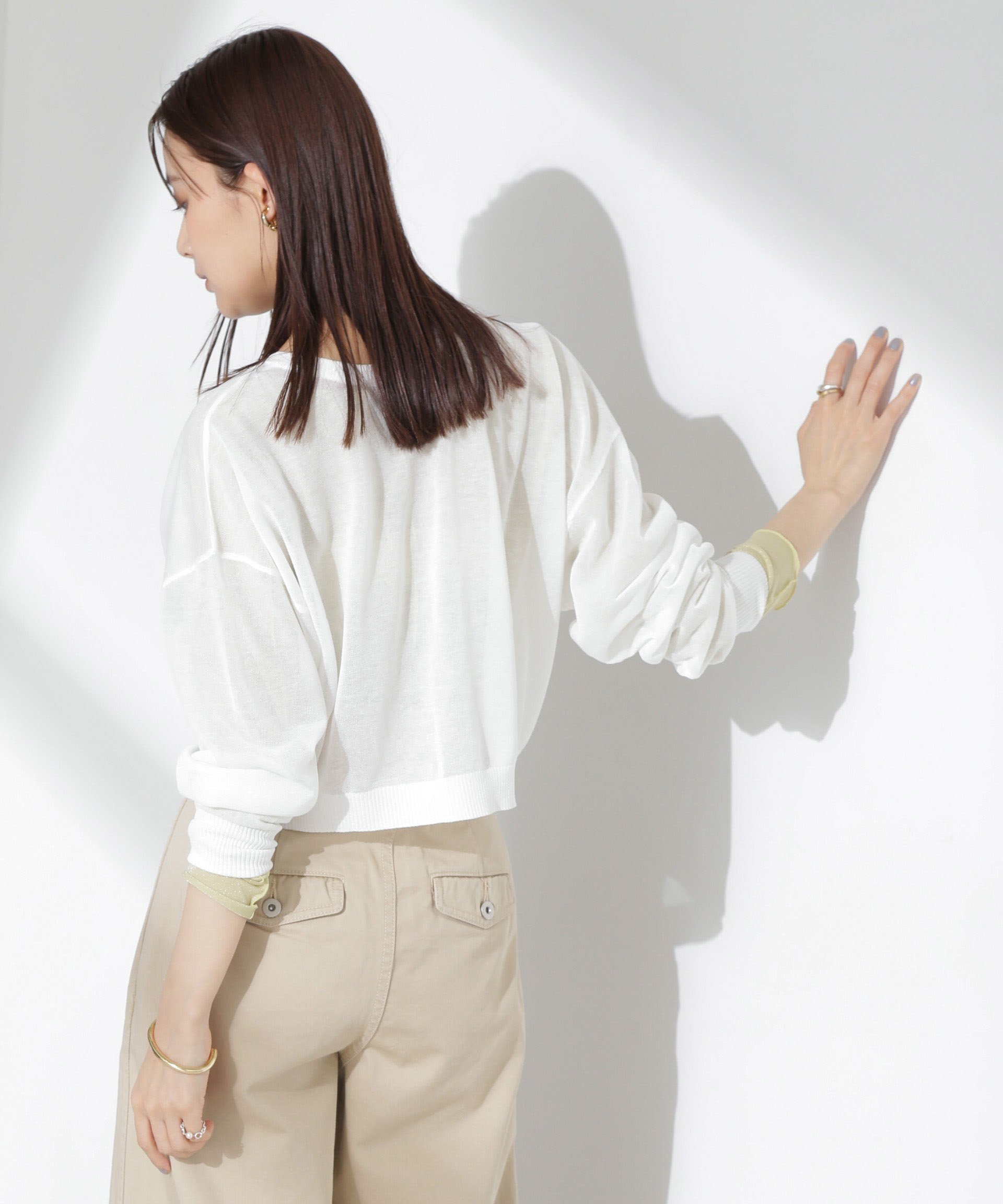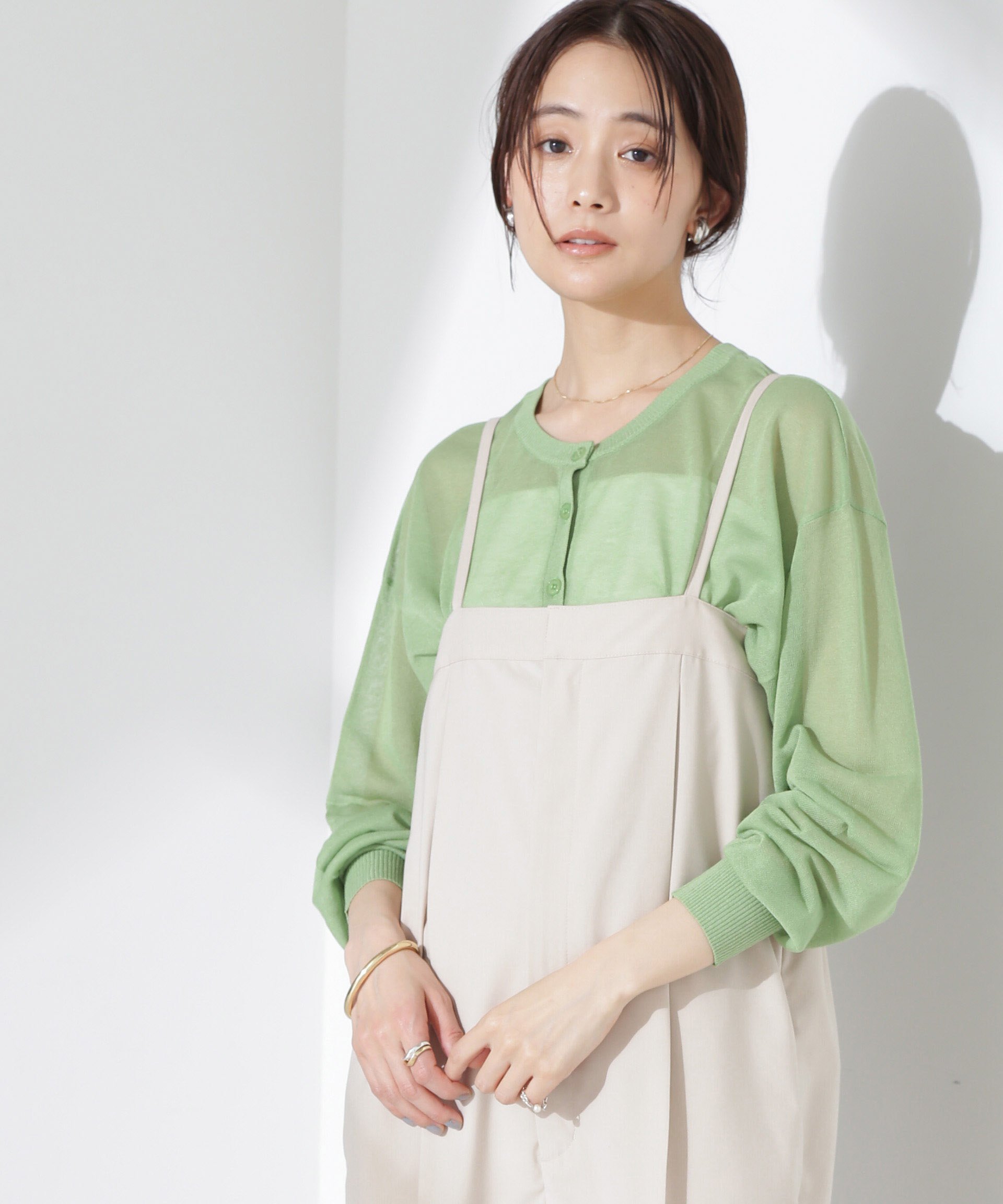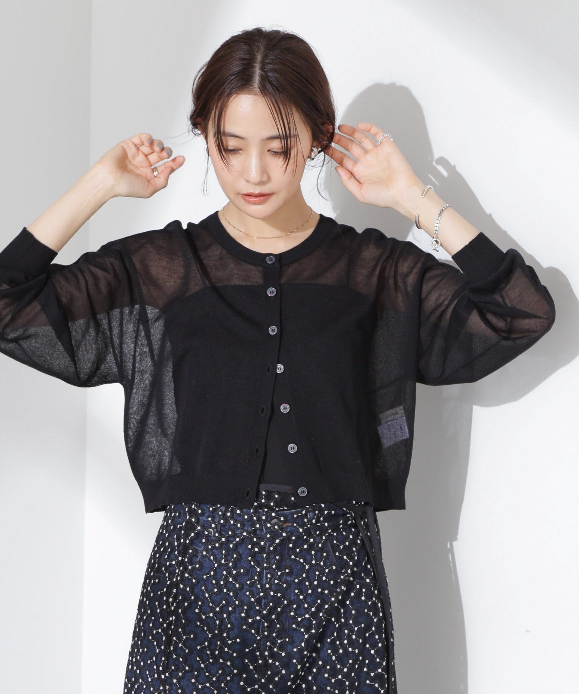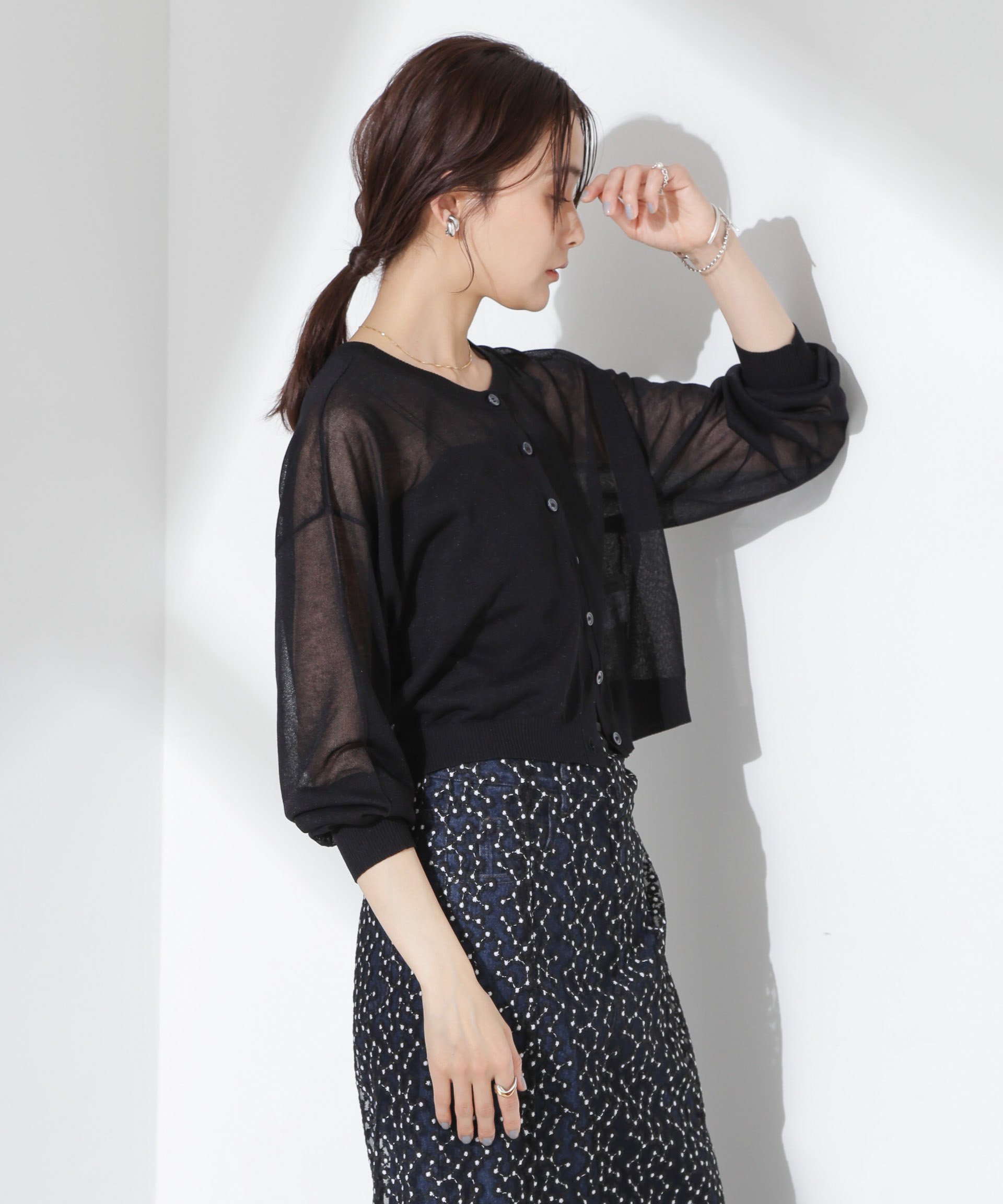 NANO universe クロップドシアーニットカーディガン ナノユニバース トップス ニット ブラック グリーン ホワイト【送料無料】