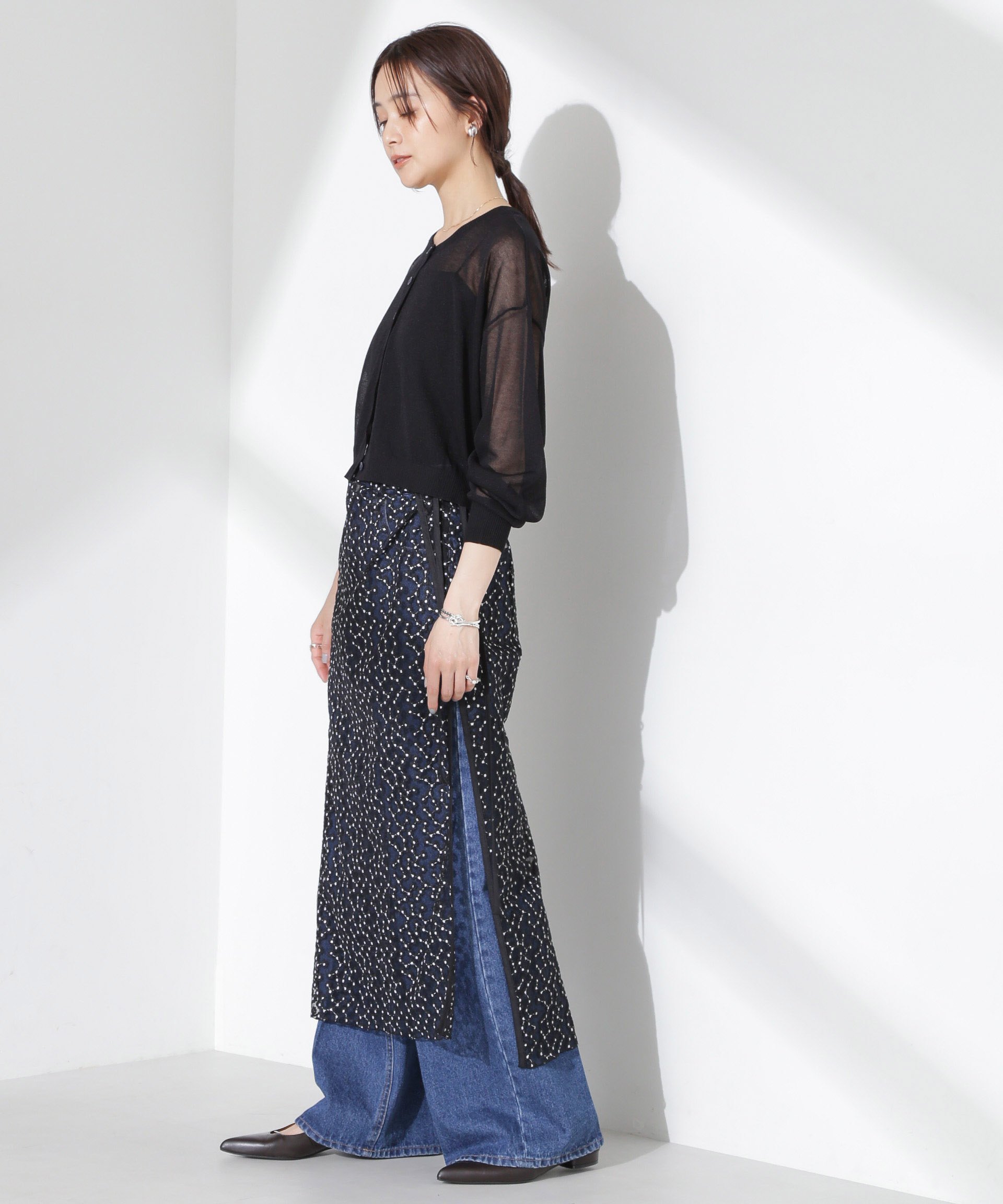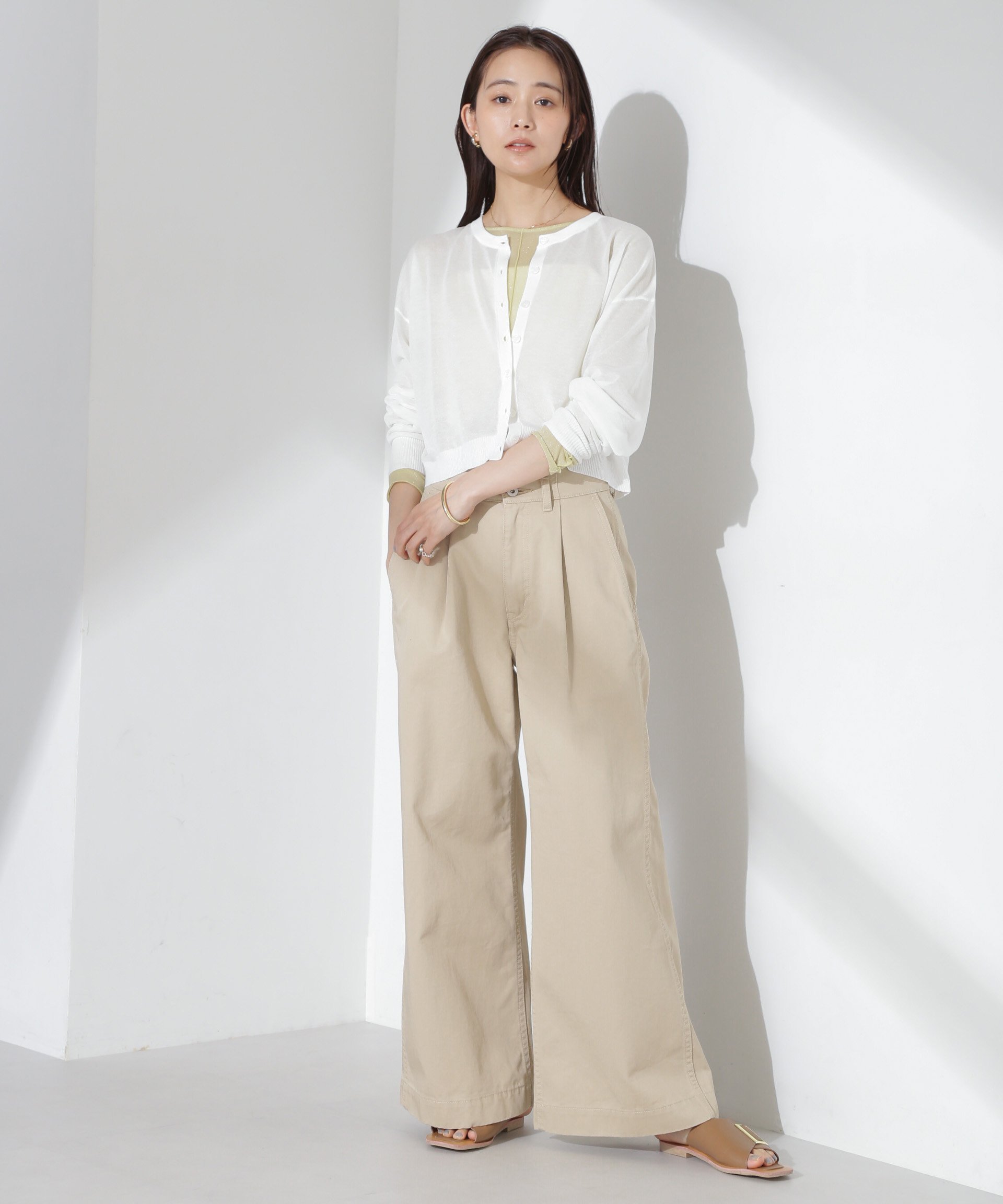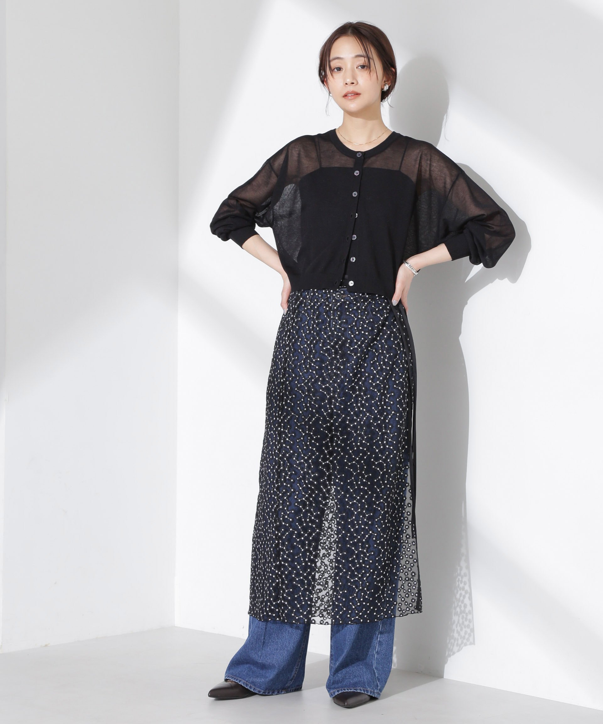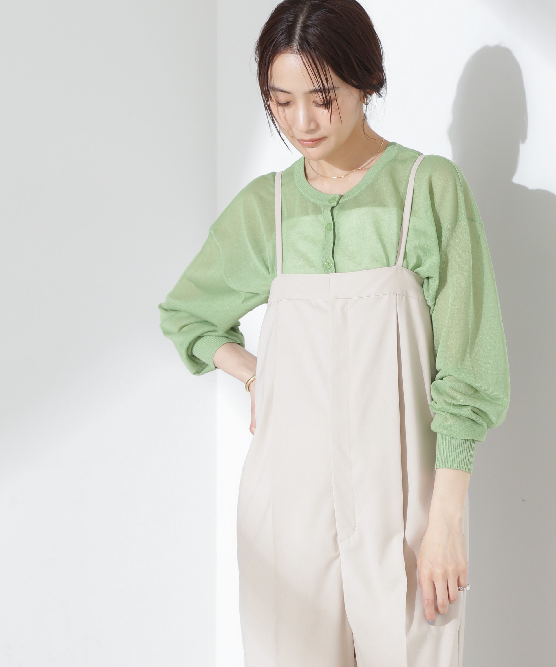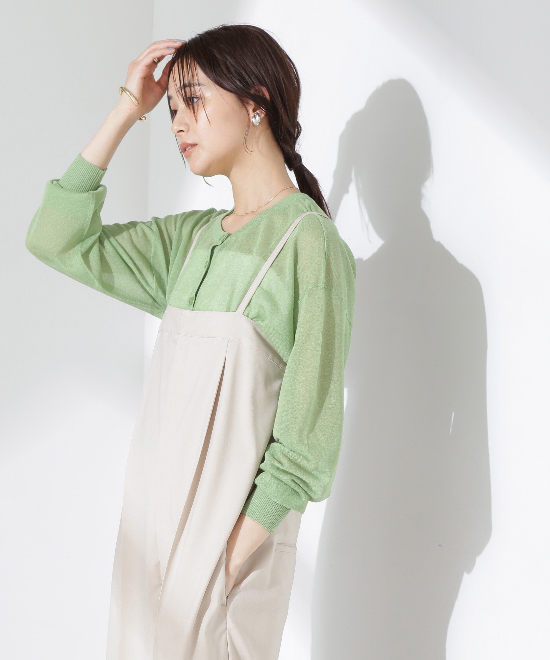 NANO universe クロップドシアーニットカーディガン ナノユニバース トップス ニット ブラック グリーン ホワイト【送料無料】