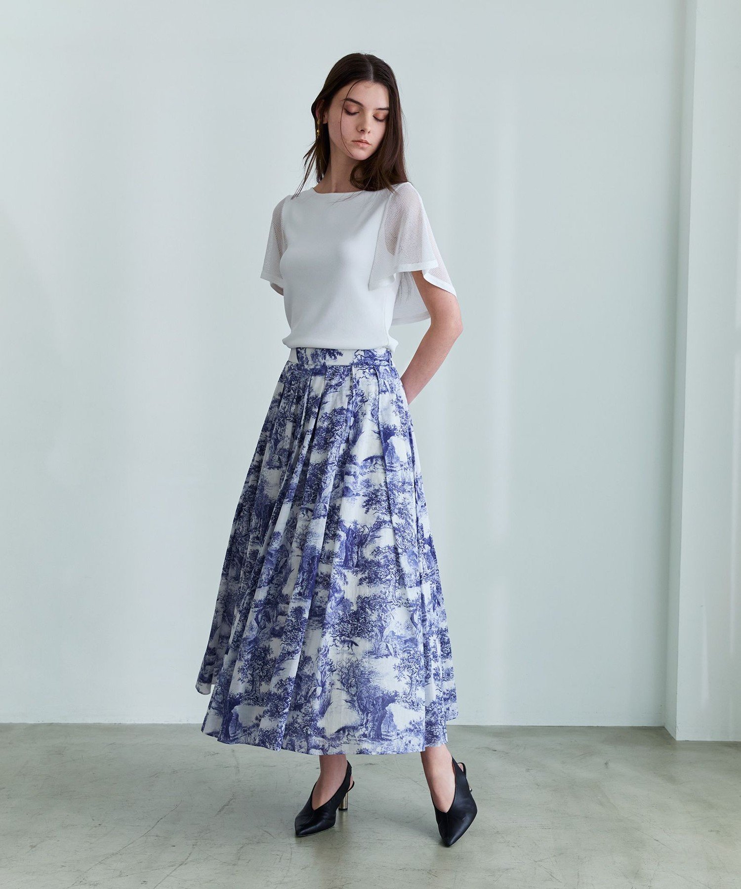 EPOCA トワルドジュイプリント タックフレアスカート エポカ スカート ロング・マキシスカート イエロー ブルー【送料無料】