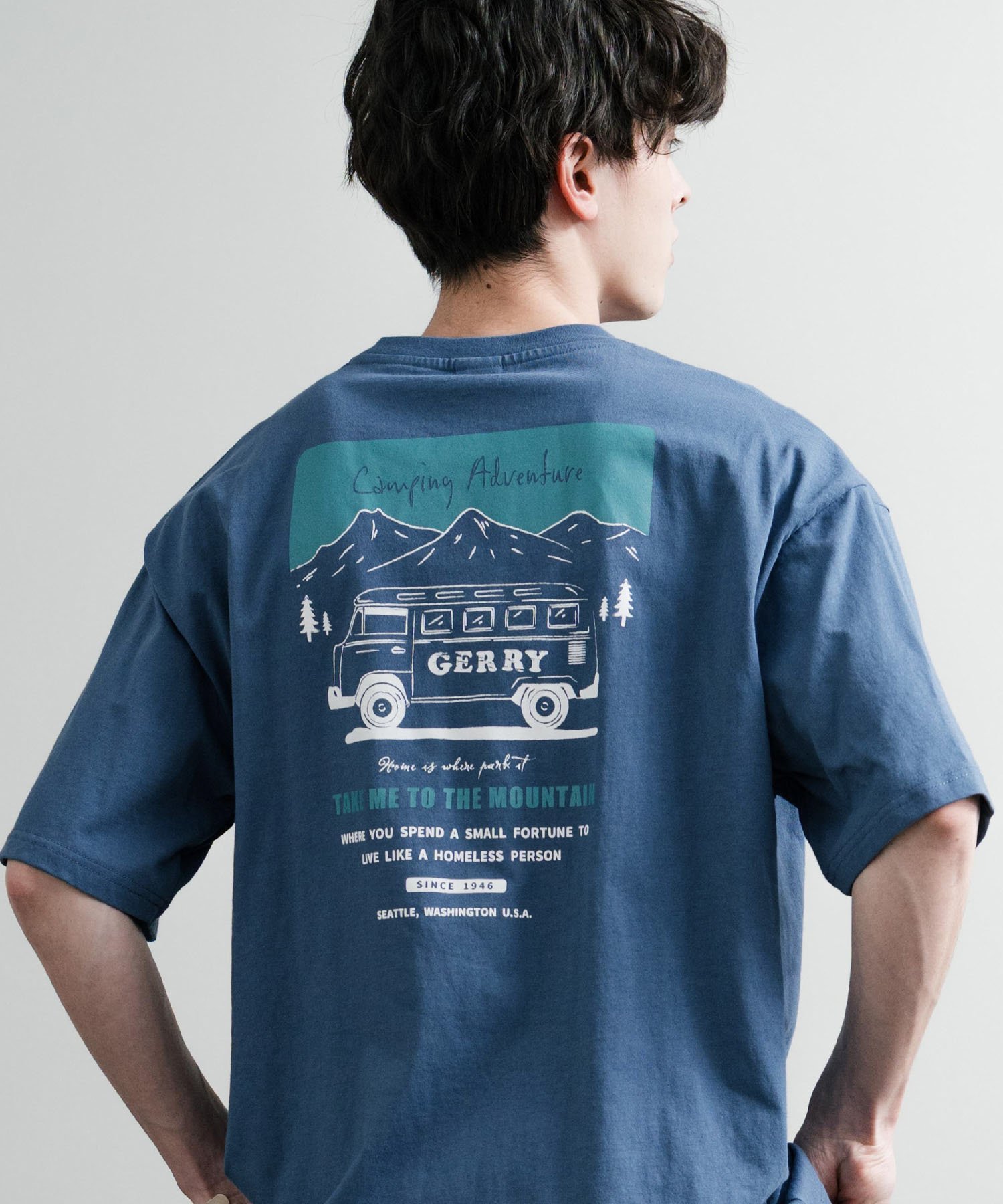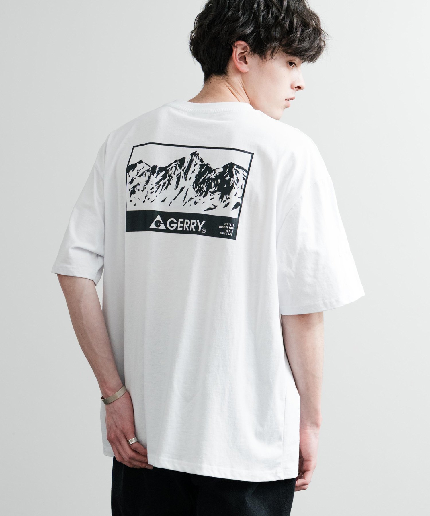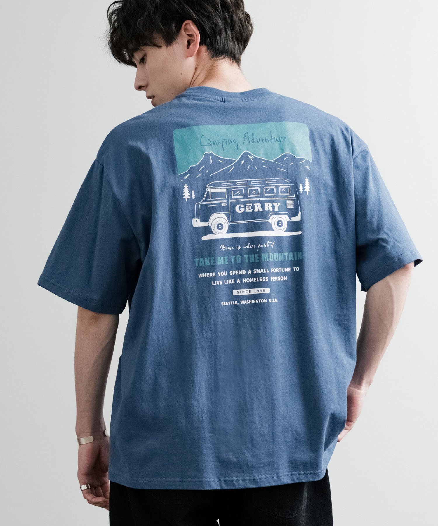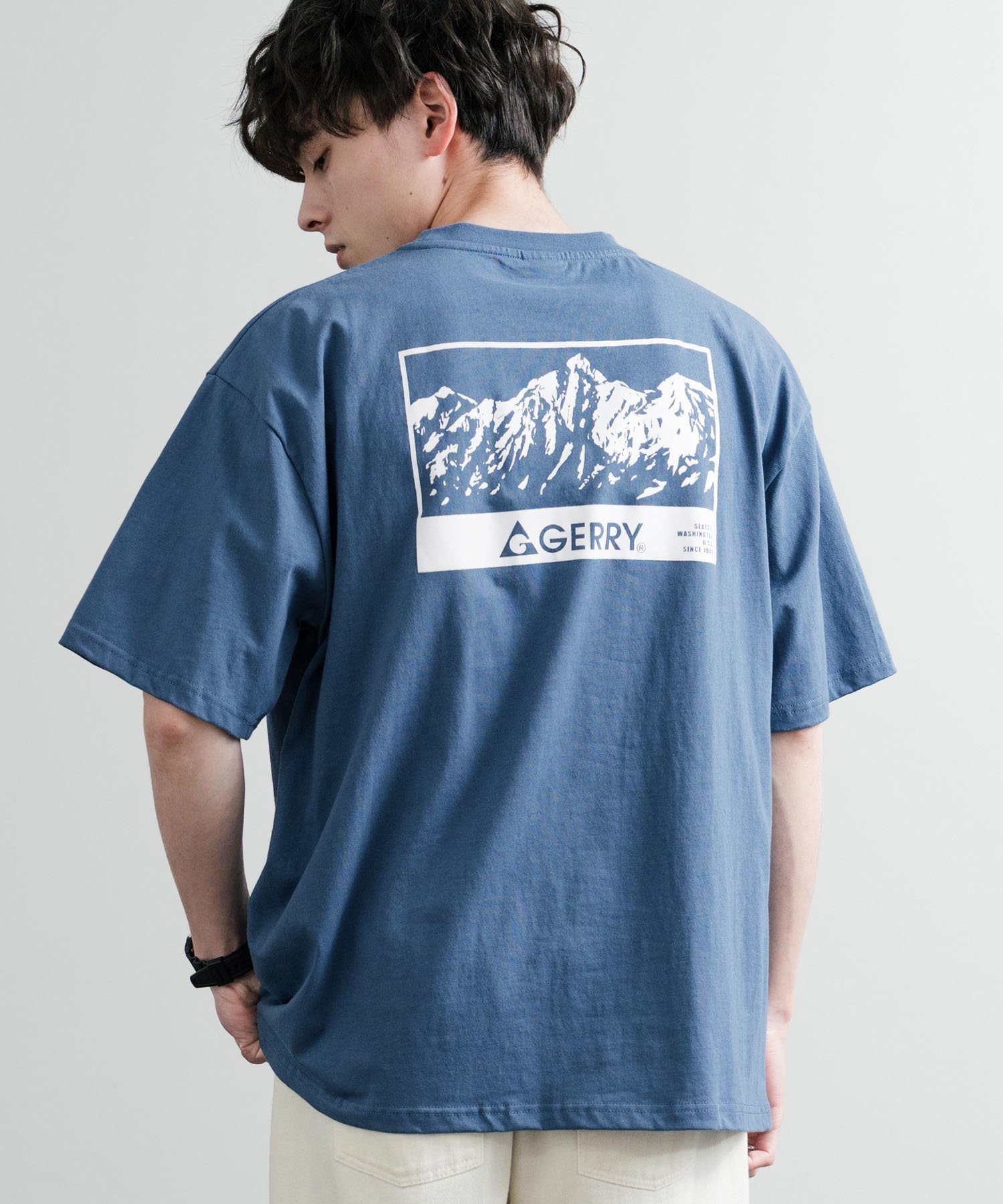 【SALE/32%OFF】Rocky Monroe GERRY ワンポイントロゴ刺繍バックプリント半袖Tシャツ ロッキーモンロー トップス カットソー・Tシャツ ホワイト ブルー グレー ブラック