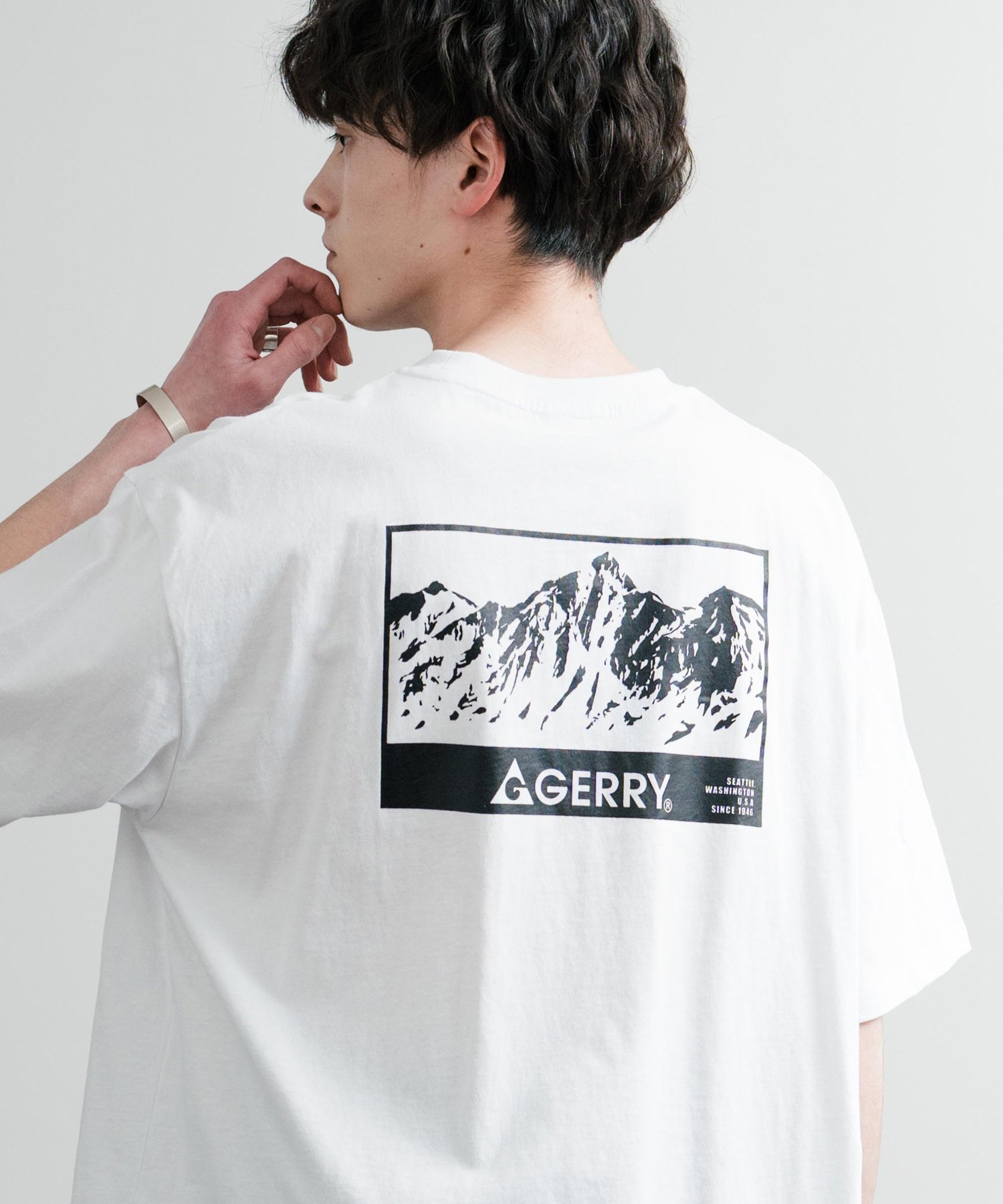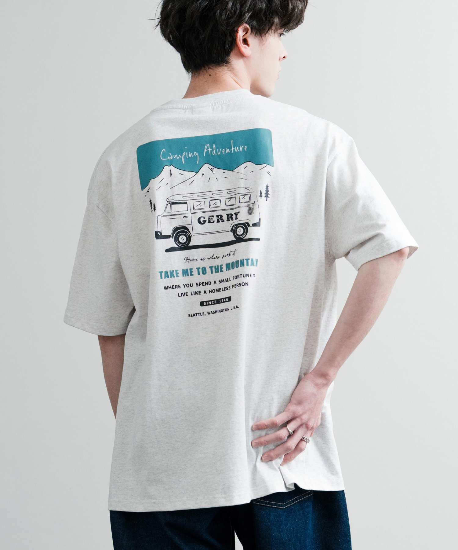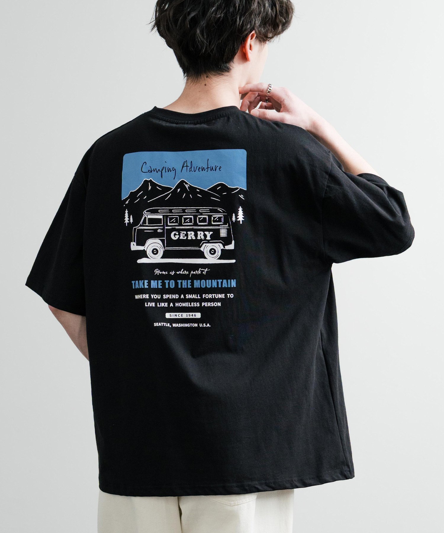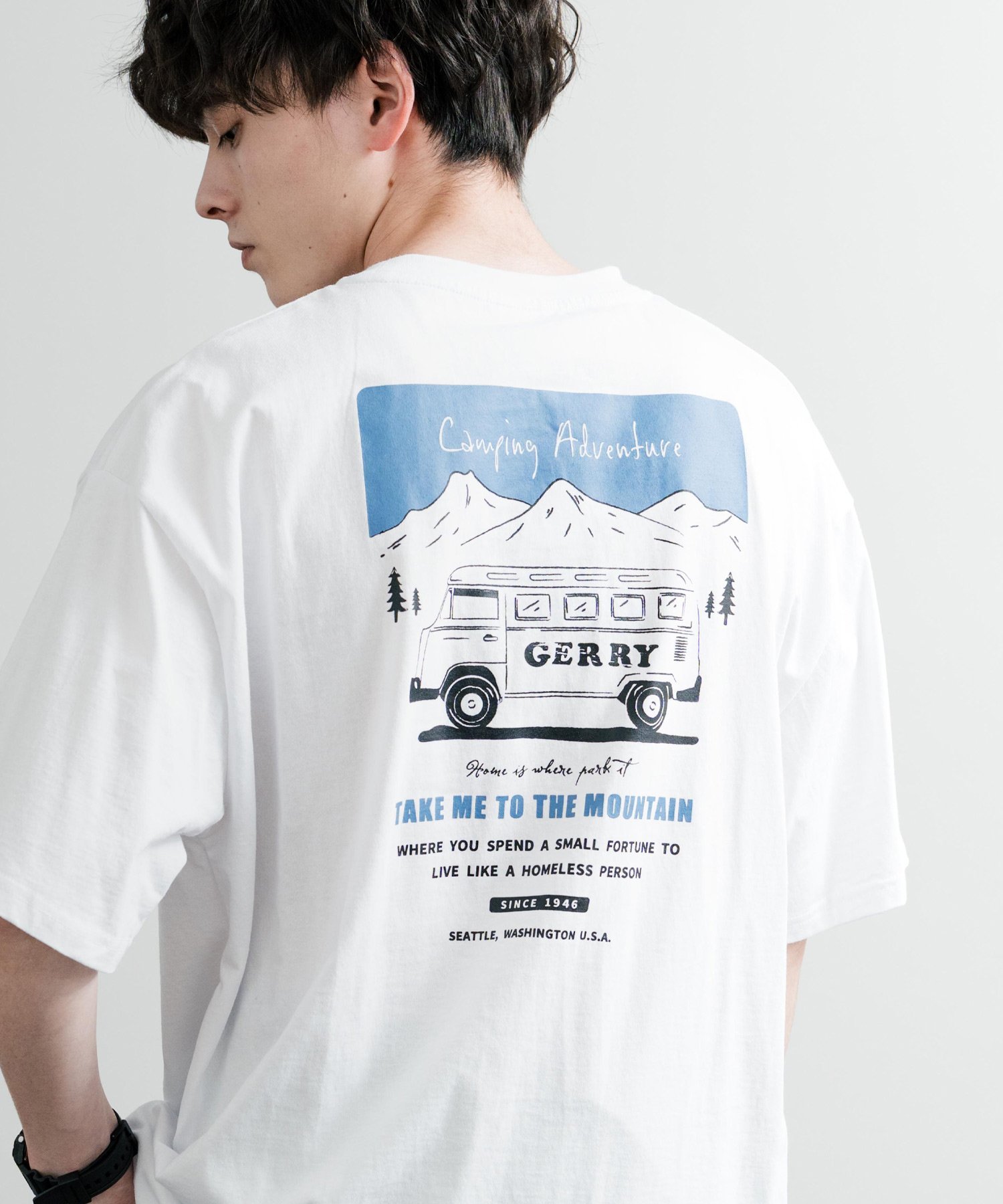 【SALE/32%OFF】Rocky Monroe GERRY ワンポイントロゴ刺繍バックプリント半袖Tシャツ ロッキーモンロー トップス カットソー・Tシャツ ホワイト ブルー グレー ブラック