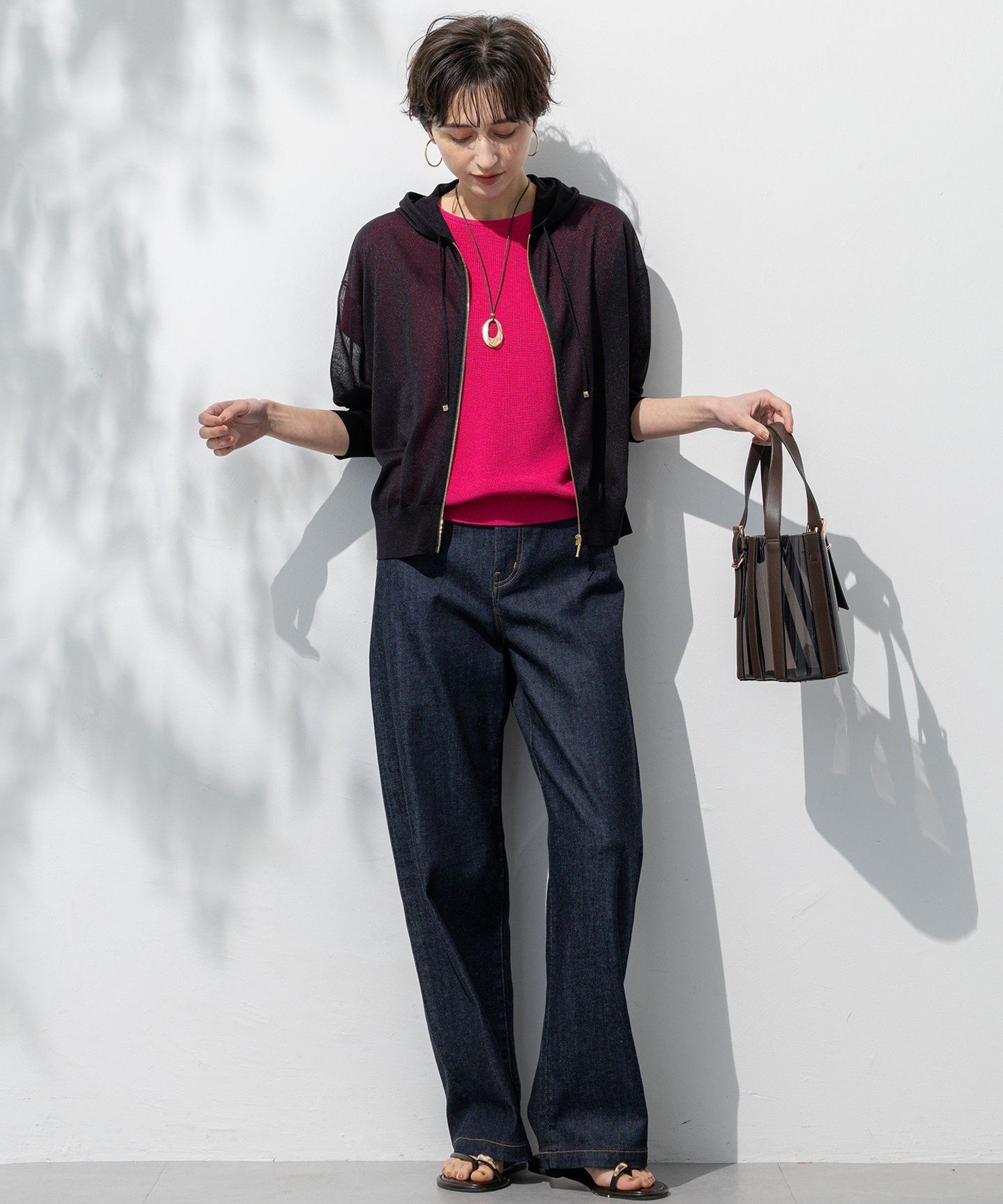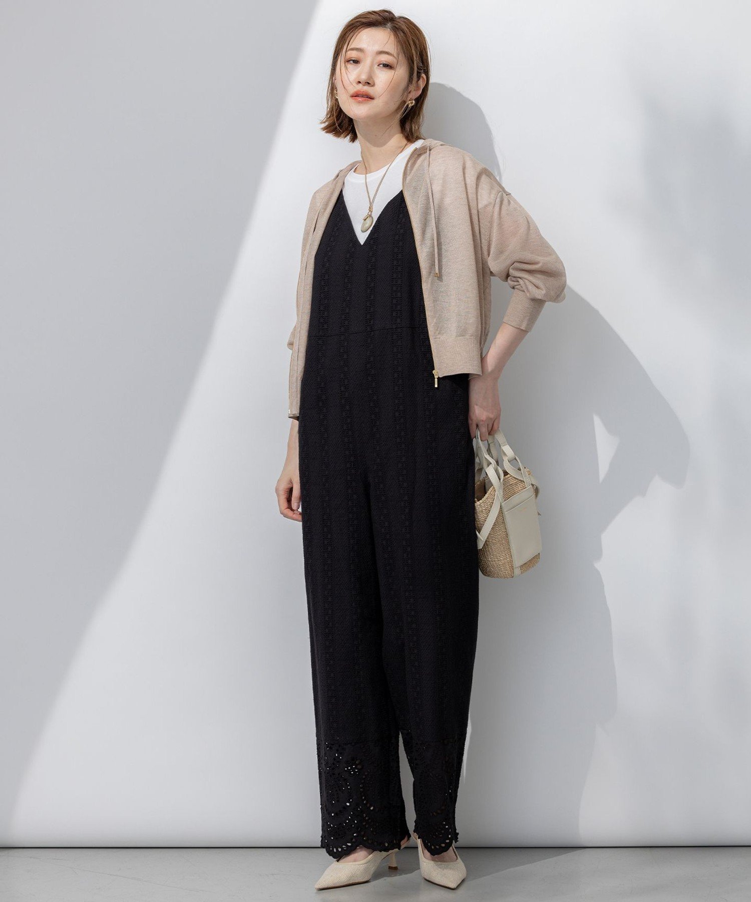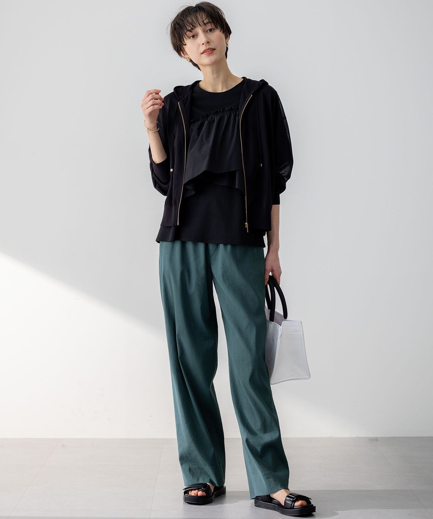 23区 S 【洗える】シャイニーシアー ニット パーカー ニジュウサンク トップス パーカー・フーディー ホワイト ブラック ベージュ【送料無料】