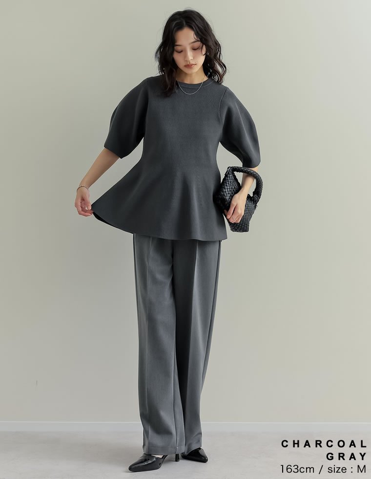 【SALE/10%OFF】Re:EDIT スポンジニットペプラム半袖トップス リエディ トップス ニット ブラック ホワイト ブラウン グレー【送料無料】