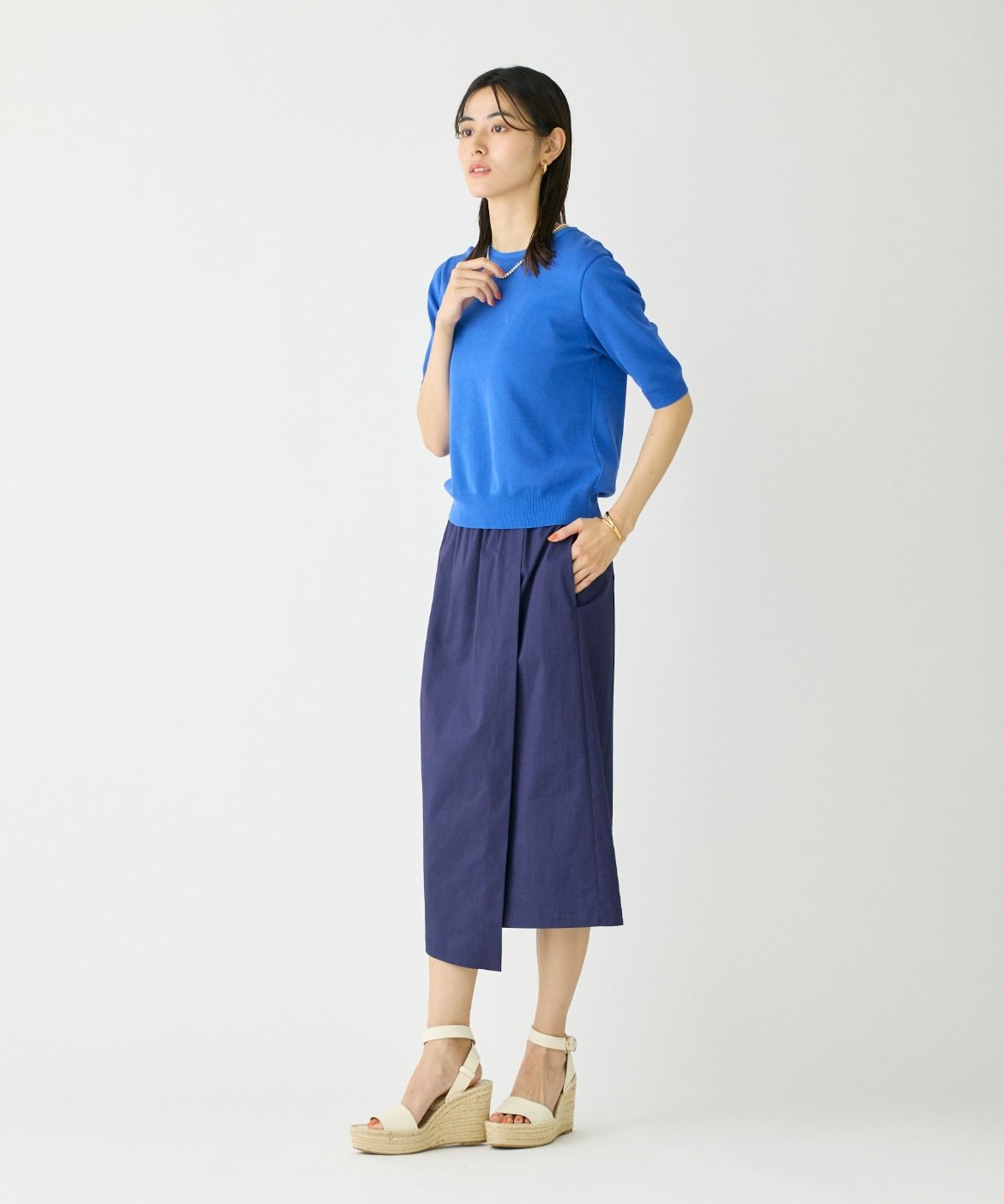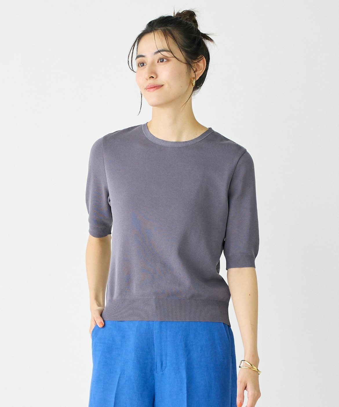 I.T.'S. international クルーネック5分袖ニット《ガスコットン》 イッツインターナショナル トップス ニット グレー ネイビー ベージュ ブルー【送料無料】