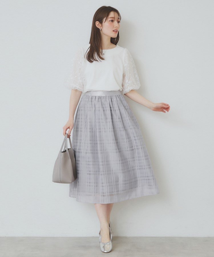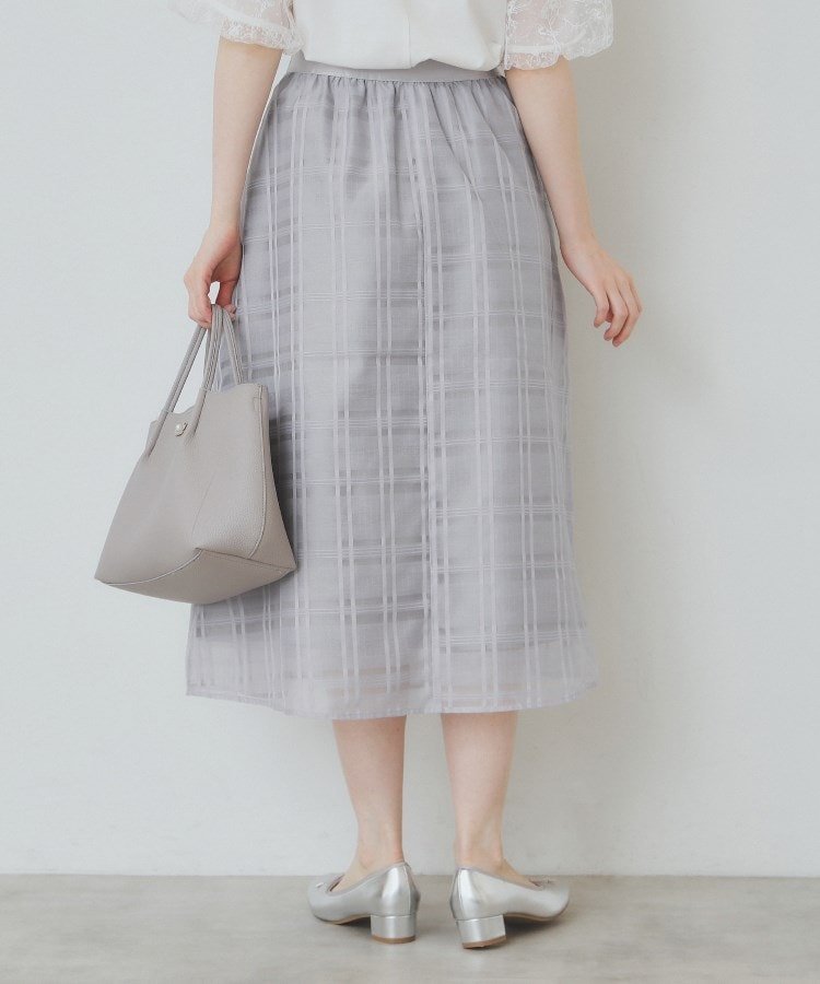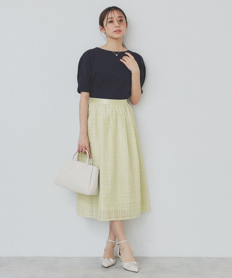 index シアーチェックタックフレアスカート【洗濯機洗い可/イージーアイロン】 インデックス スカート その他のスカート ネイビー イエロー【送料無料】