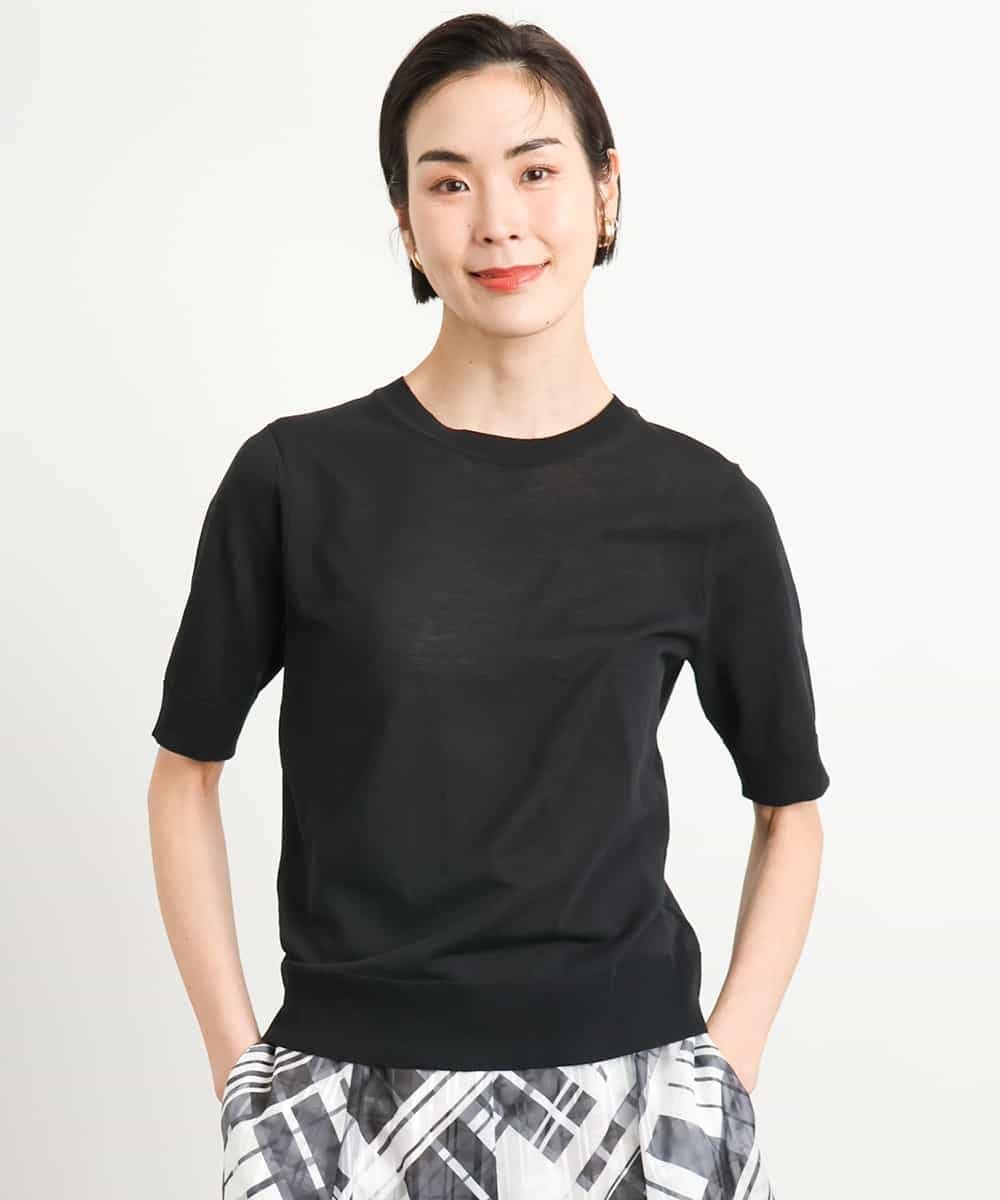 MICHEL KLEIN [アンサンブル対応/接触冷感]クルーネックニットプルオーバー ミッシェルクラン トップス ニット ホワイト ブラック ネイビー パープル【送料無料】