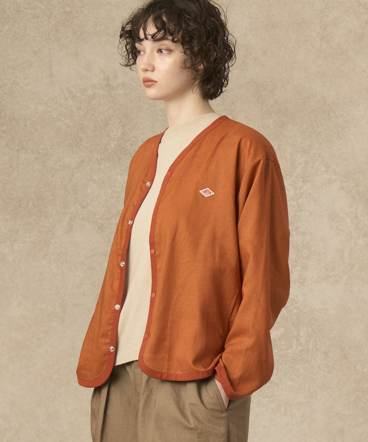 Bshop DANTON | リネンポリエステル シャツカーディガン WOMEN ビショップ トップス シャツ・ブラウス ブラック オレンジ【送料無料】
