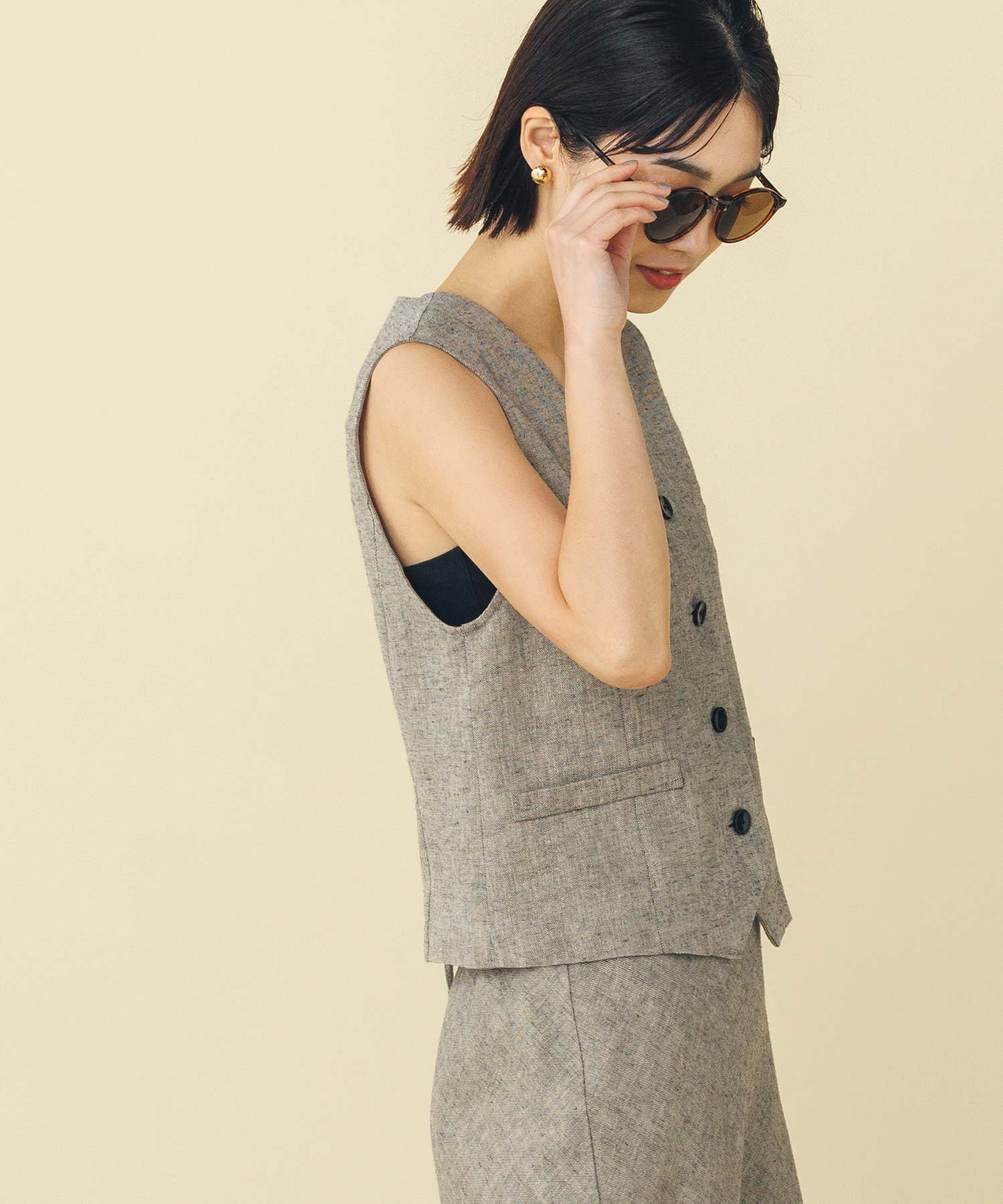 【SALE/30%OFF】Gready Brilliant Gready Brilliant/(W)2_LUラメリネンベスト グレディブリリアン トップス ベスト・ジレ ブラック グレー【送料無料】