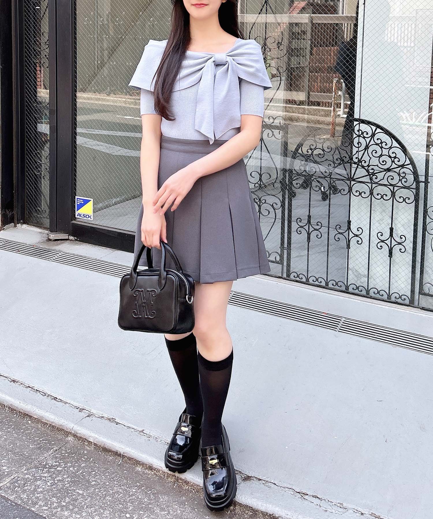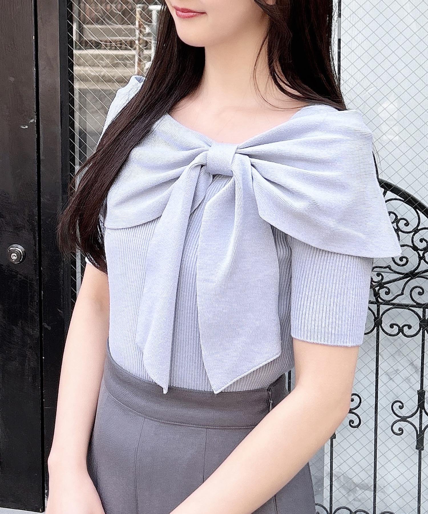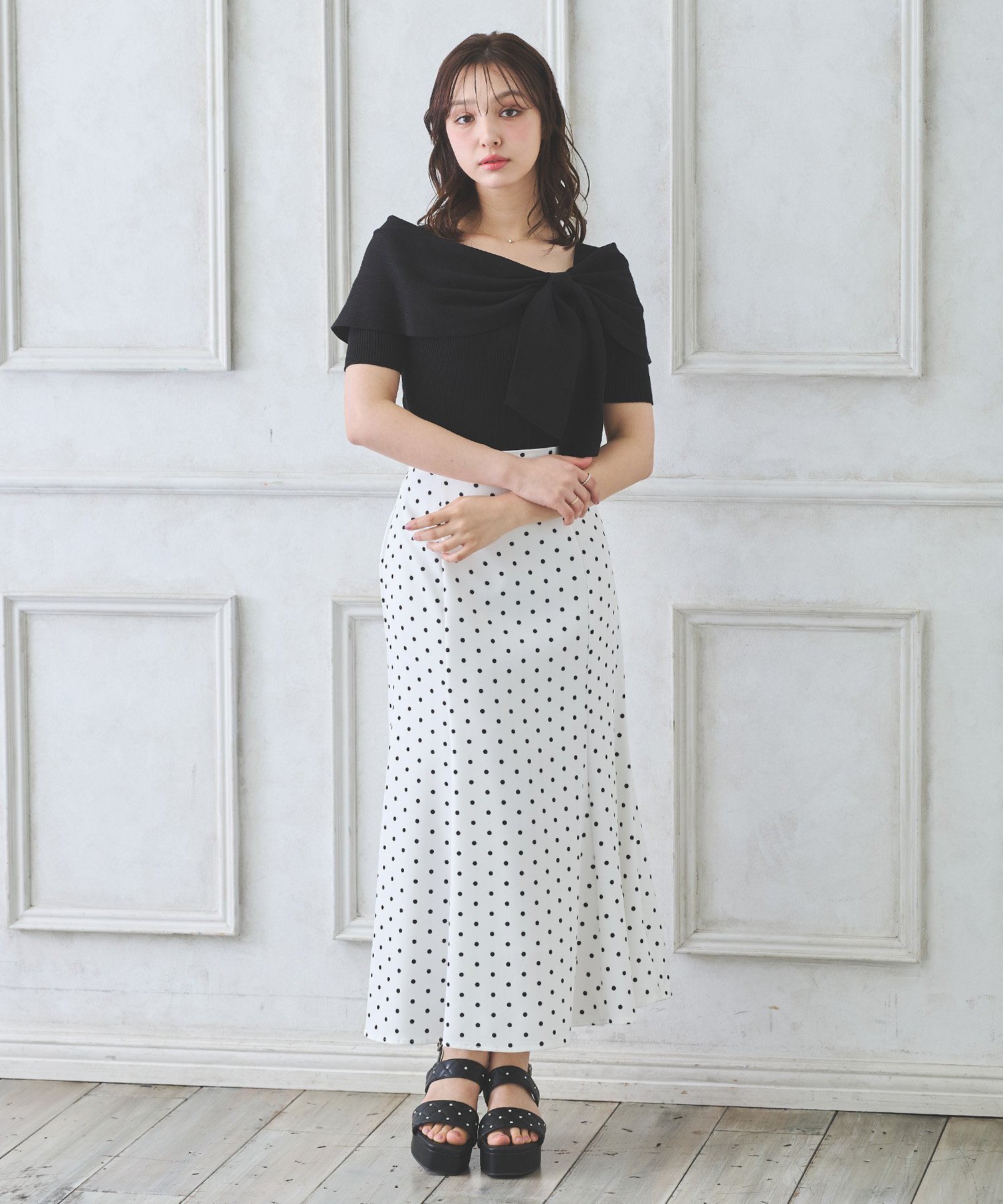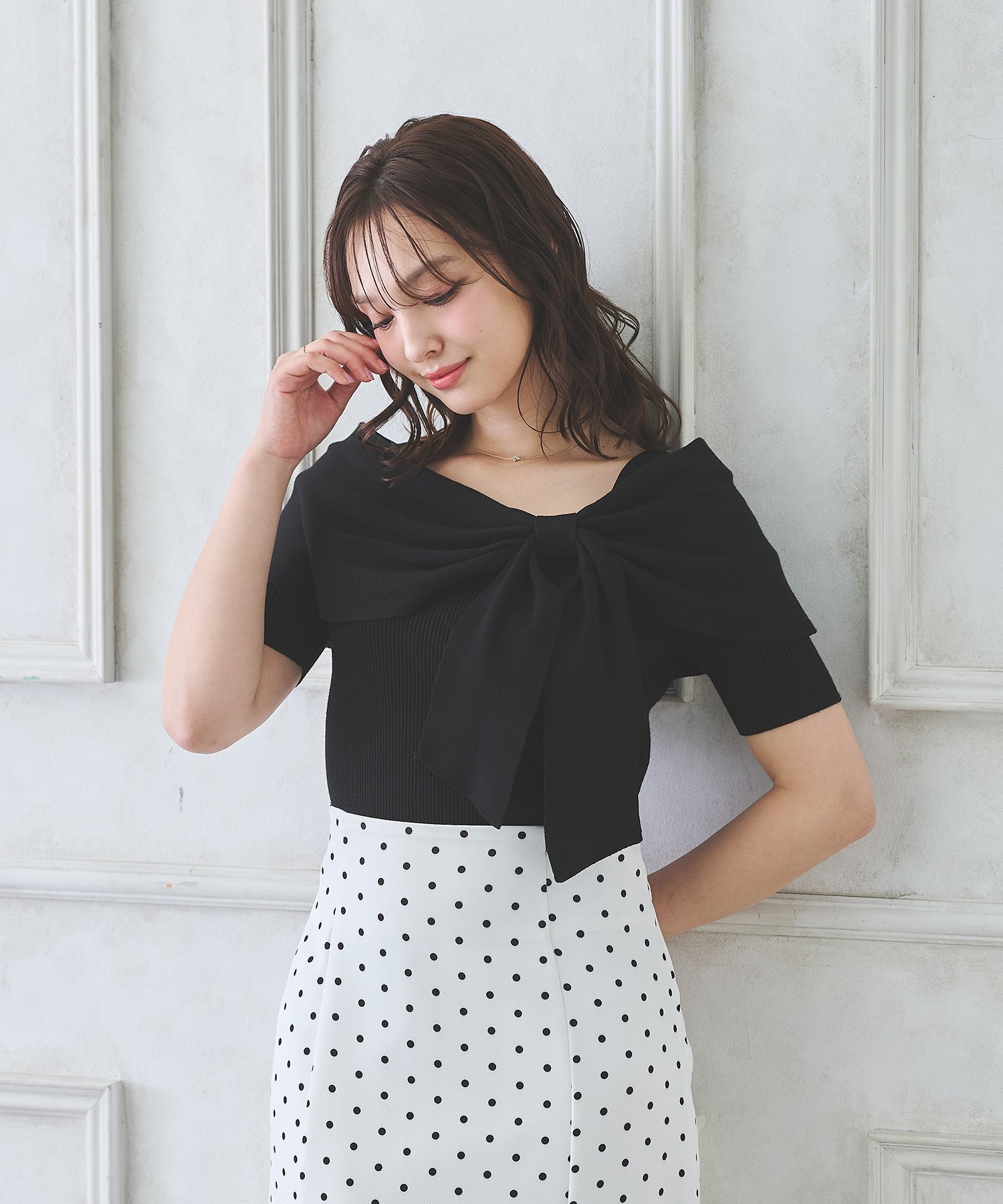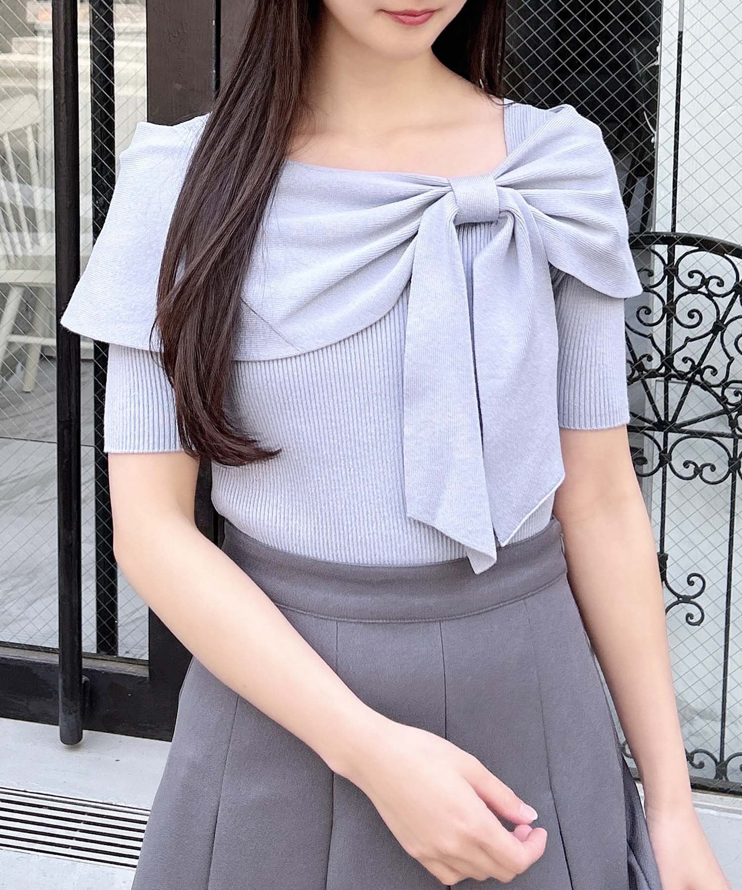 INGNI オフショルリボン半袖ニット イング トップス ニット ホワイト ピンク ブラック ブルー