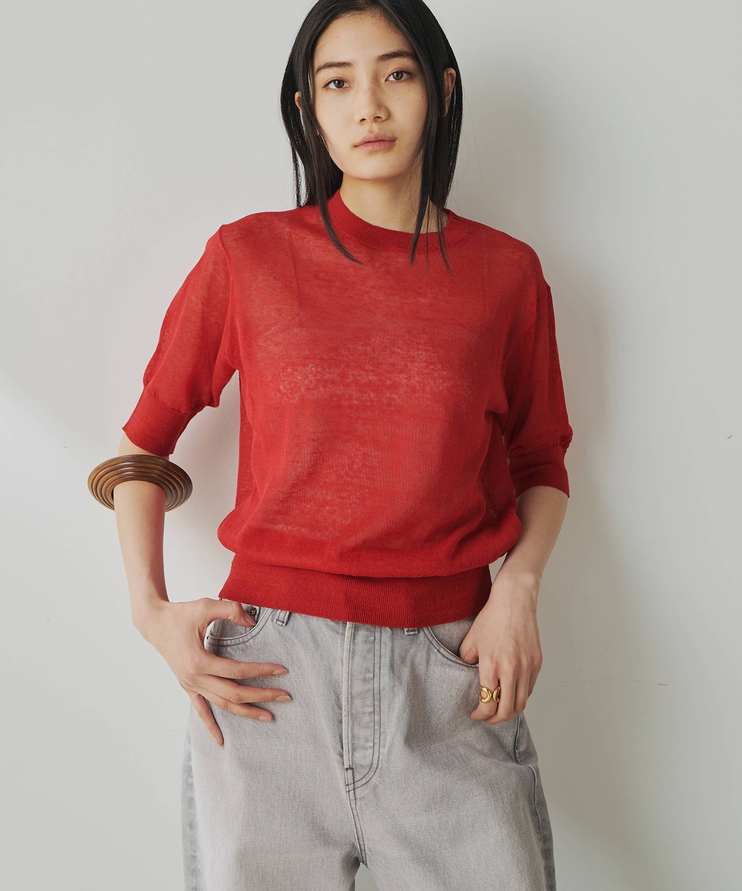 Whim Gazette シアーリネンハーフスリーブプルオーバー ウィム ガゼット トップス ニット ブラック ベージュ レッド【送料無料】
