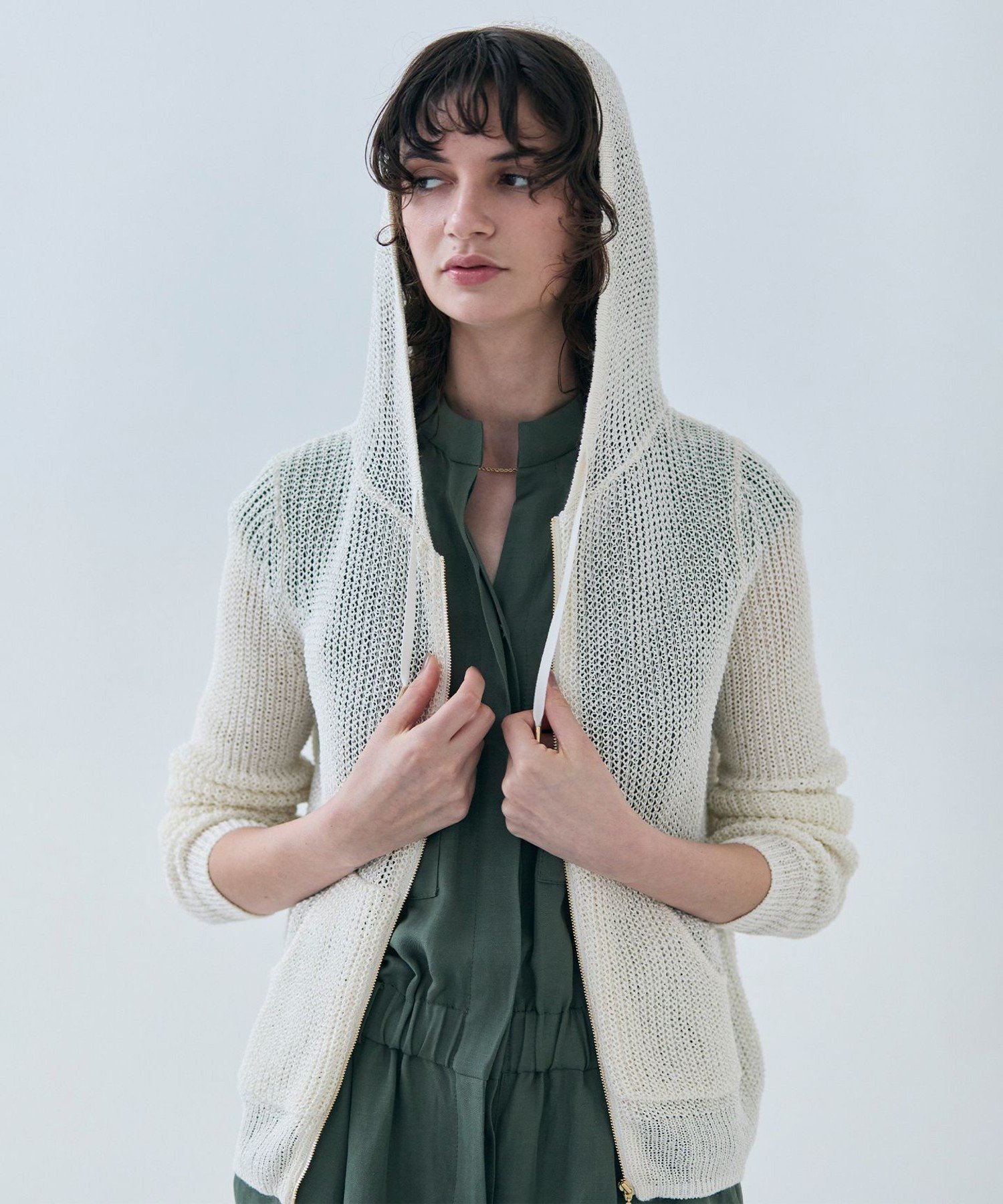 BEIGE, 【洗える】OPTICAL / ペーパーヤーンフーディージップニット ベイジ, トップス パーカー・フーディー レッド カーキグリーン【送料無料】