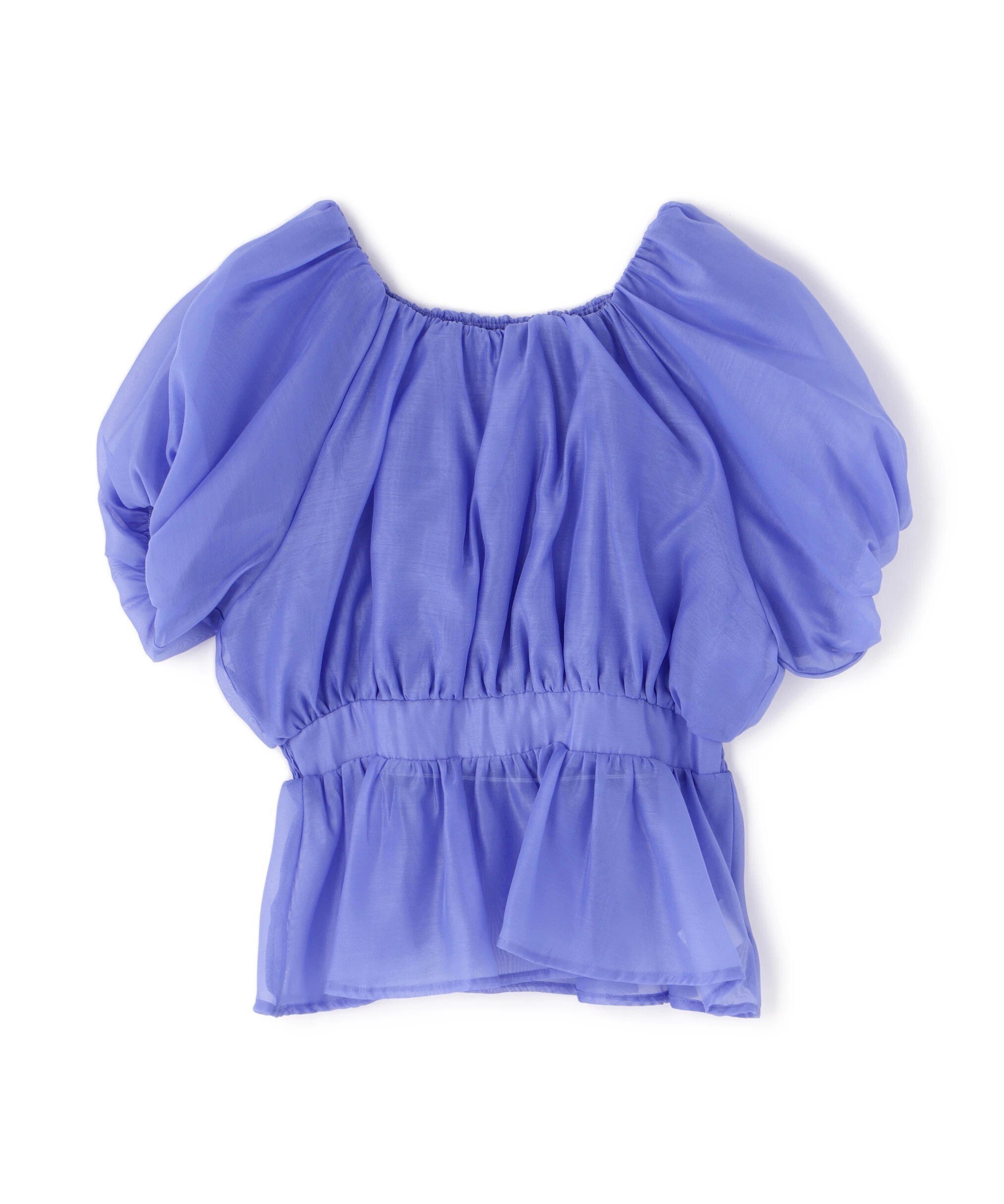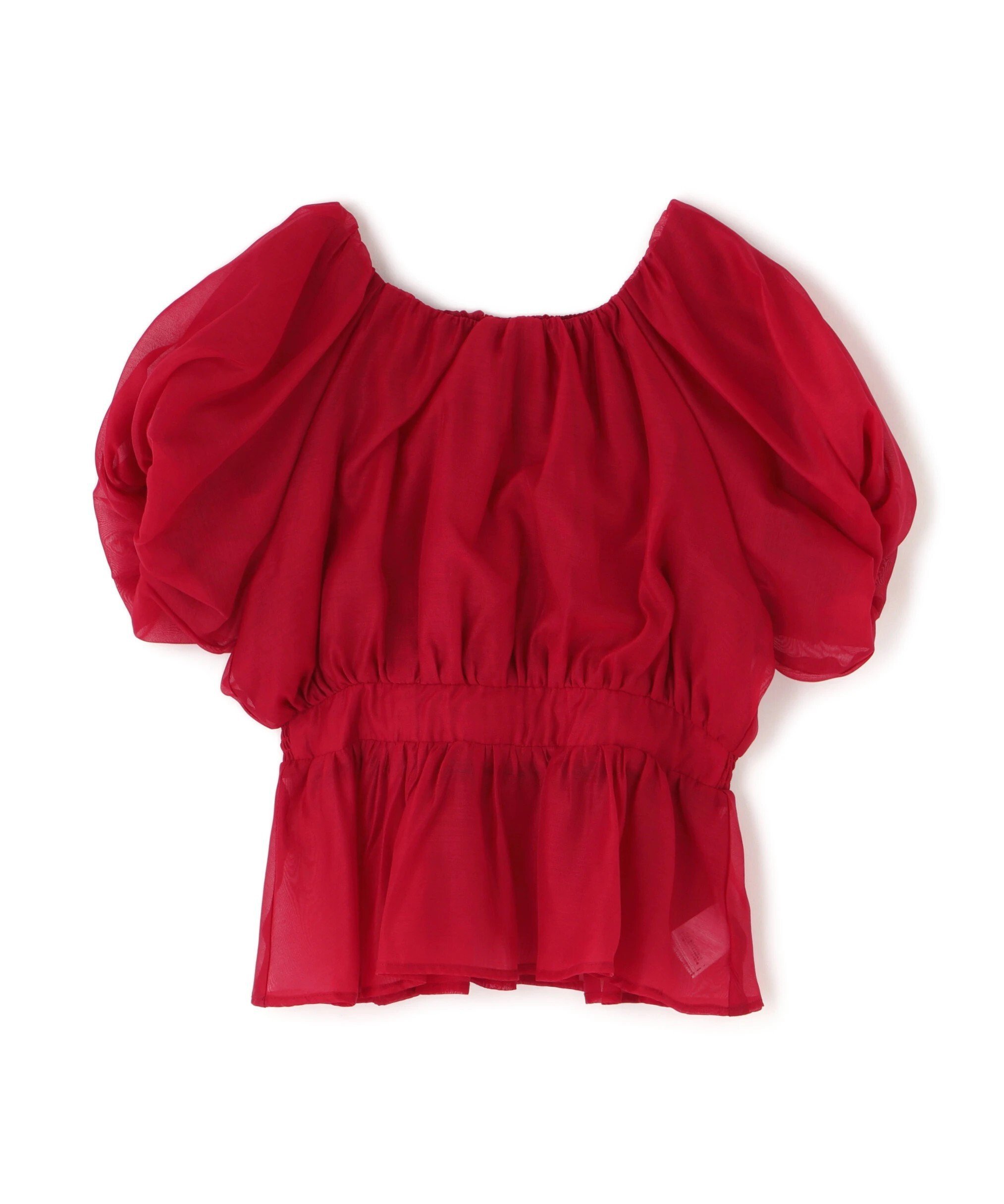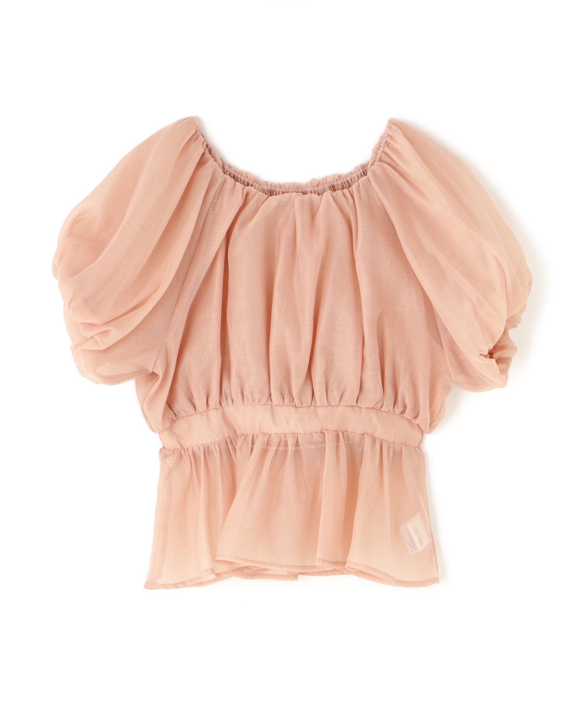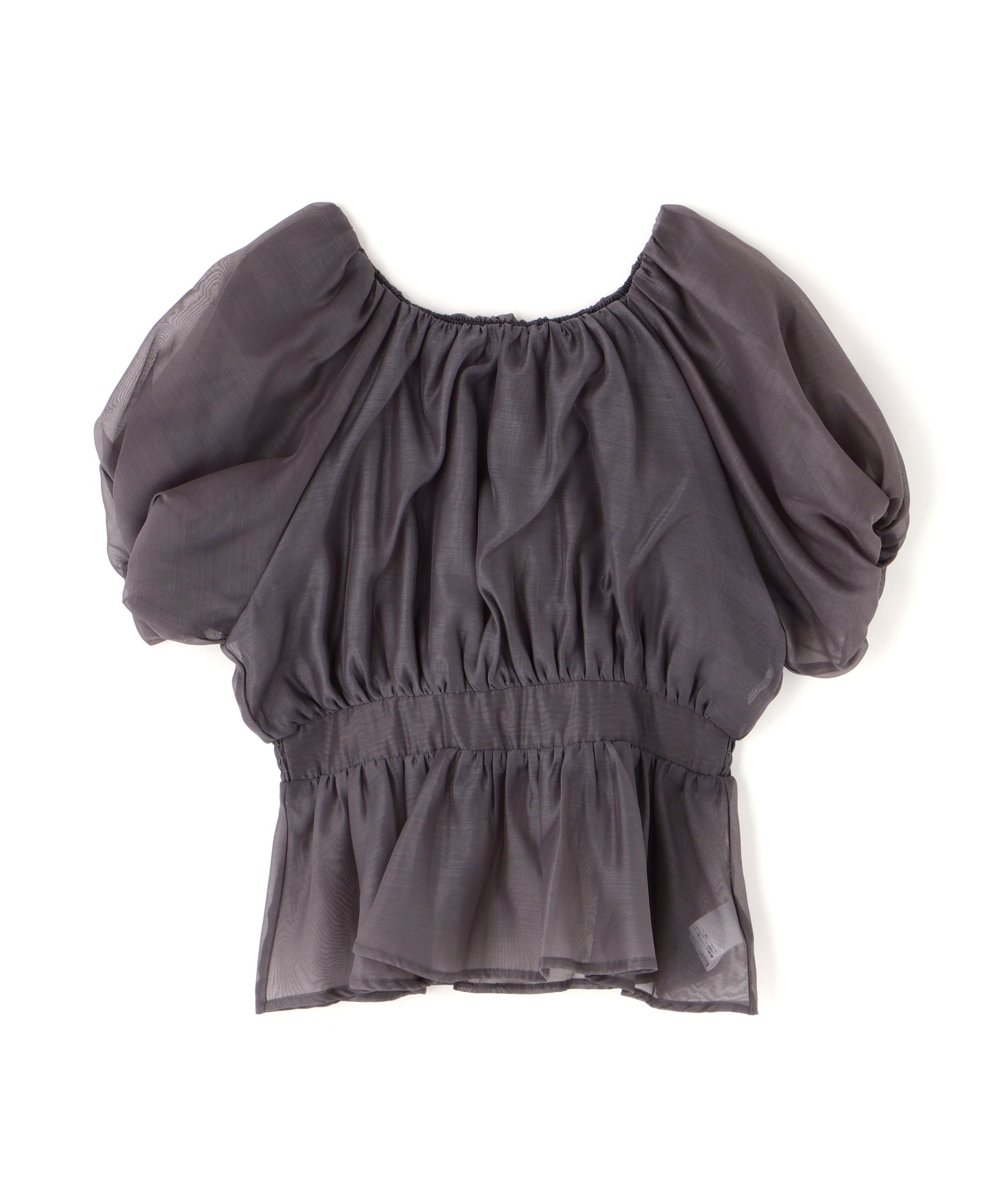 NATURAL BEAUTY BASIC シアーギャザーペプラムブラウス半袖 ナチュラルビューティベーシック トップス シャツ・ブラウス グレー ブルー レッド ベージュ【送料無料】