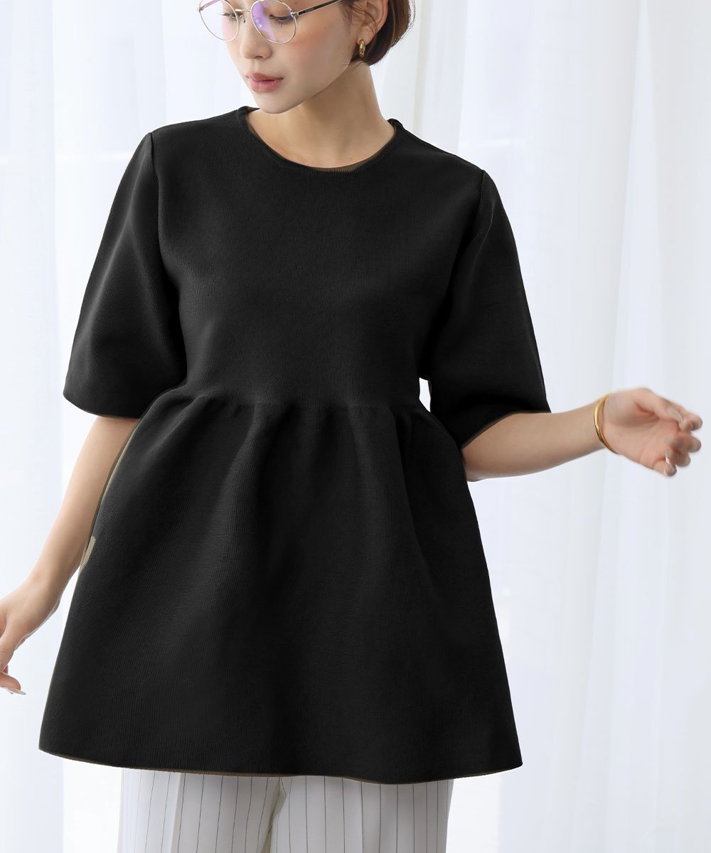 ELFRANK 裾フレア切り替え半袖ニットプルオーバー ガール トップス ニット カーキグリーン ピンク ブラック【送料無料】