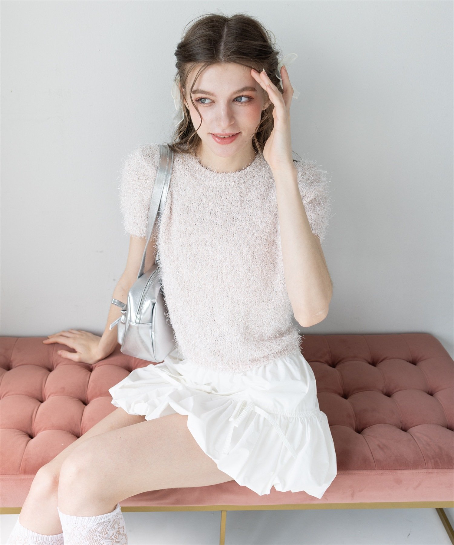 【SALE/20%OFF】clear ラメシャギー半袖ニットトップス クリア トップス ニット ピンク