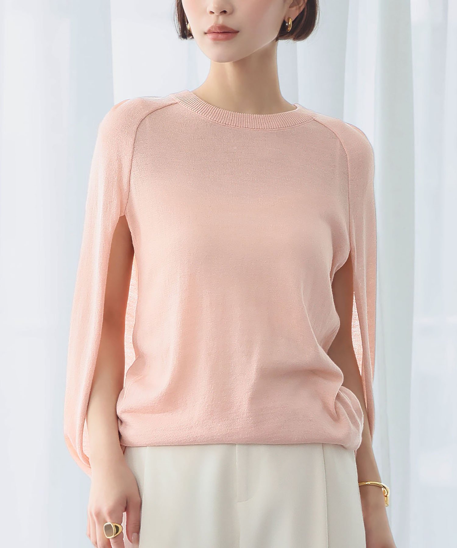 ELFRANK ケープスリットスリーブニットプルオーバー ガール トップス ニット レッド グリーン ブラック ピンク【送料無料】