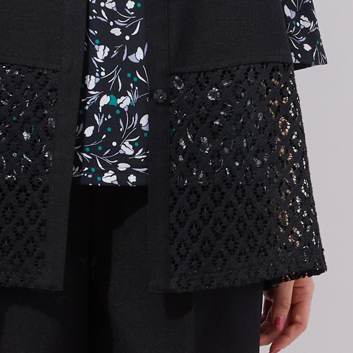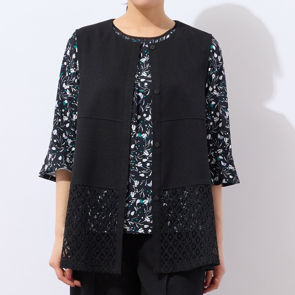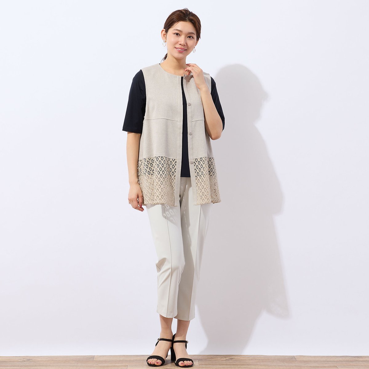 【SALE/10%OFF】LOBJIE 【洗える・セットアップ可能】ヘムレースベスト ロブジェ トップス ベスト・ジレ ベージュ ブラック【送料無料】