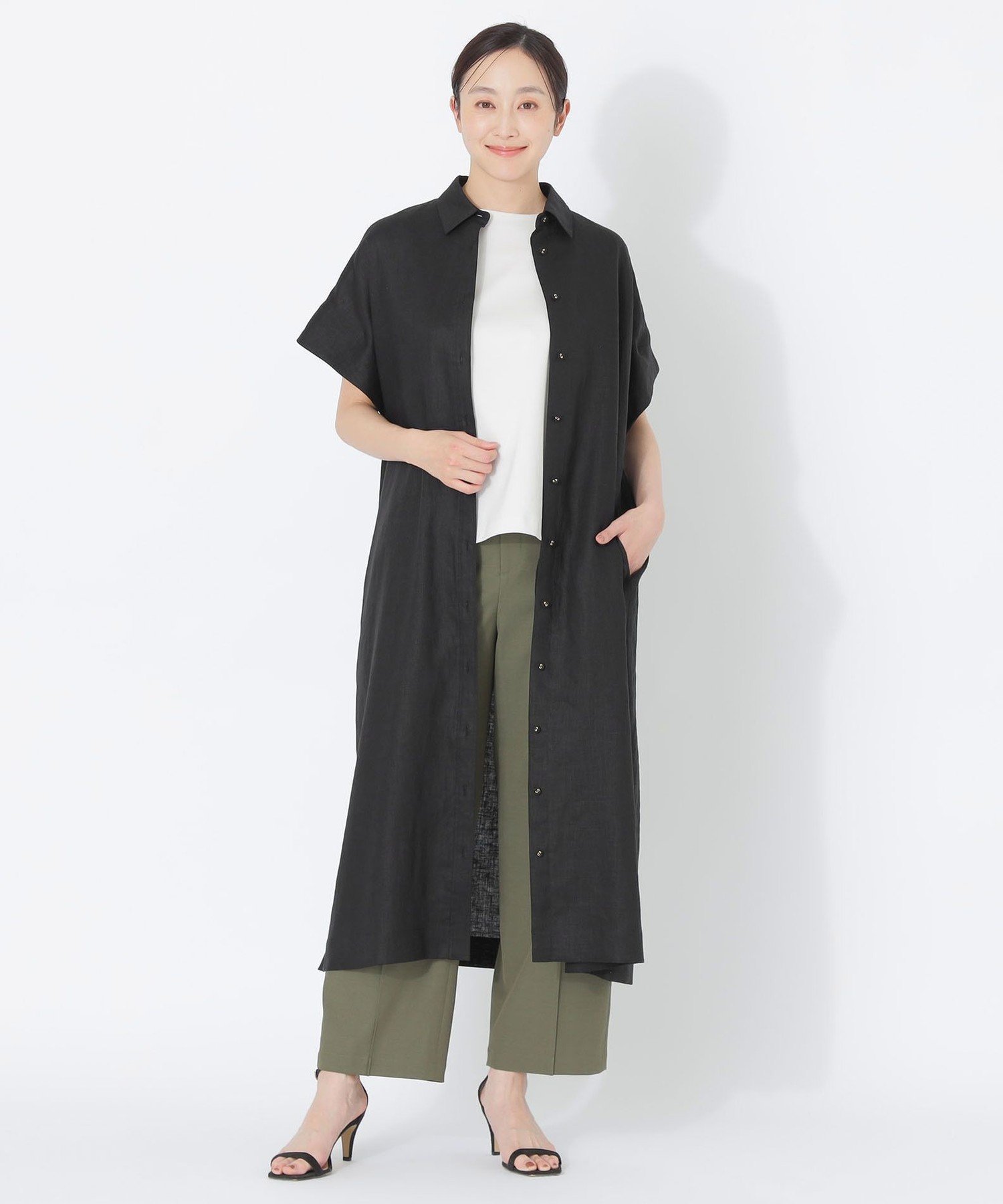 S.ESSENTIALS カラーリネンシャツワンピース エス エッセンシャルズ ワンピース・ドレス ワンピース ブラック カーキグリーン ブルー【送料無料】