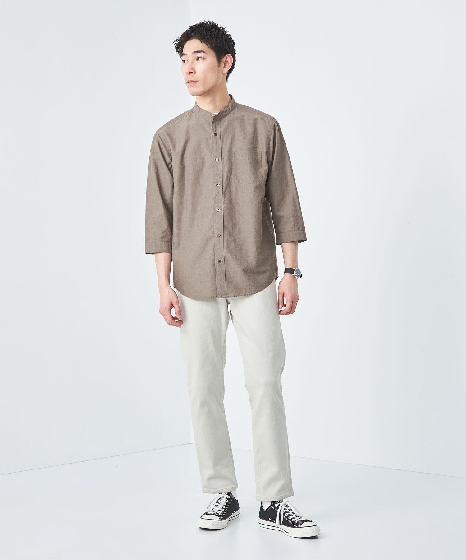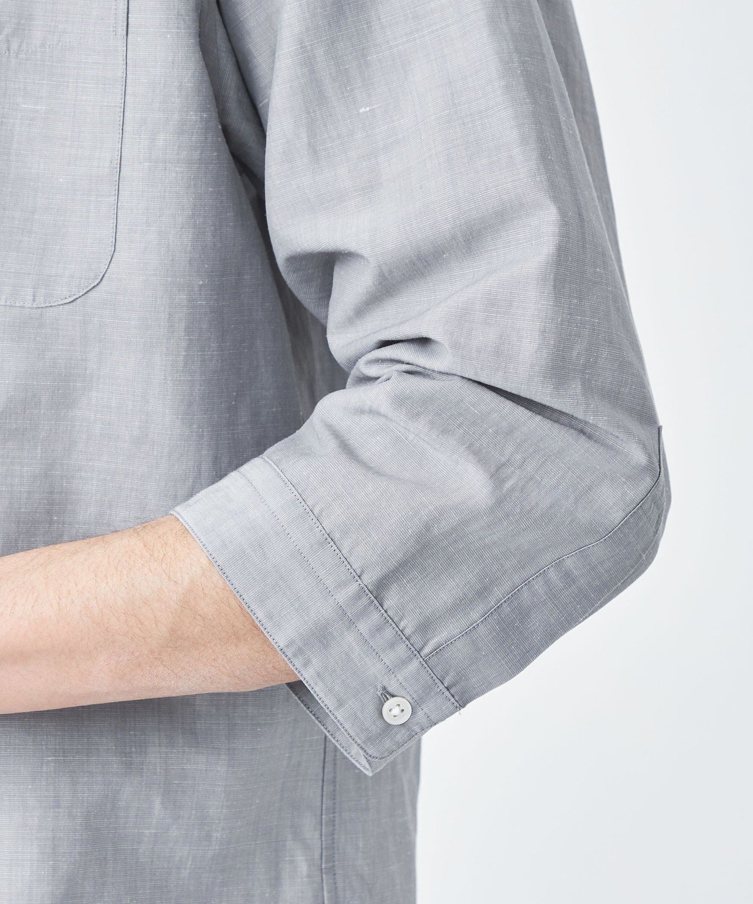 UNITED ARROWS green label relaxing ラミー バンドカラー 7分袖 シャツ ユナイテッドアローズ グリーンレーベルリラクシング トップス シャツ・ブラウス グレー ブラウン【送料無料】