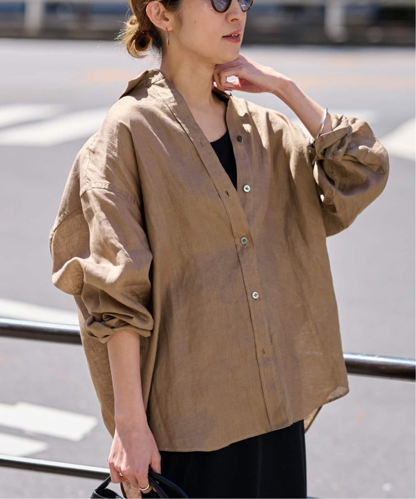 FRAMeWORK ≪追加予約≫ライトフレンチリネンレギュラーシャツ フレームワーク トップス シャツ・ブラウス ブラウン ベージュ ブルー【送料無料】