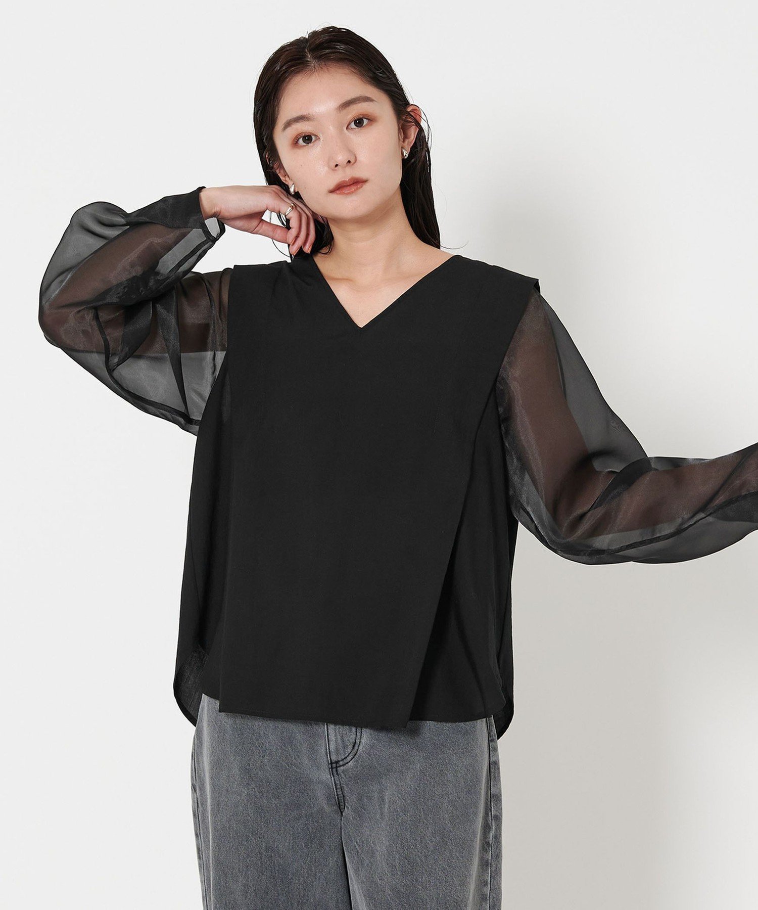 MARW UNITED ARROWS <MARW UNITED ARROWS>シアー Vネック コンビ ブラウス ユナイテッドアローズ トップス シャツ・ブラウス ブラック ホワイト【送料無料】