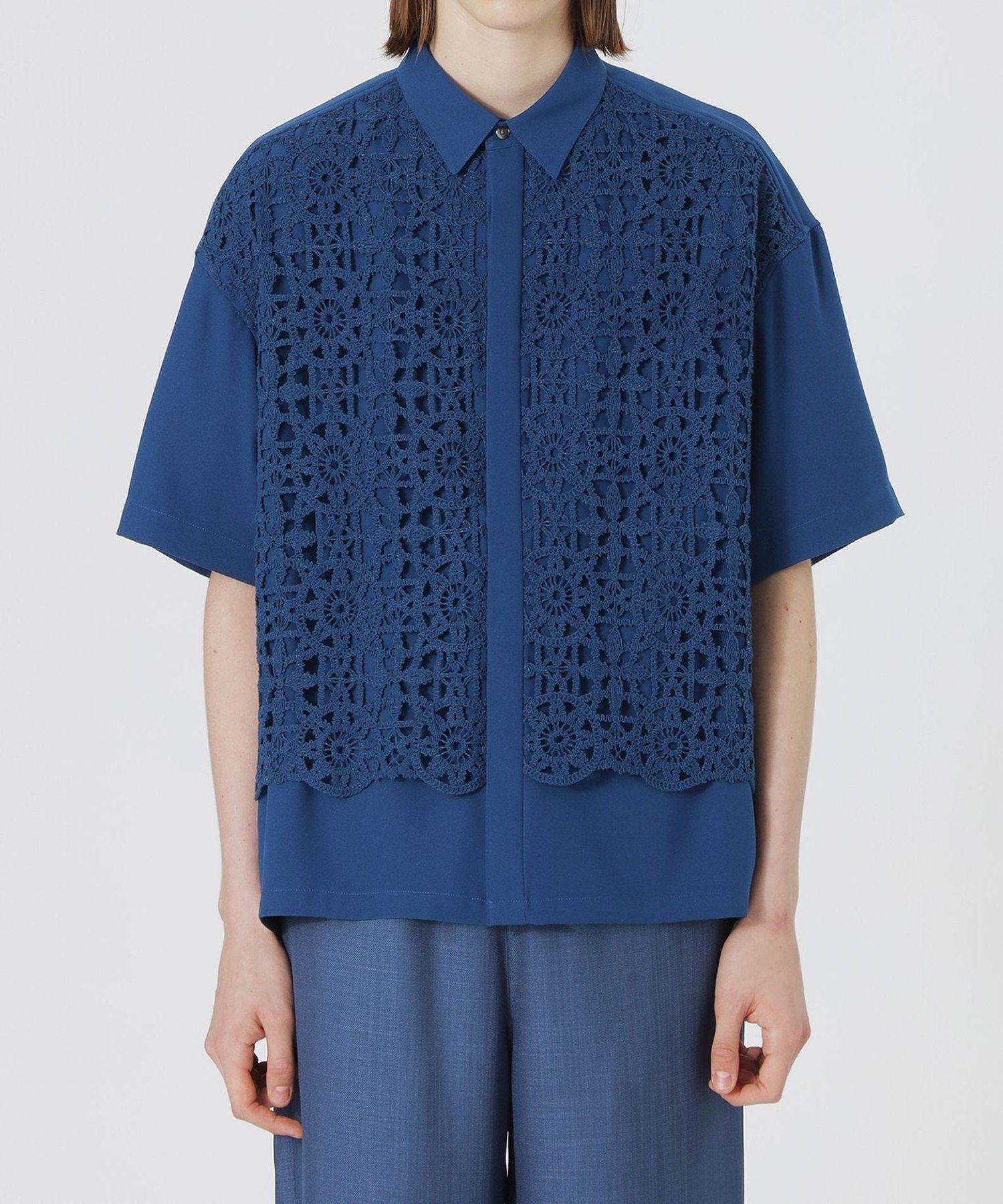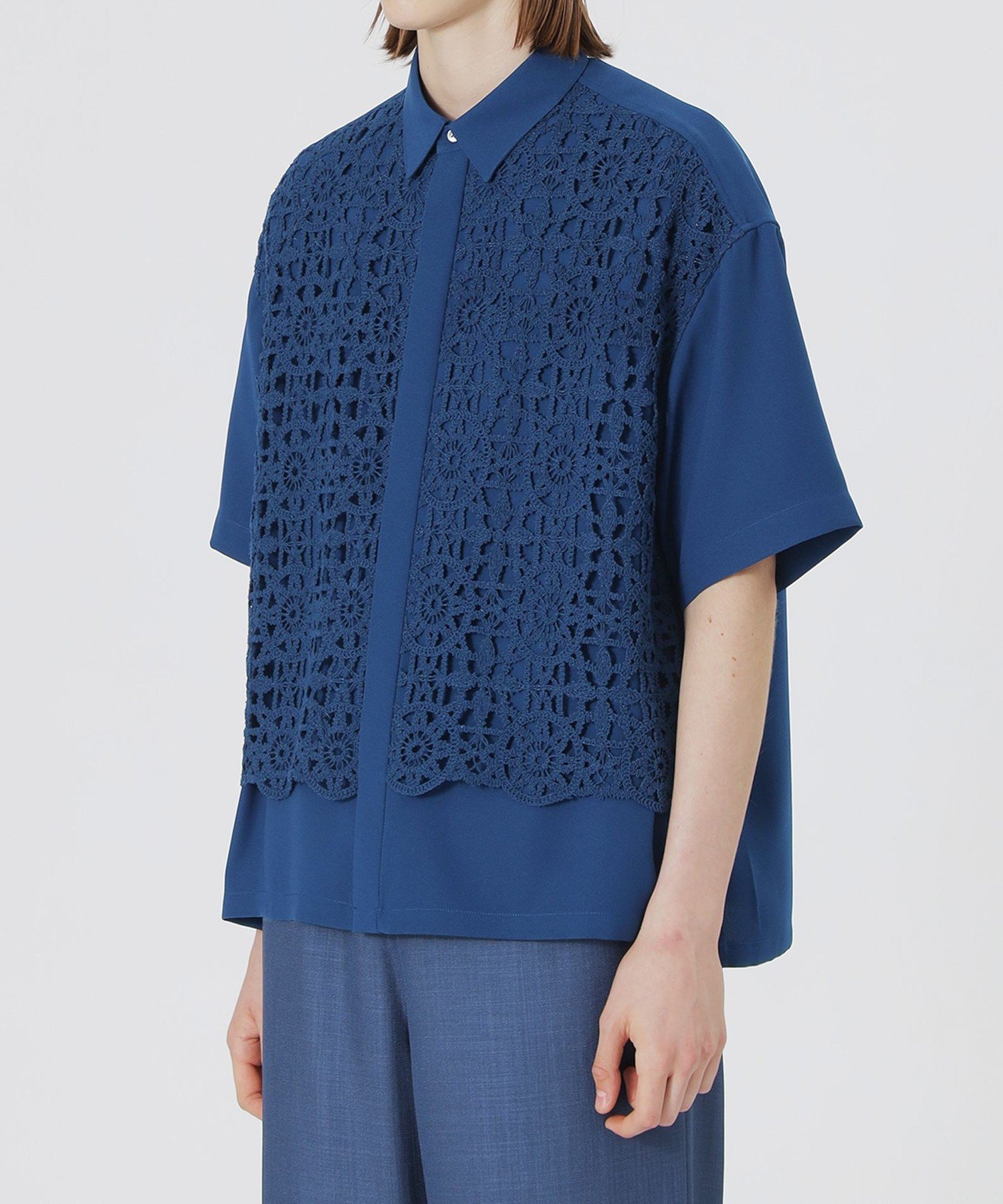 LOVELESS レースコンビショートスリーブシャツ ラブレス トップス シャツ・ブラウス ホワイト ブラック ブルー【送料無料】