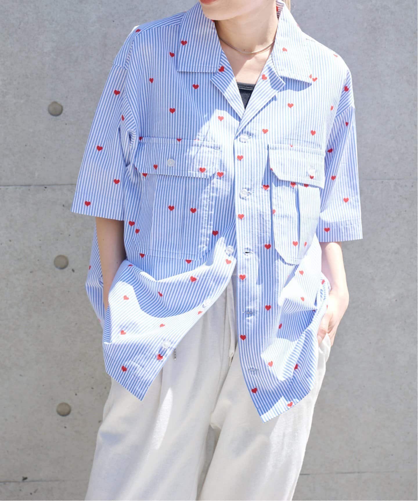 OUTDOOR PRODUCTS Usual Things ハートジャガード WORK SHIRT アウトドアプロダクツユージュアルシングス トップス シャツ・ブラウス ブルー【送料無料】
