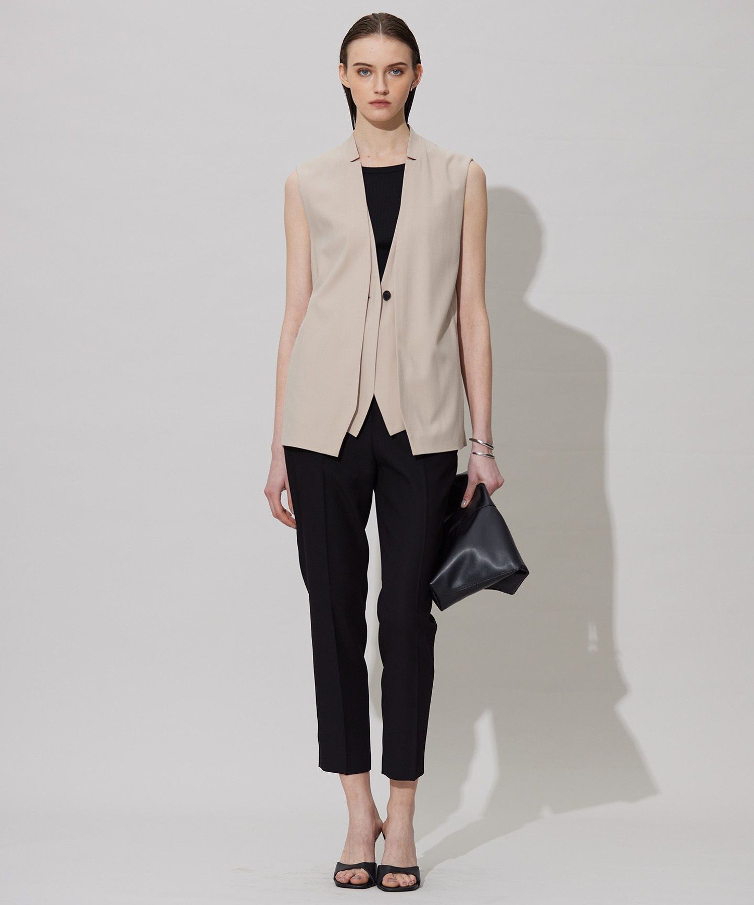 ICB 【接触冷感・UVカット・洗える】 T/Rドライリネン ジレ アイシービー トップス ベスト・ジレ ブラック ベージュ【送料無料】