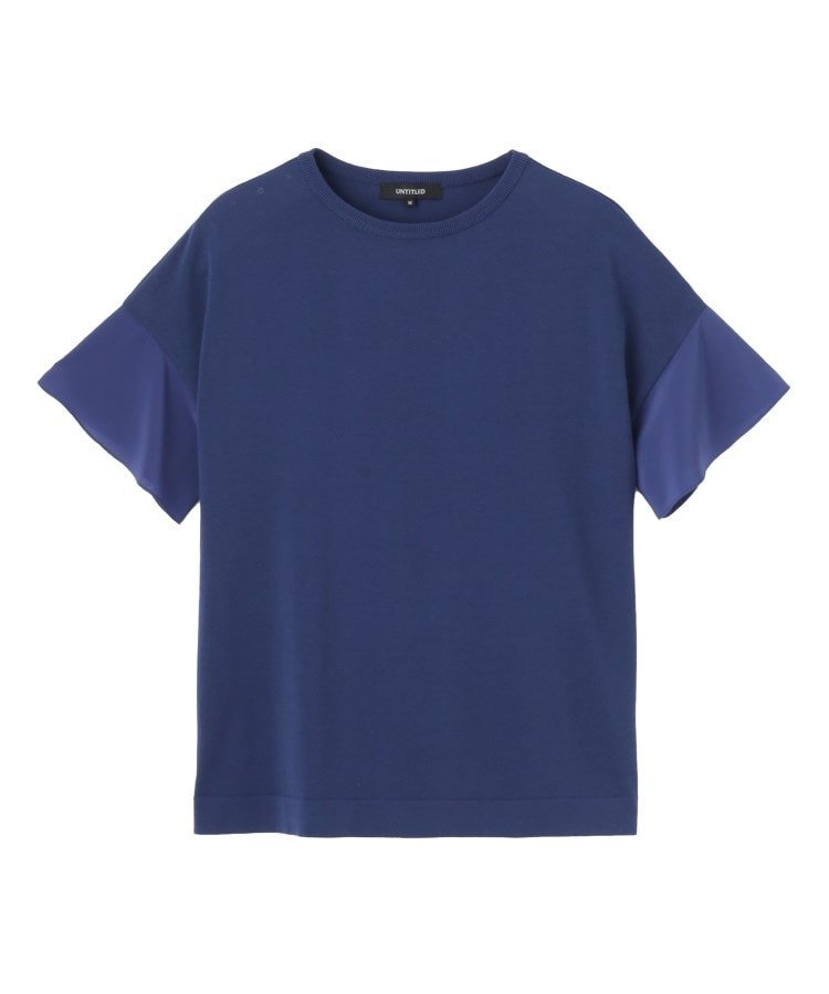 UNTITLED 【洗える/体型カバー】袖異素材プルオーバーニット アンタイトル トップス ニット ブルー ブラック ホワイト【送料無料】