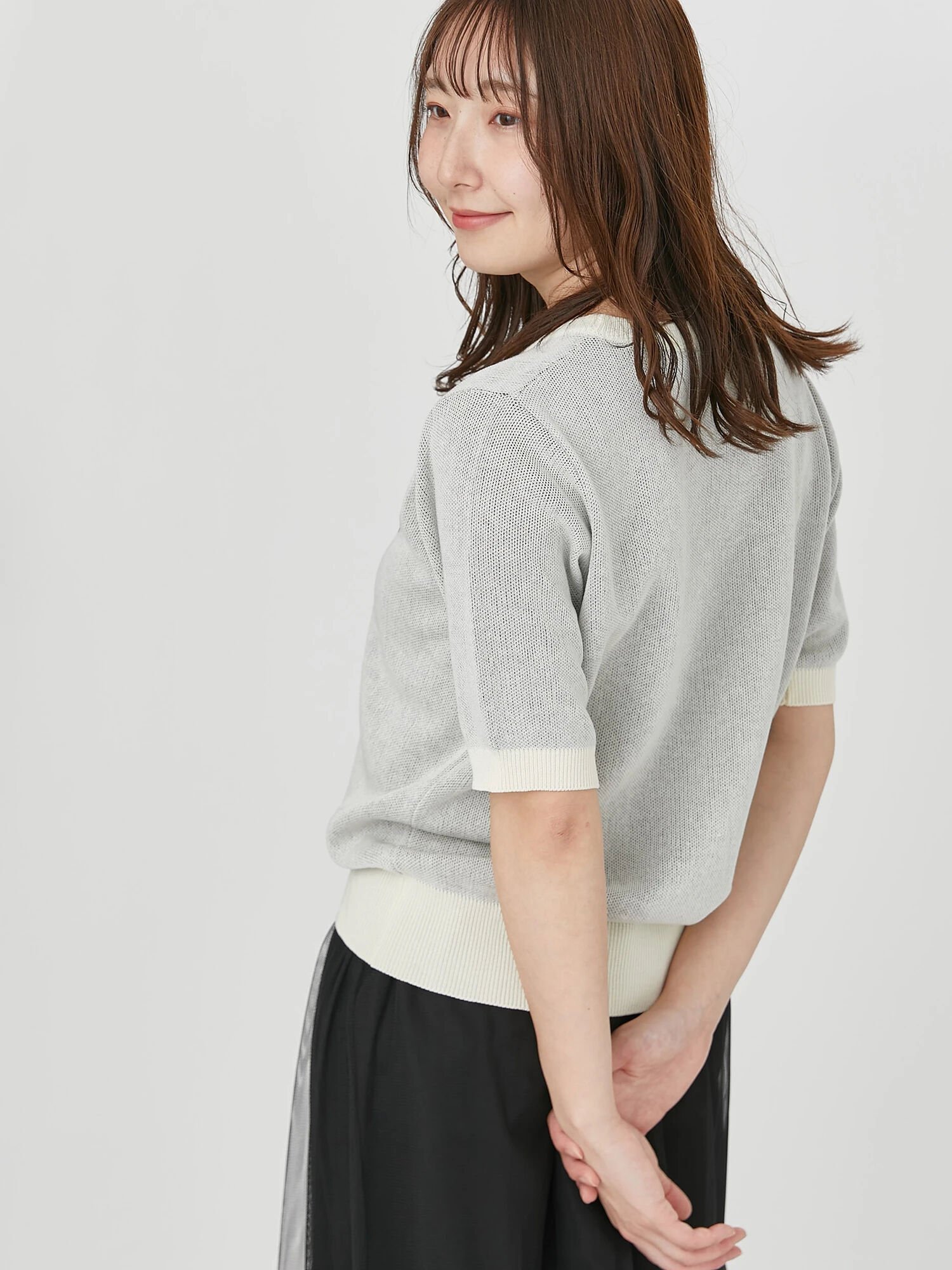 Te chichi TERRASSE 【OSAMU GOODS*Te chichi TERRASSE】柄アソート半袖ジャカードニット テチチ トップス ニット ネイビー グレー ホワイト【送料無料】