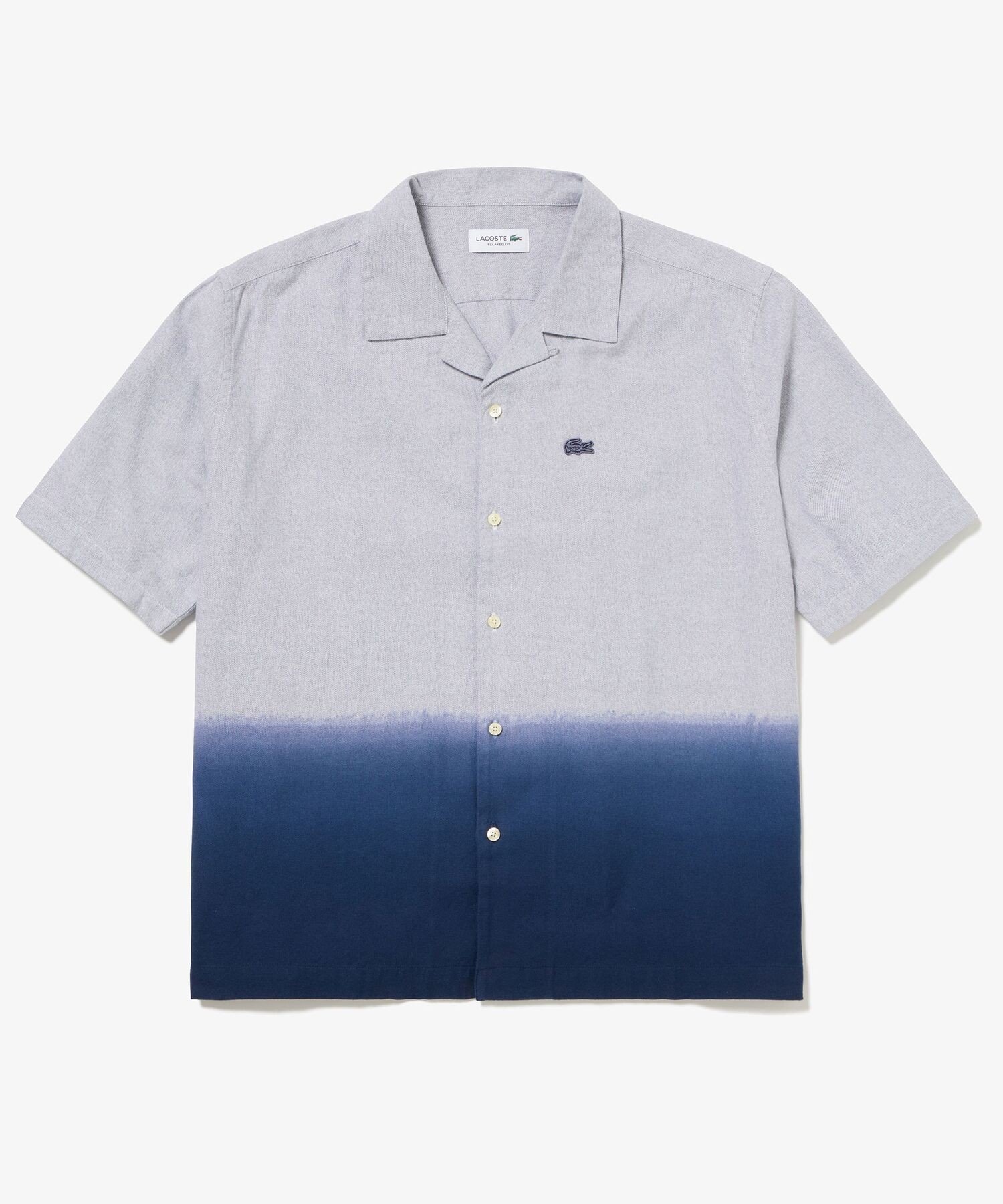 LACOSTE グラデーション コットンオックスフォード オープンカラーシャツ ラコステ トップス シャツ・ブラウス ブルー ネイビー ブラウン【送料無料】