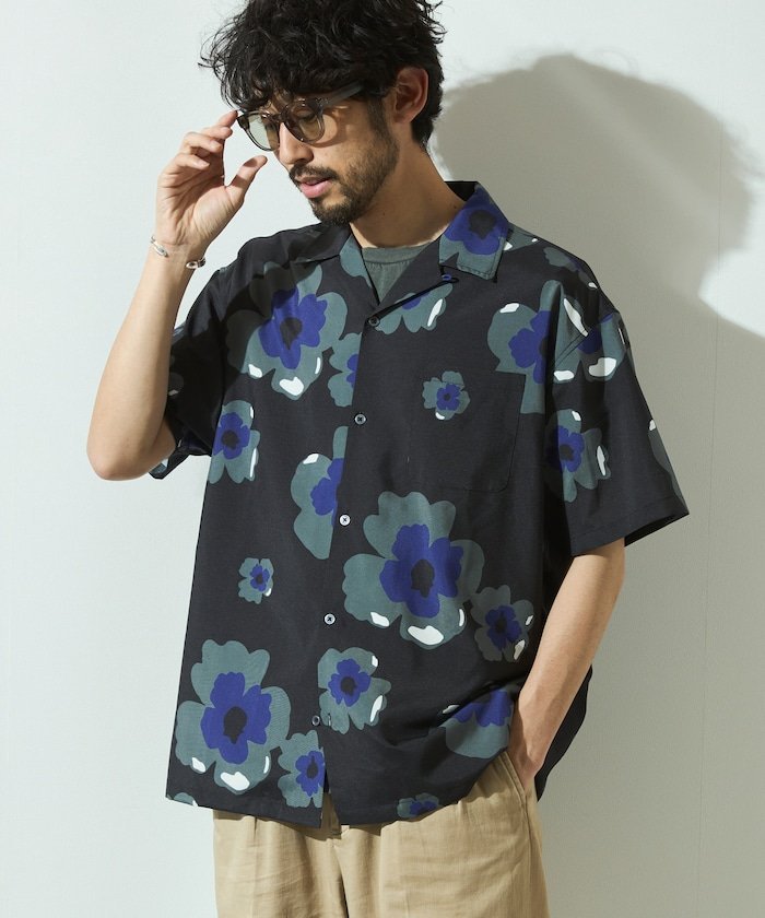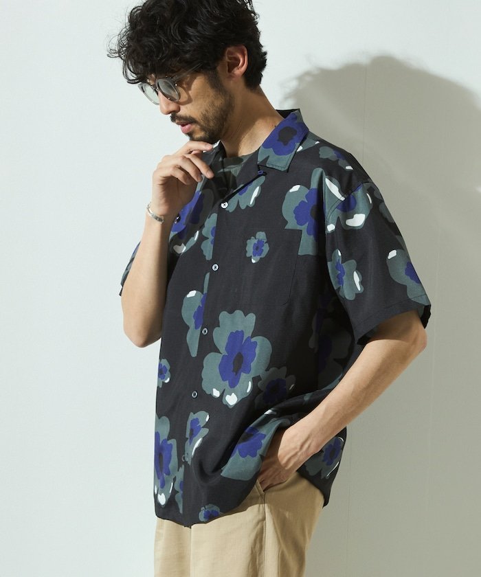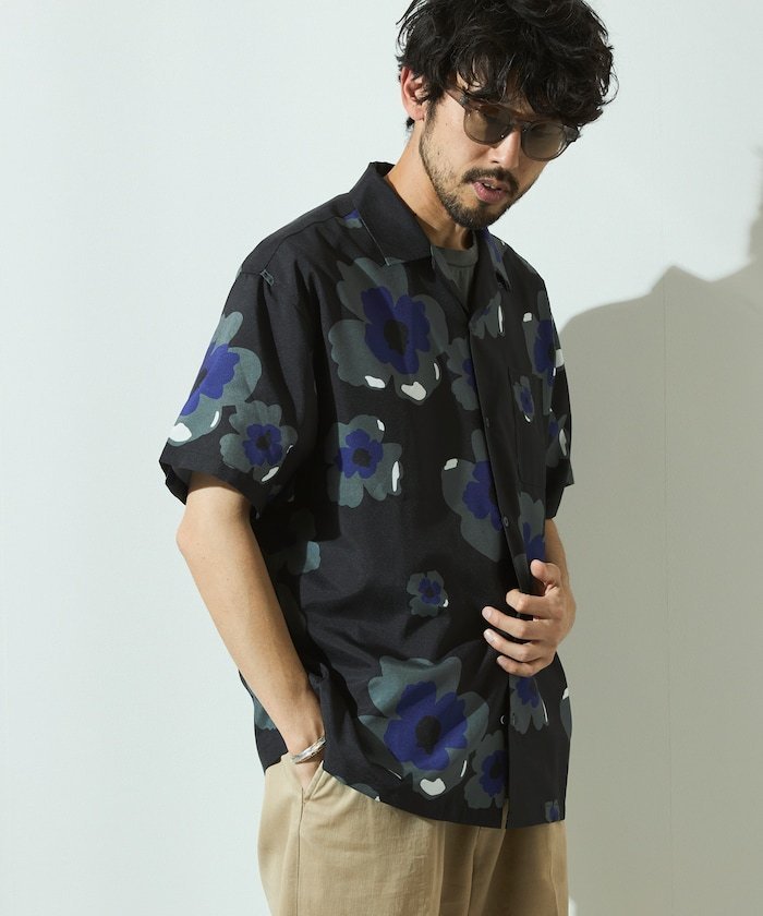 【SALE/10%OFF】Firsthand パターン オープンカラーショートスリーブシャツ / 総柄デザイン開襟シャツ / リラックスシルエット 25SS フリークスストア トップス シャツ・ブラウス ホワイト ブラック ベージュ【送料無料】