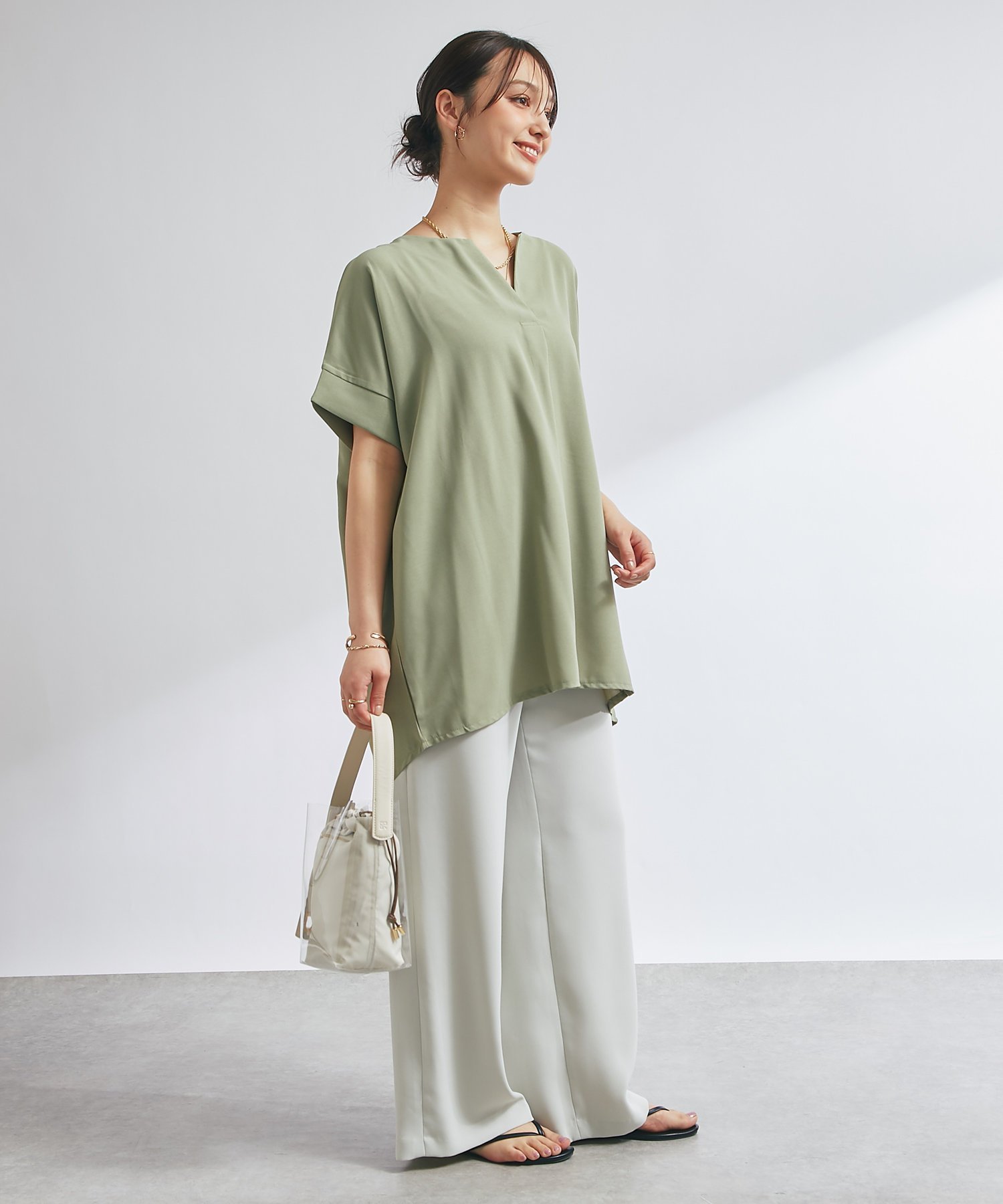 un dix cors Vネックライトジョーゼット半袖T アンディコール トップス その他のトップス ホワイト カーキグリーン ブラック【送料無料】