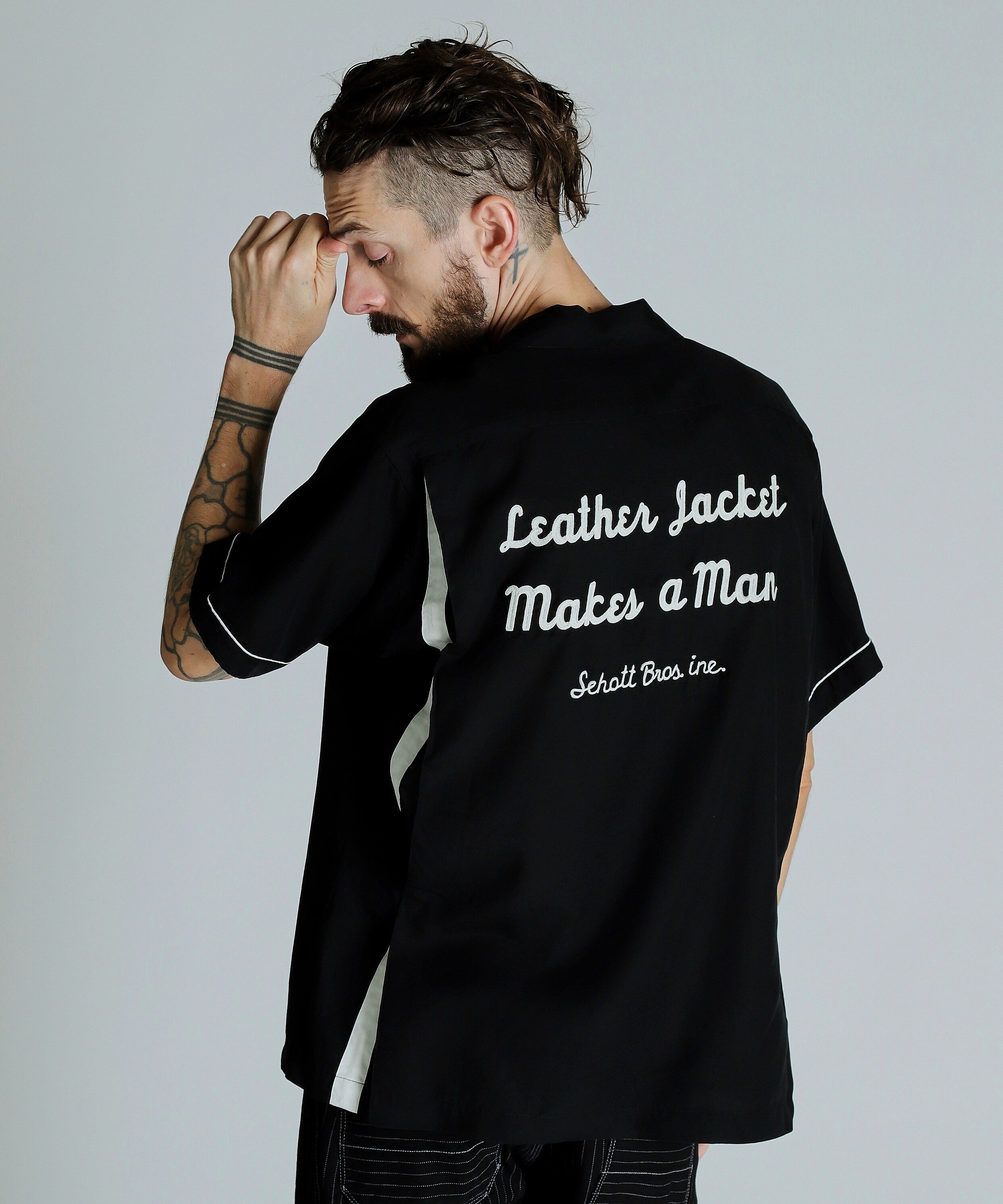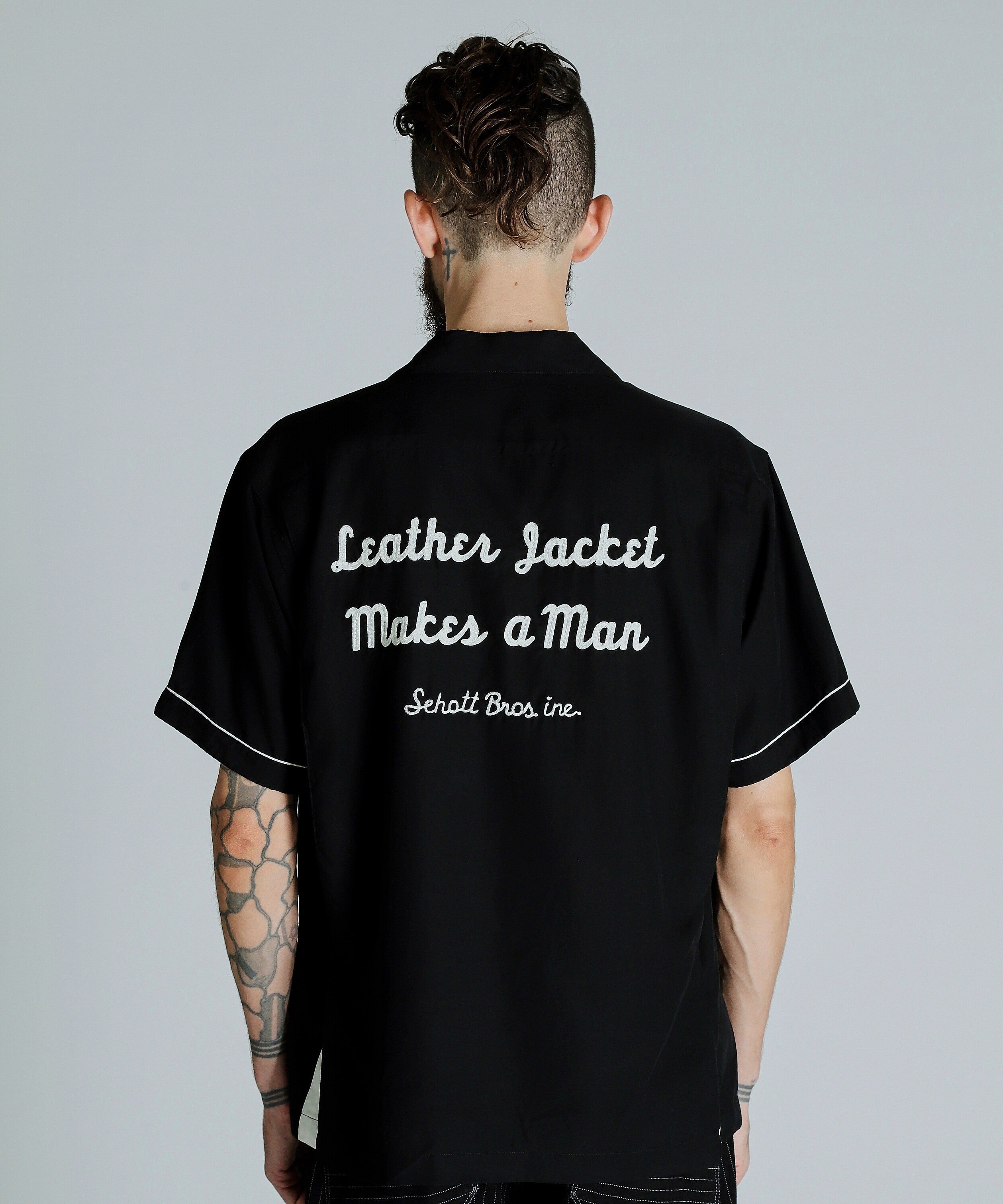 Schott BOWLING SS SHIRT'LEATHER JACKET MAKES A MAN/ボーリングSSシャツ ショット トップス シャツ・ブラウス ブラック ネイビー【送料無料】