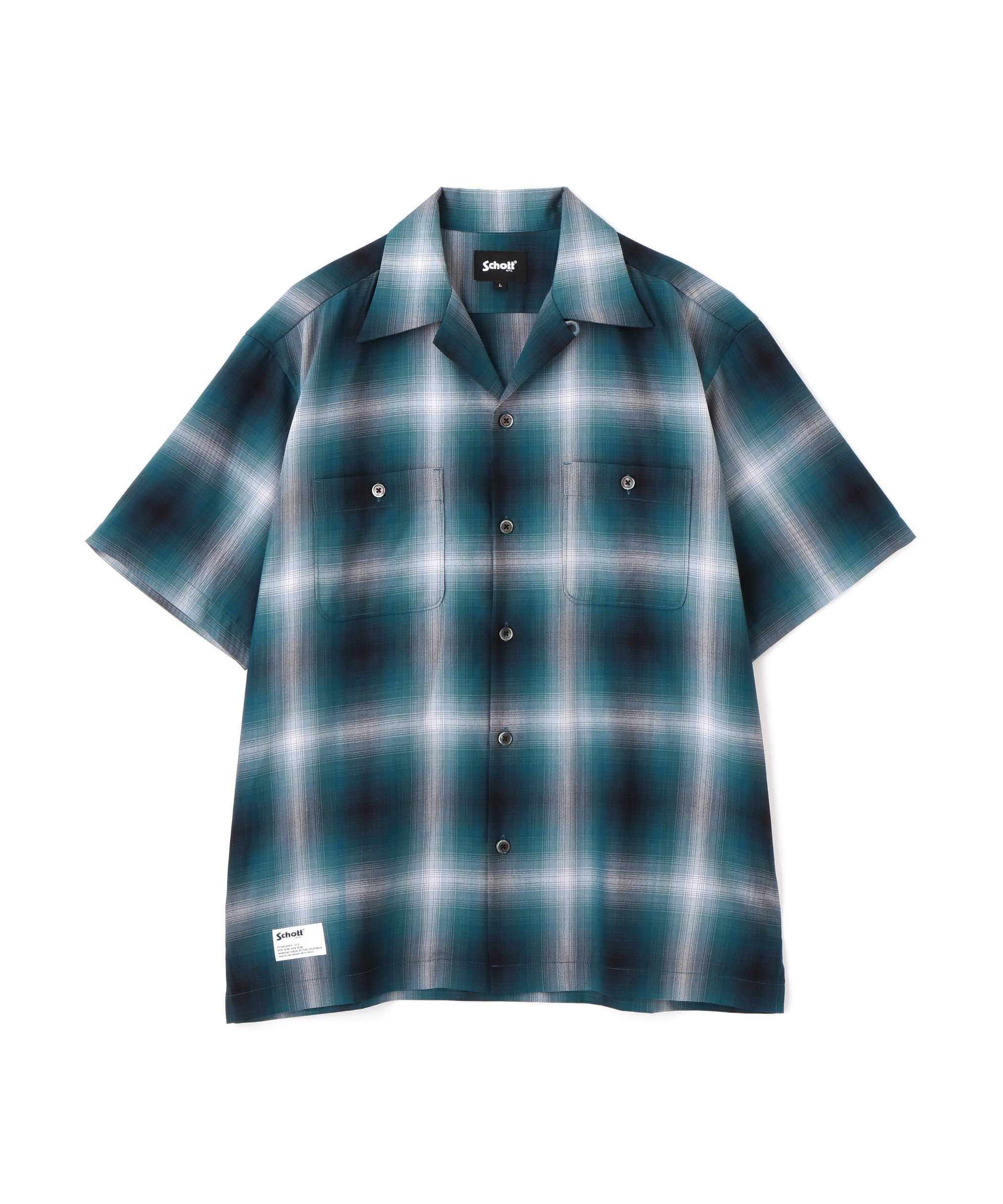 Schott OMBRE SS SHIRT/オンブレ SSシャツ ショット トップス シャツ・ブラウス ブラック グリーン【送料無料】