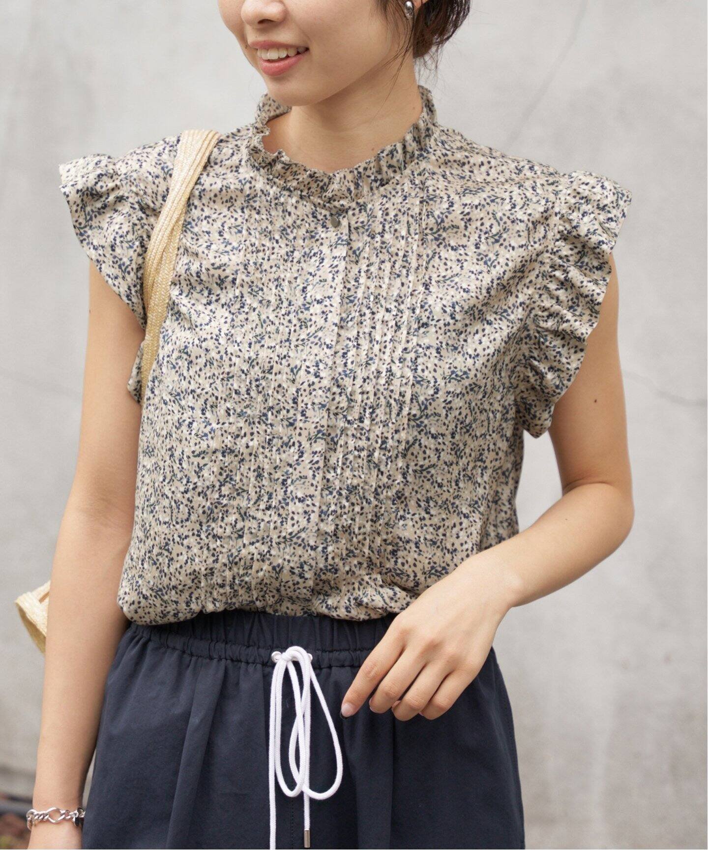 IENA 《WEB限定/追加予約》ミュゲットパターンピンタックフリルノースリーブ イエナ トップス シャツ・ブラウス ベージュ【送料無料】